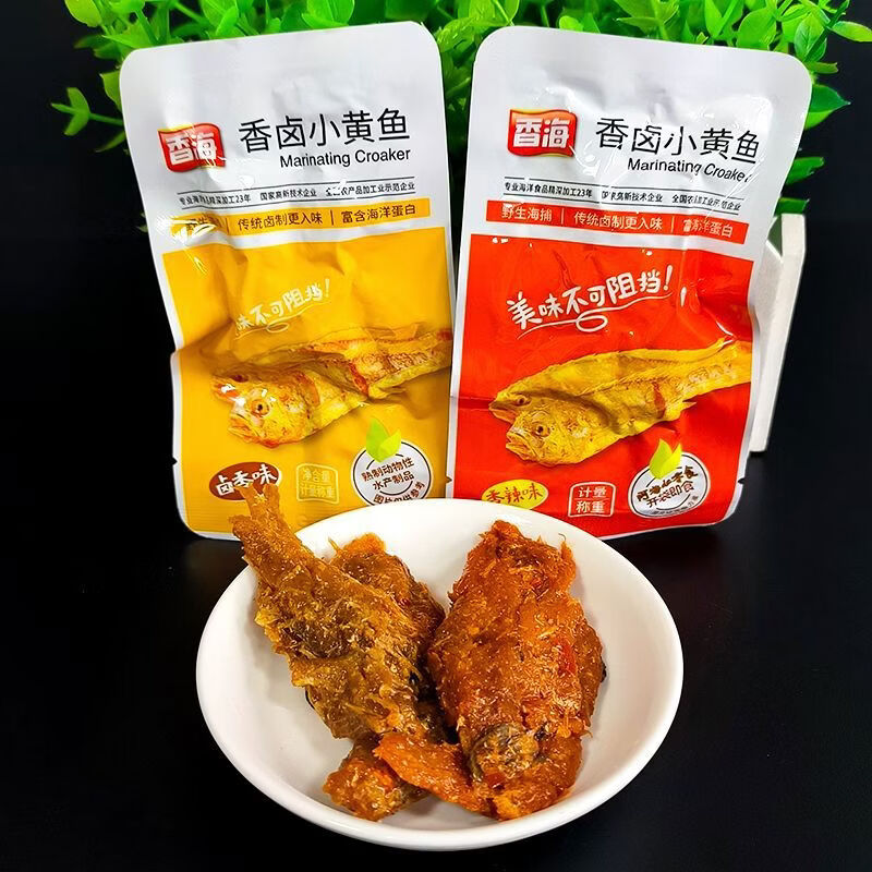 香海新品香卤小黄鱼卤香味香辣味小鱼干办公室零食即食小吃 香海香卤小黄鱼2种混合250g