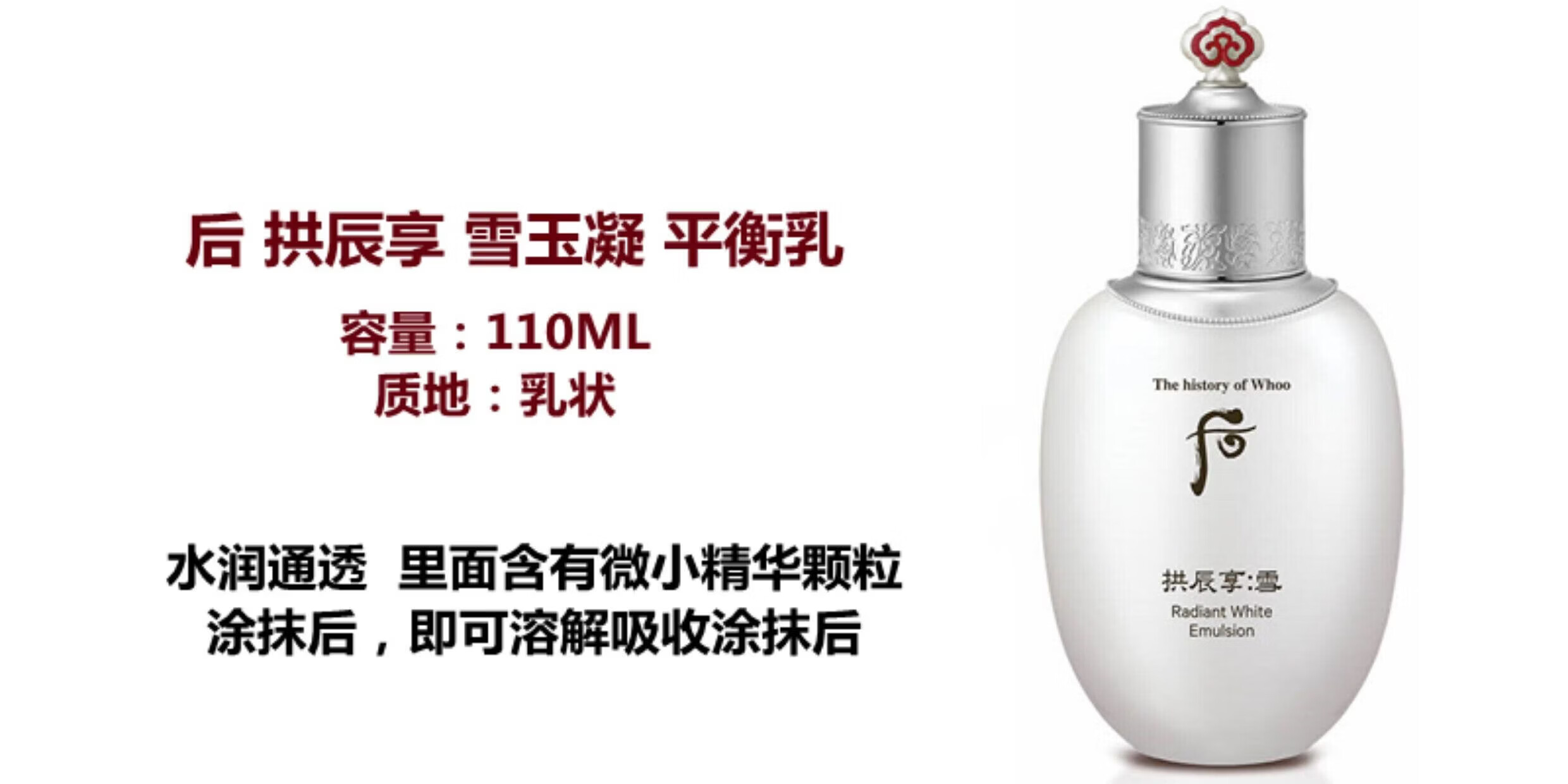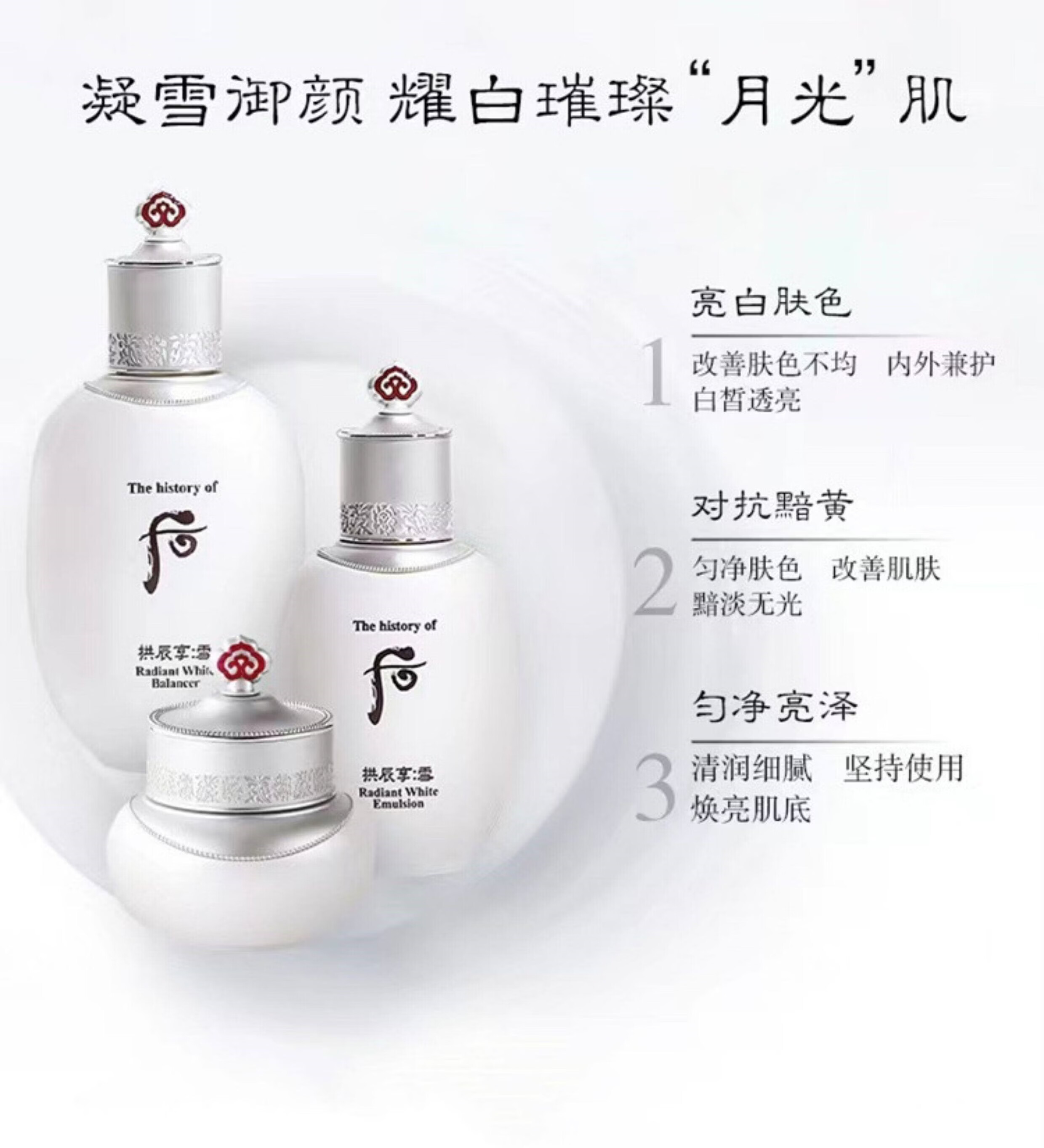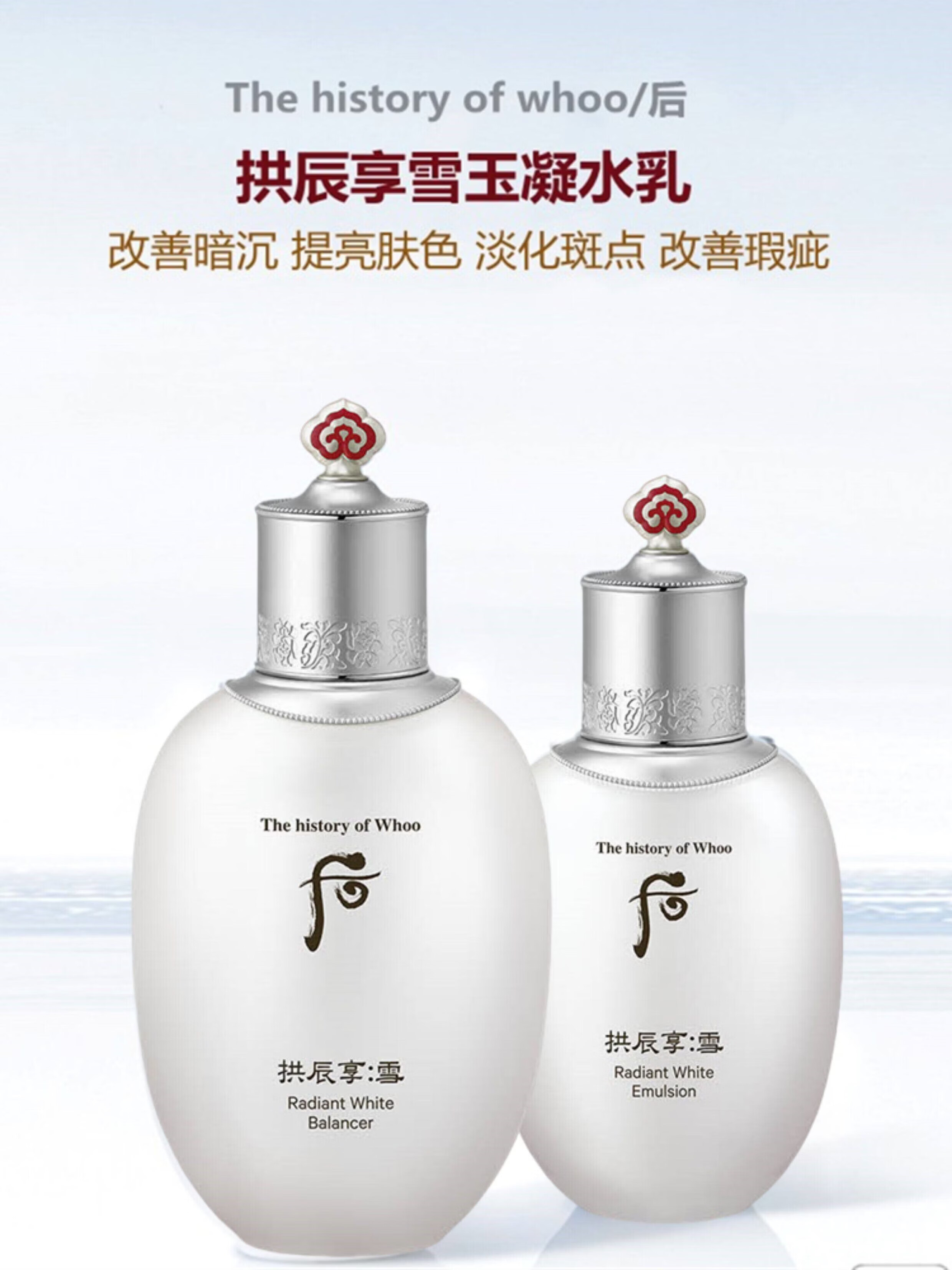 后(The history of Whoo)韩国後雪玉凝水乳面霜套盒改善斑点暗沉痘印收缩毛孔情人节礼物 水150ML乳110ML有包装盒