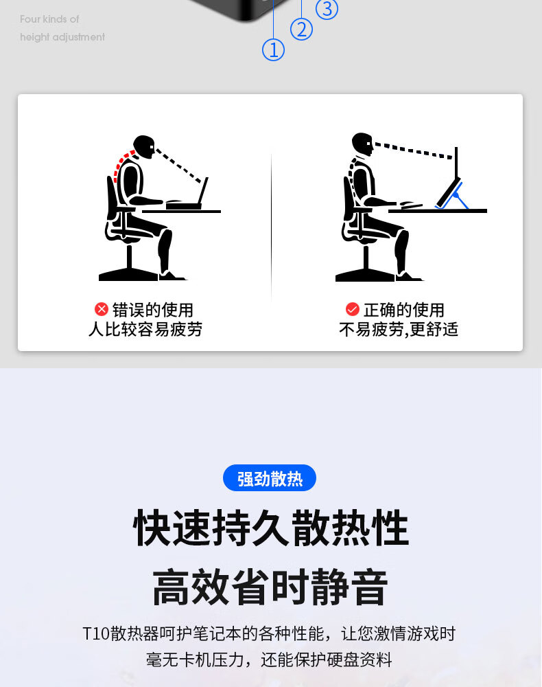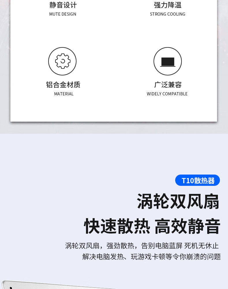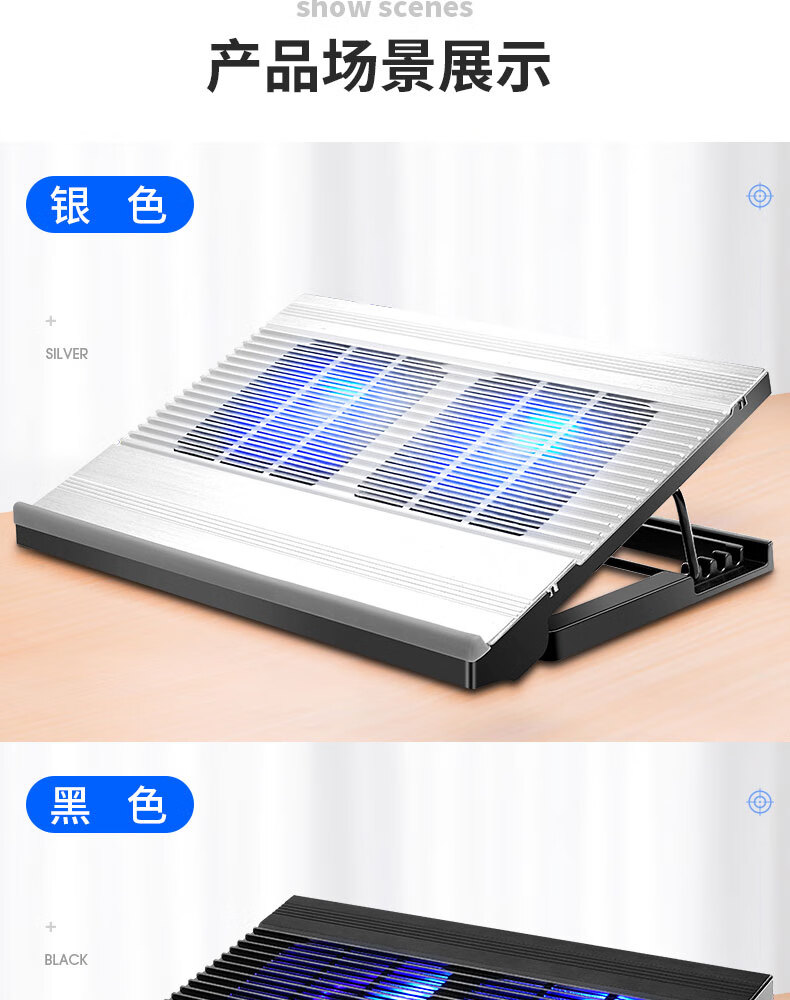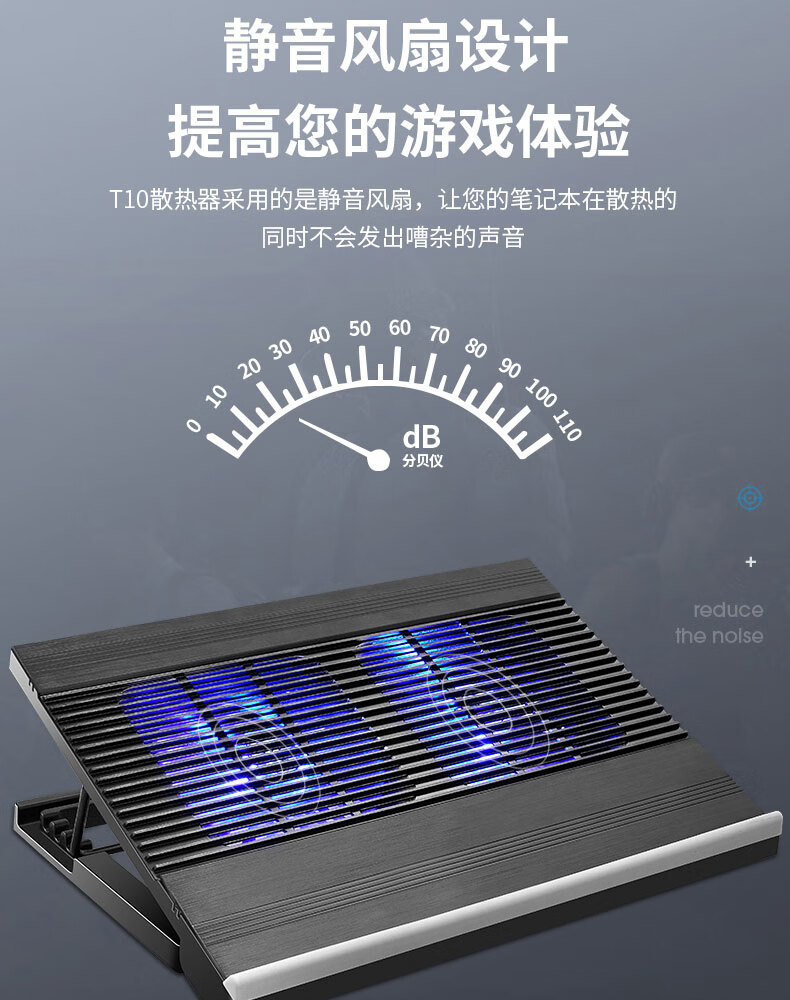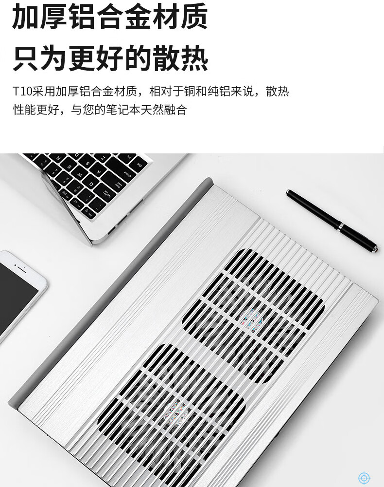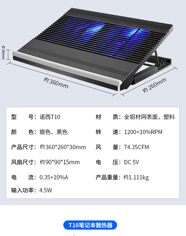 诺西 诺西铝合金笔记本散热器风扇电脑支架底座游戏本14寸静音15.6通用 T10黑色高配 T10