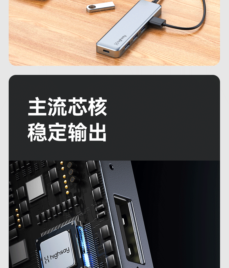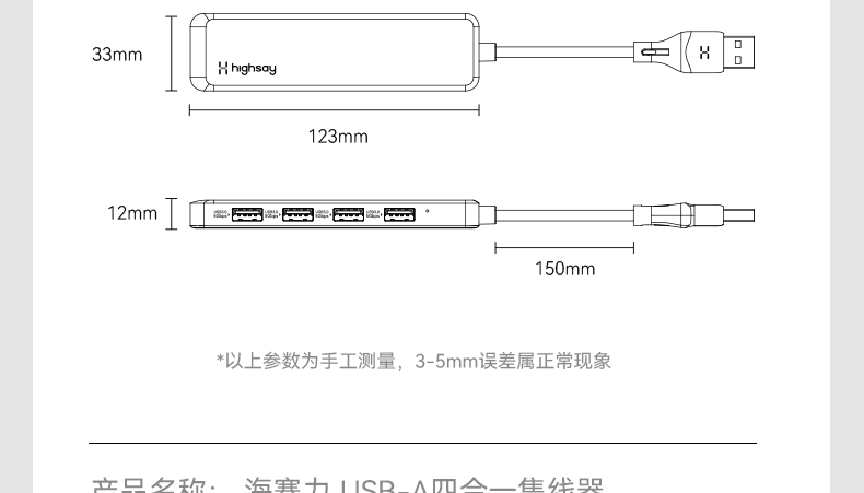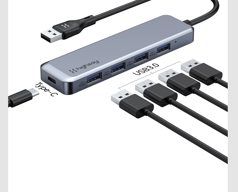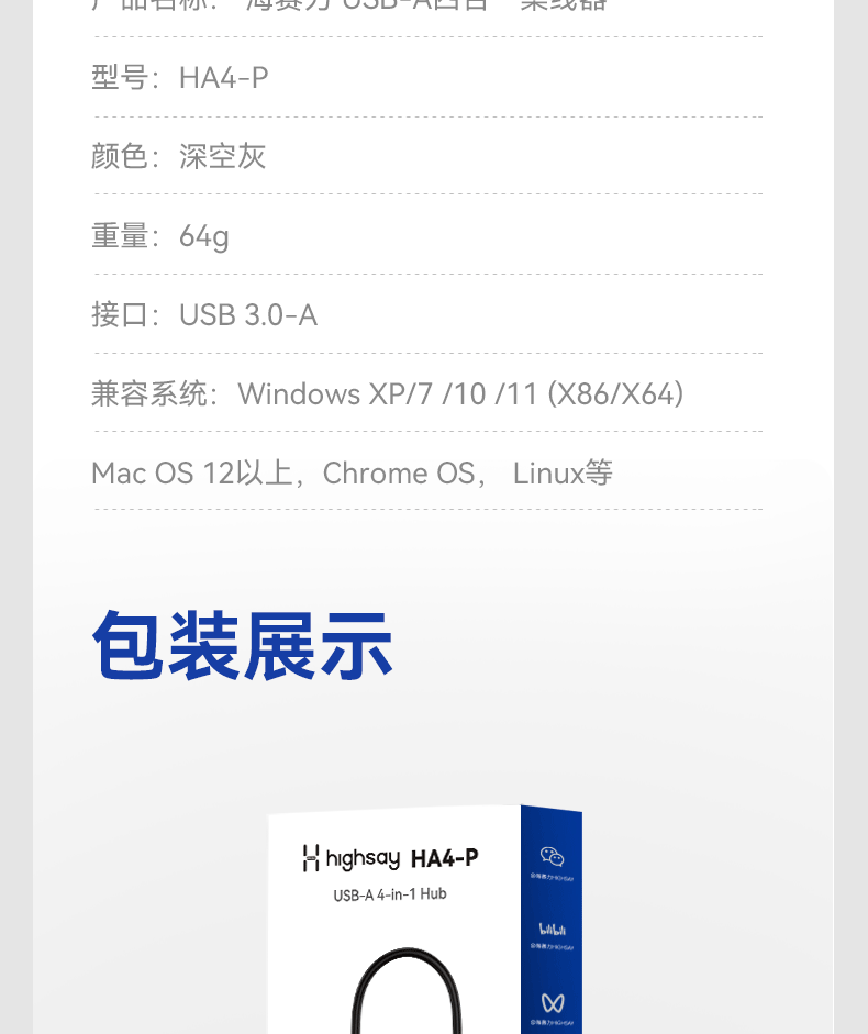 海赛力(Highsay)HA4拓展坞usb多接口扩展器hub笔记本电脑集线器u盘转换器鼠标键盘分线器 四口合一HA4-P