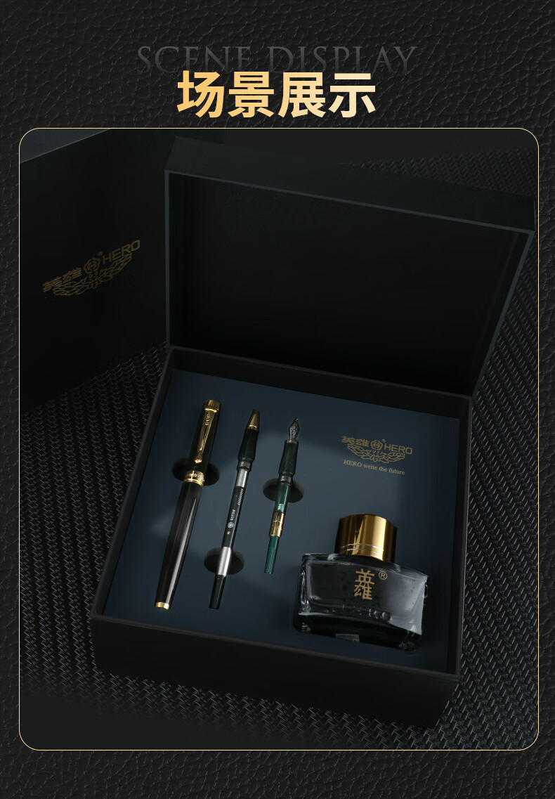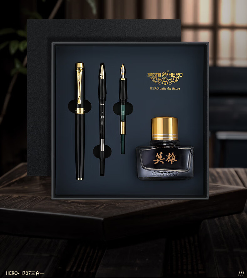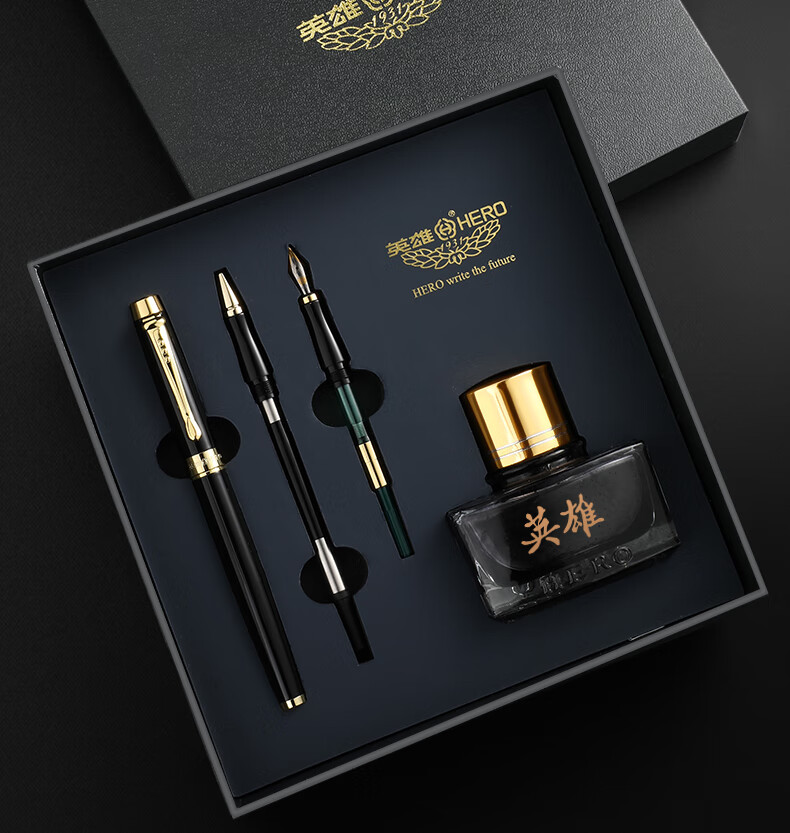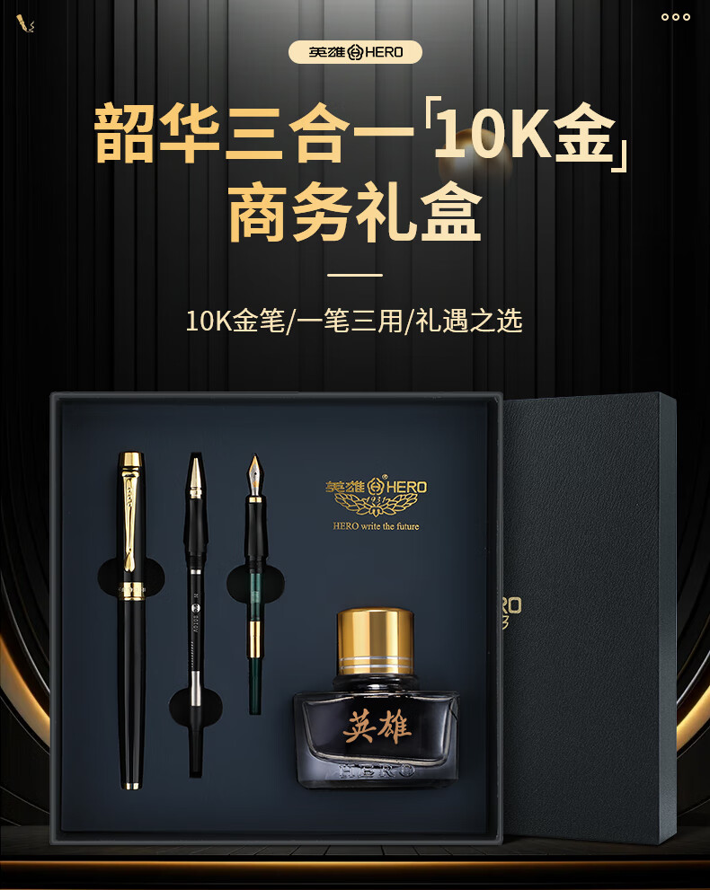 英雄(HERO)钢笔礼盒【韶华系列】商务办公节日礼品10K金笔尖商务高端男士女生日礼物墨水套装 白色 三合一【金笔+宝珠+美工+墨水】