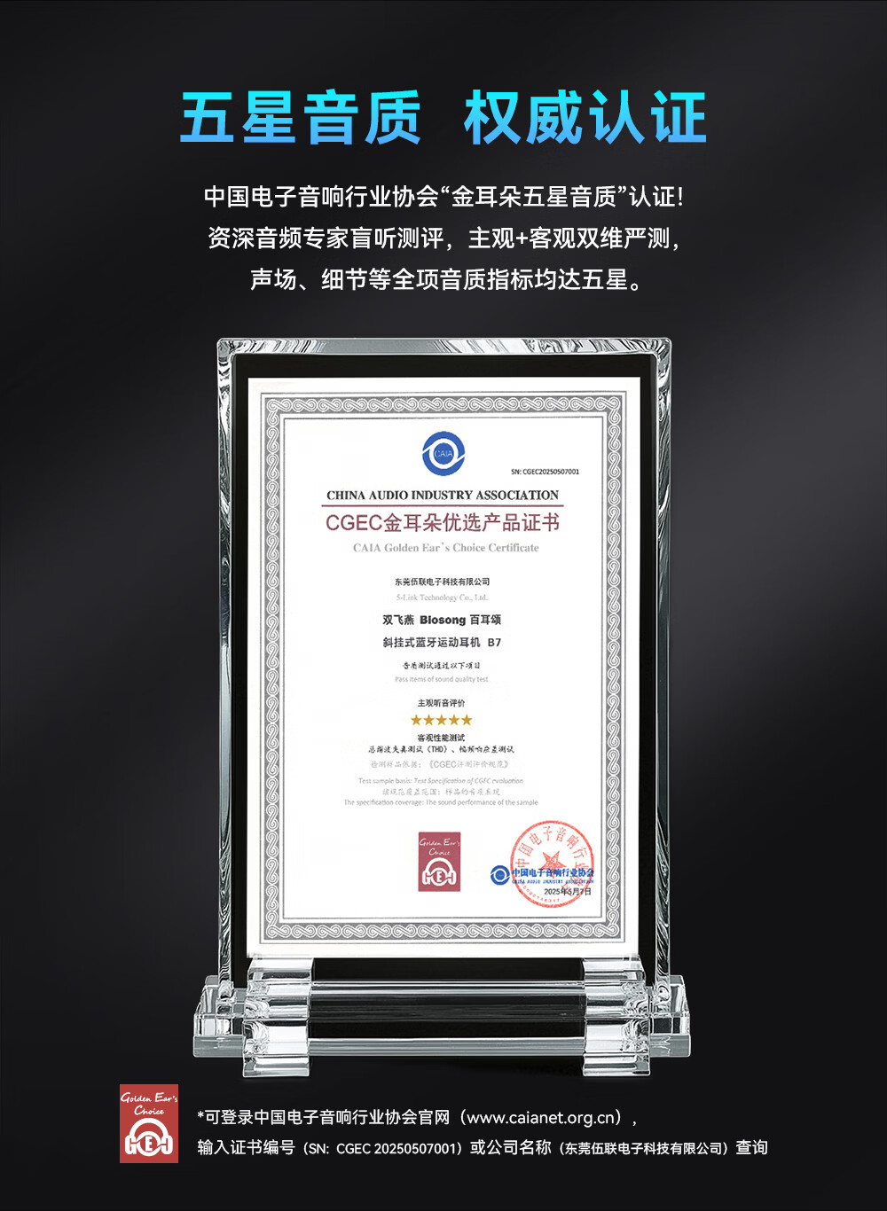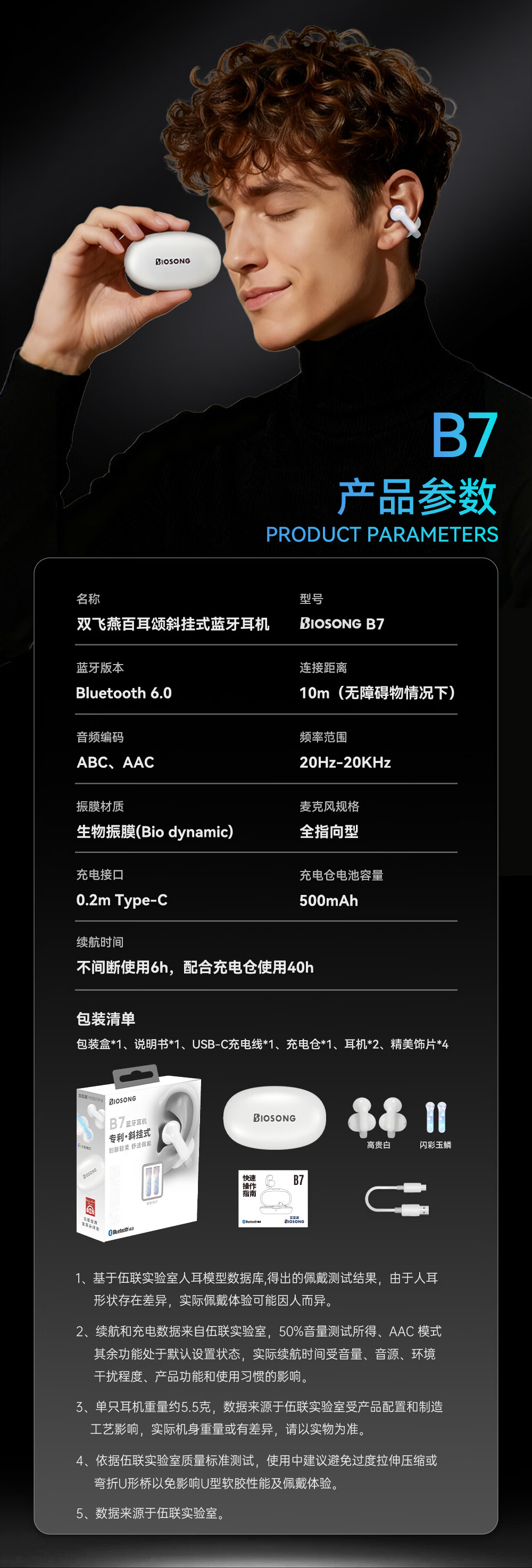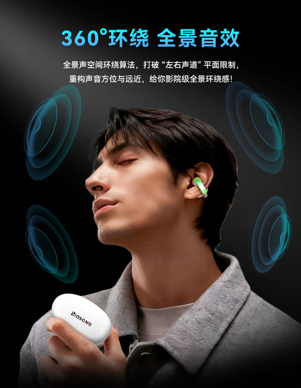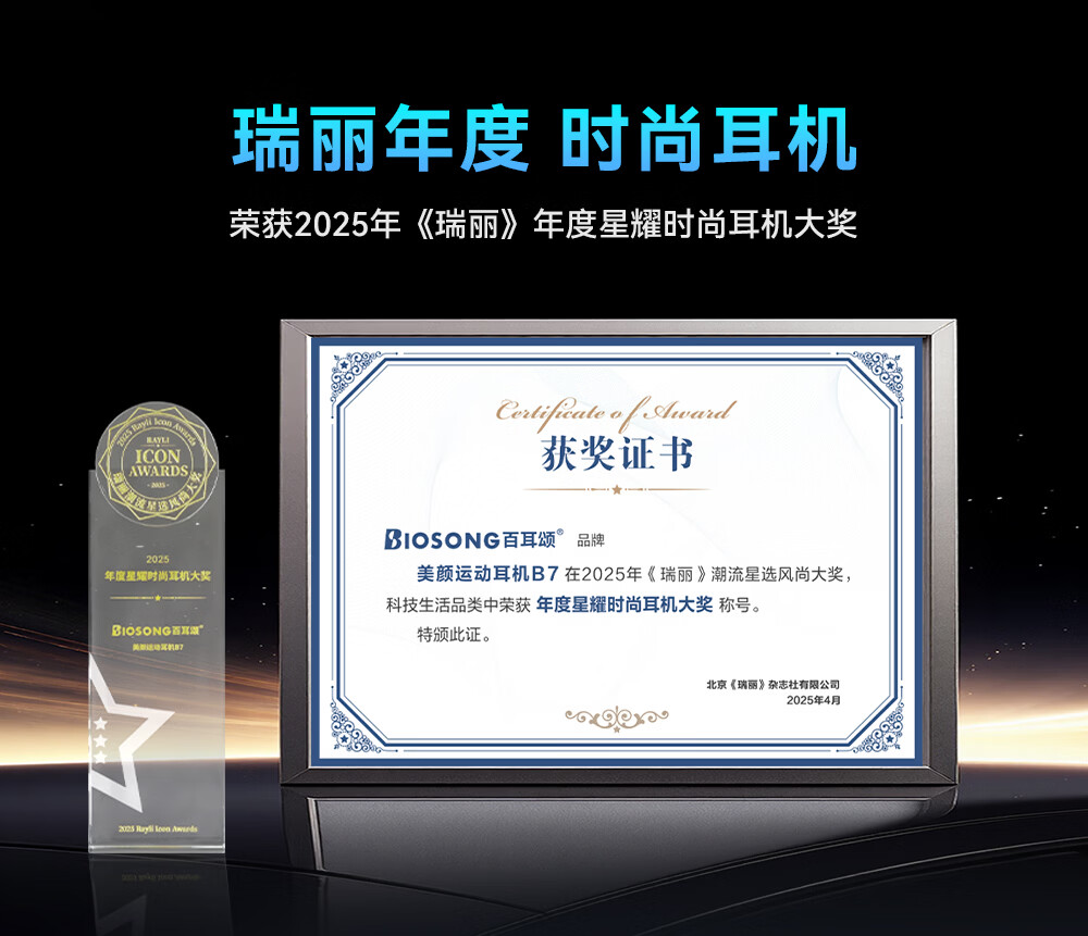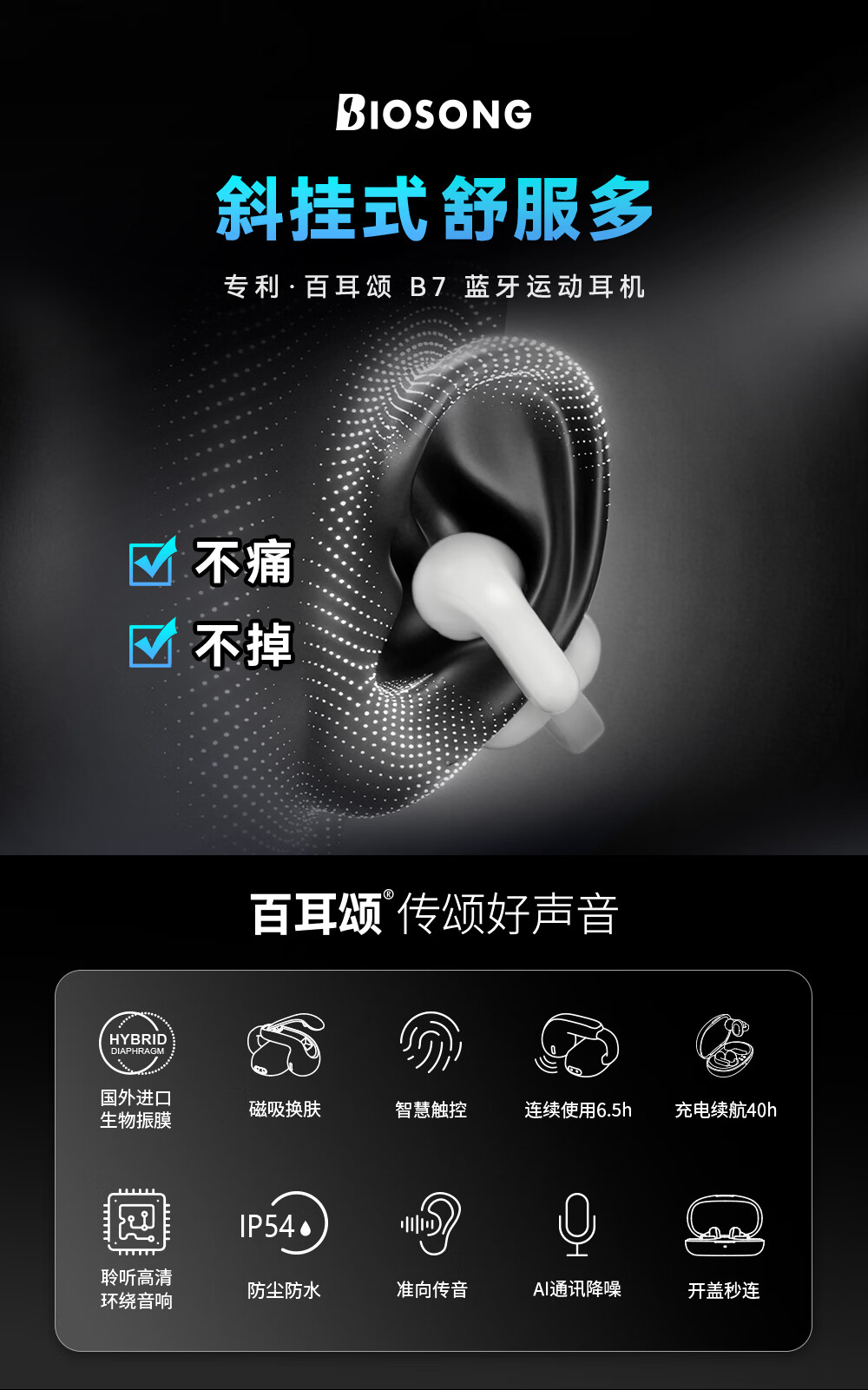 双飞燕Biosong 百耳颂B7开放专利斜挂式运动无线蓝牙耳机金耳朵五星听音评价适用于苹果华为小米荣耀OPPO B7-尊享版