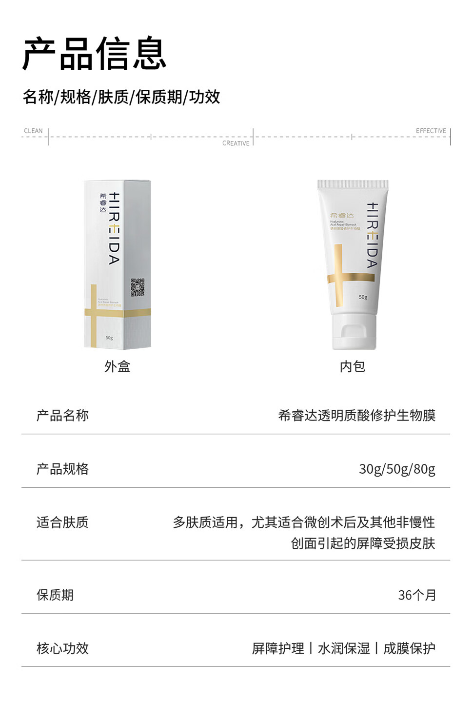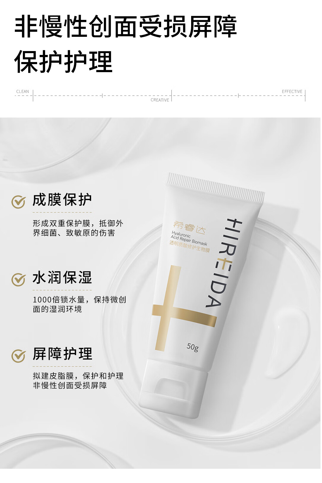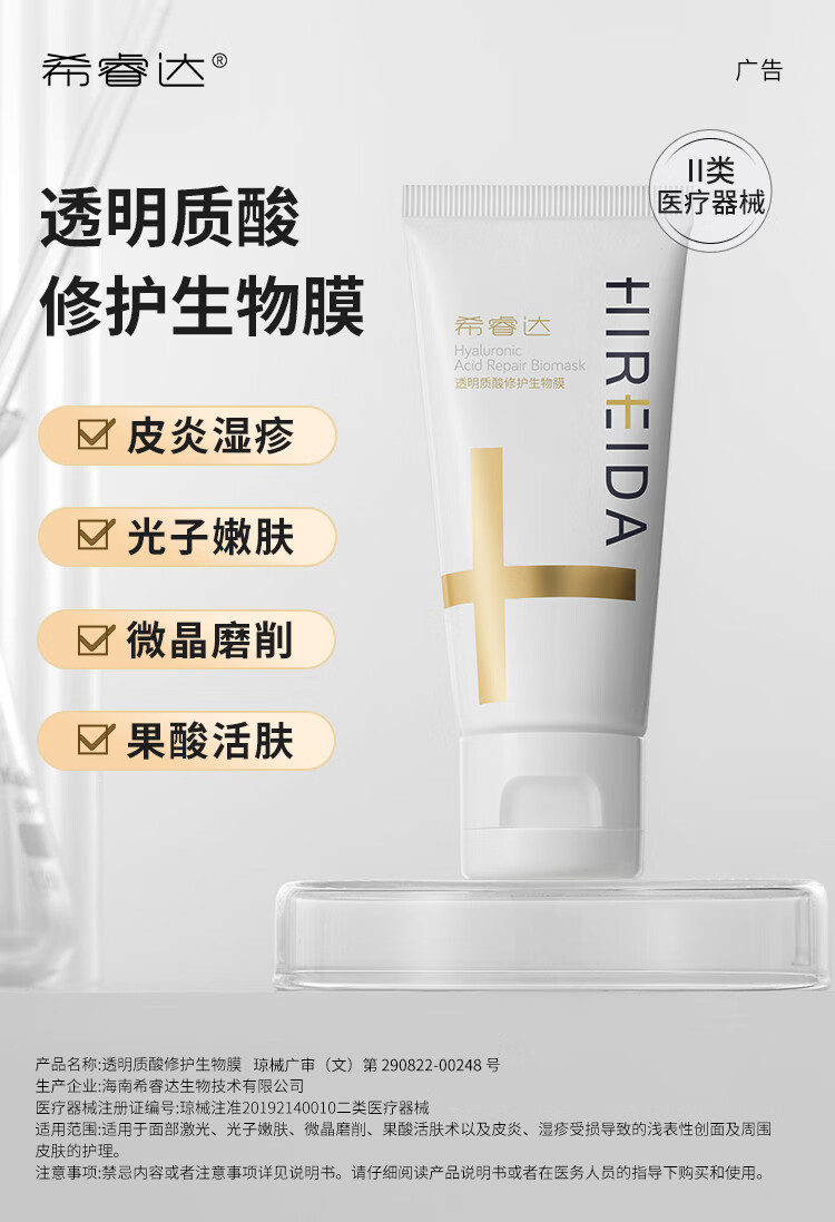 希睿达医用面霜乳膏械字号敷料透明质酸修护生物膜皮炎湿疹屏障修护保湿 生物膜30g+同款10g