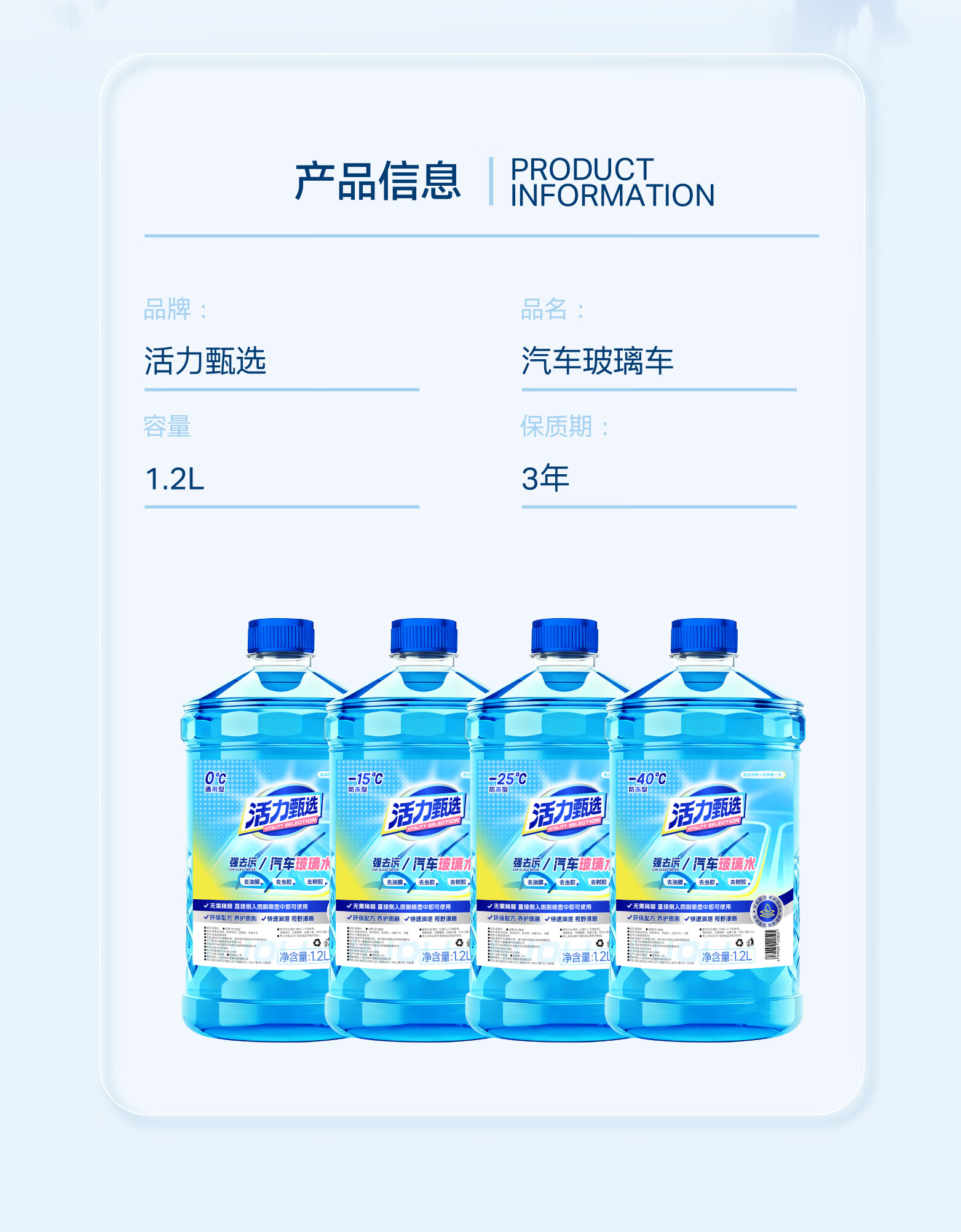 活力甄选 VITALITY SELECTION汽车玻璃水雨刮水去污去油膜-40°防冻挡风玻璃清洗剂四季通用28 0℃1.2L4大瓶 强力去污型