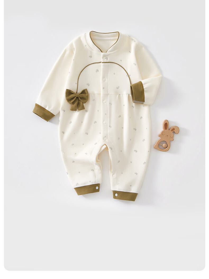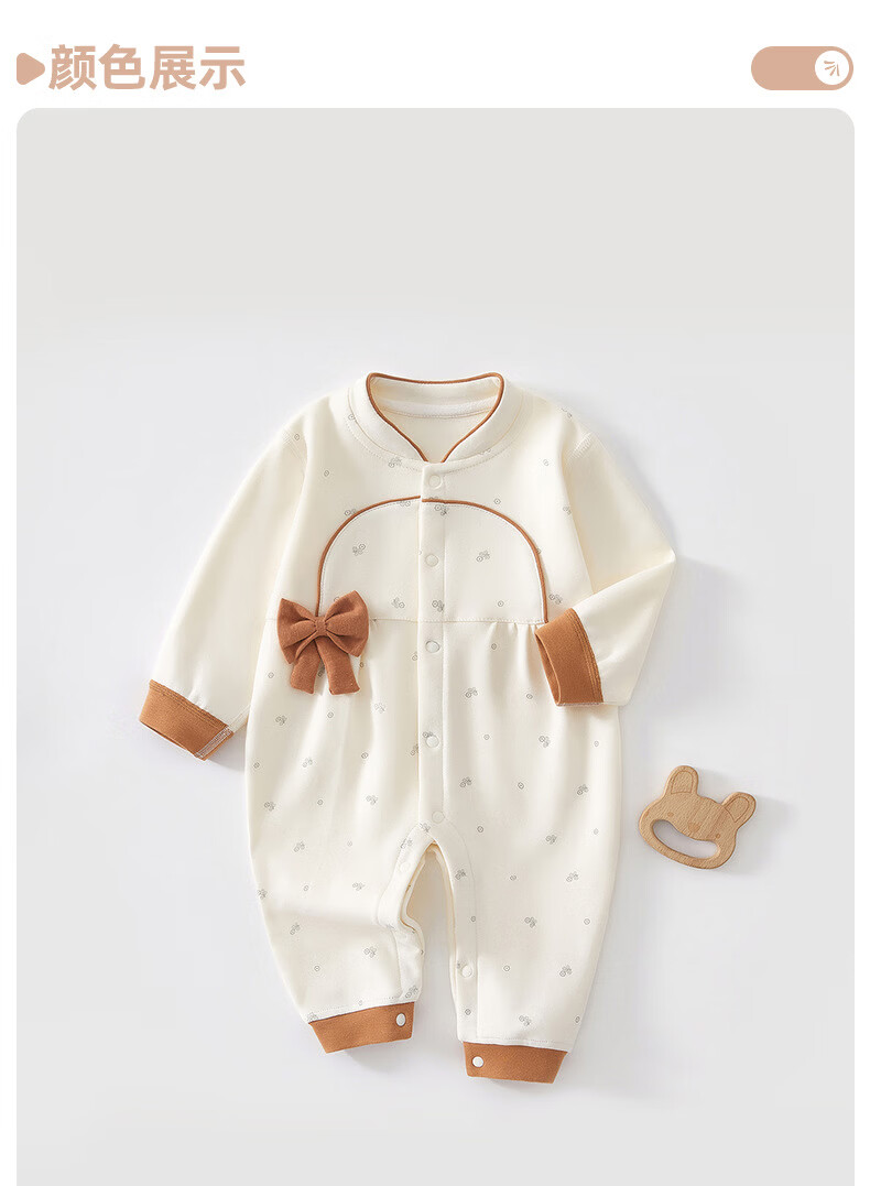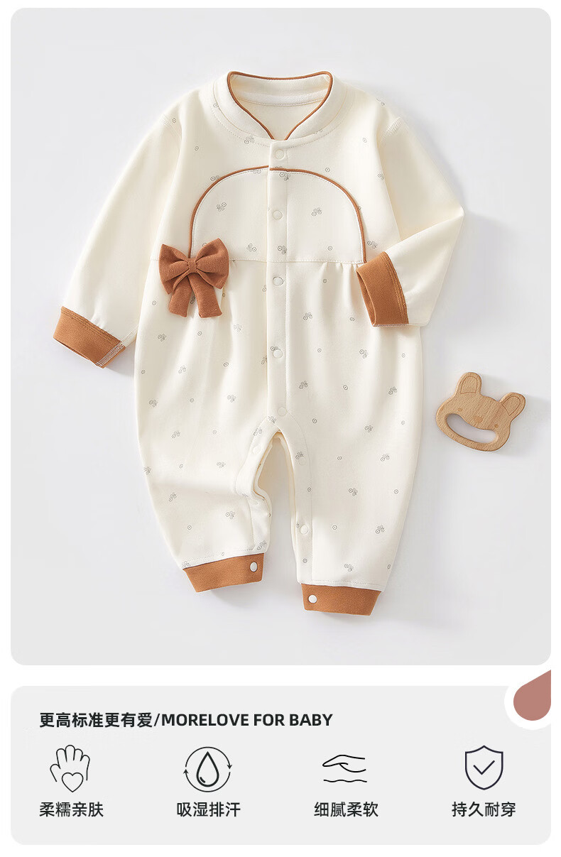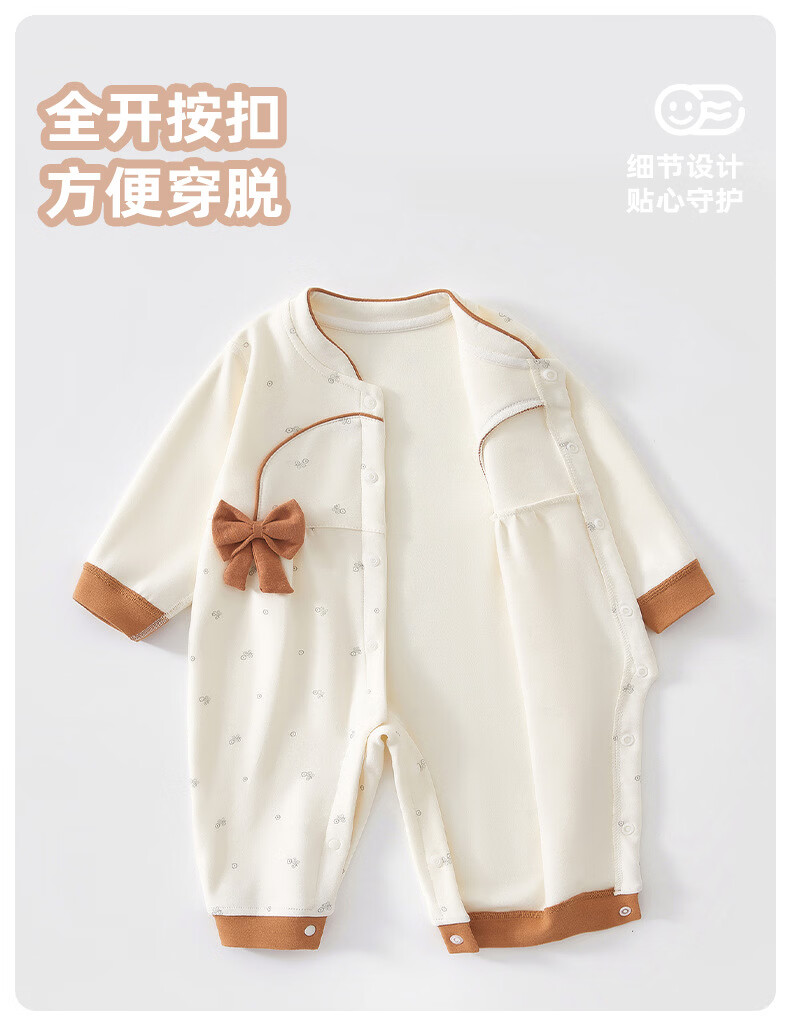 藤之木工房婴儿衣服女宝秋装立领超洋气婴幼儿连体衣满月百天小公主外出哈衣 蝴蝶结桔色 66cm