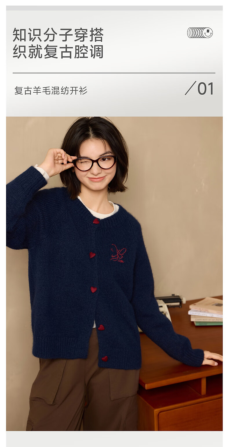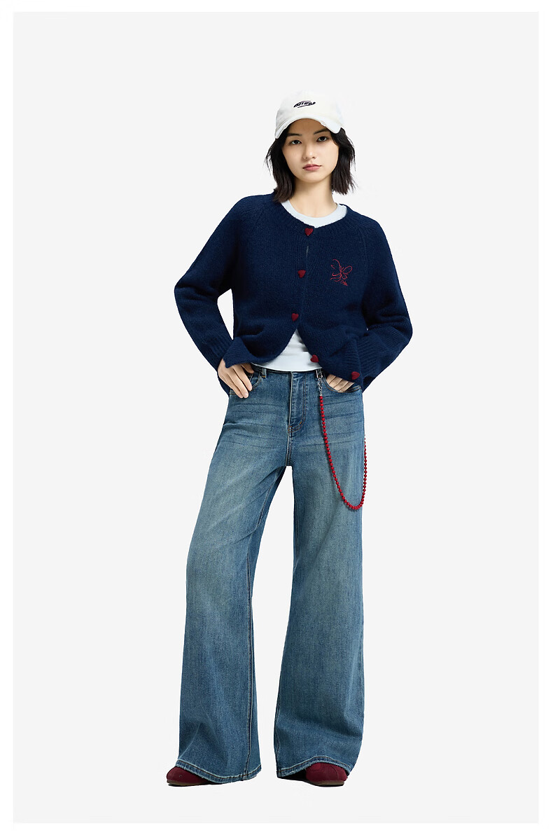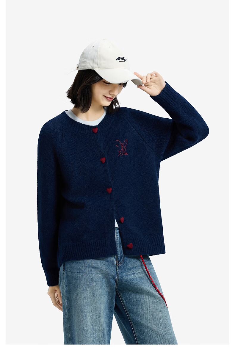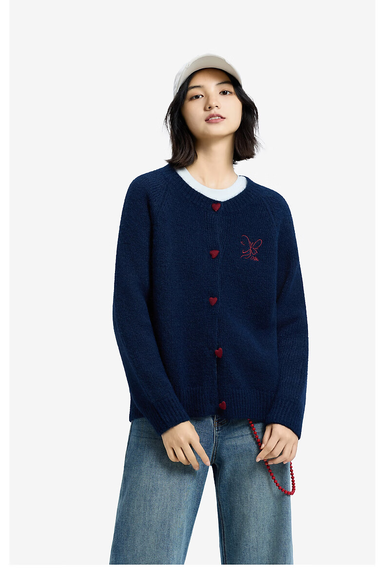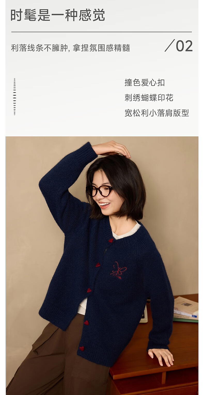 美特斯邦威毛衣女2025冬新款休闲针织毛开衫外套韩系加厚保暖上衣 藏青色 M 160/84A