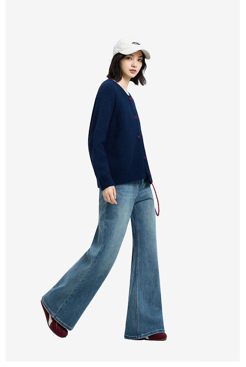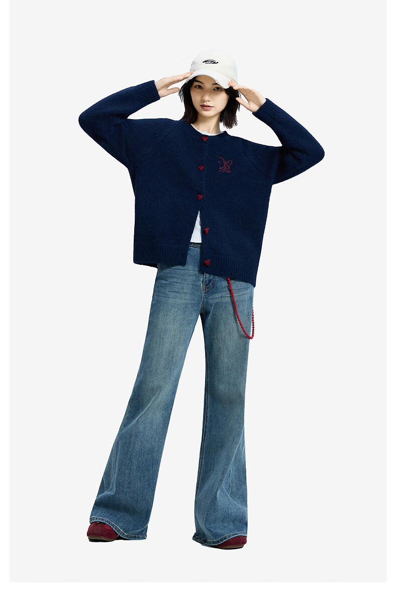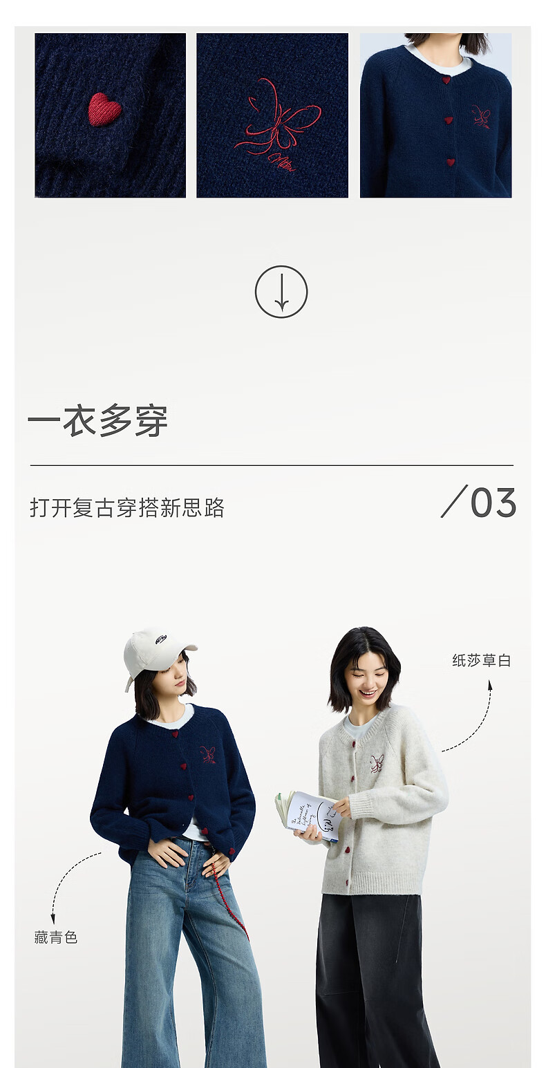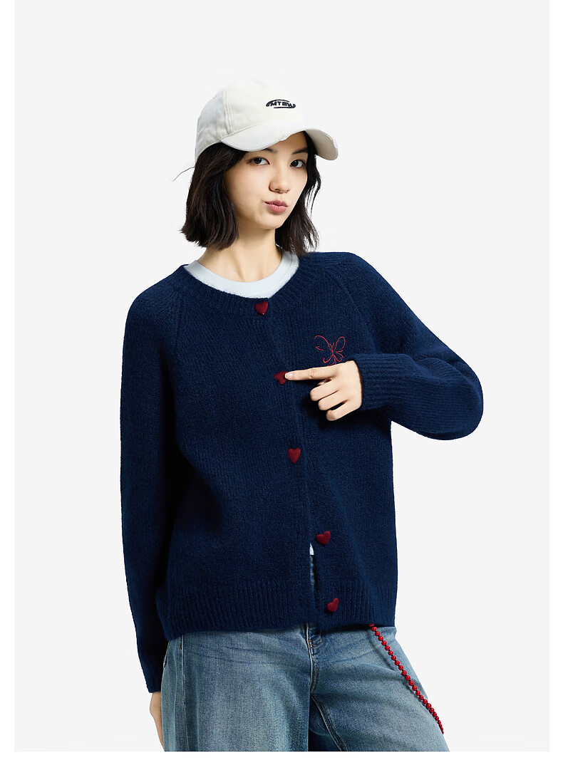 美特斯邦威毛衣女2025冬新款休闲针织毛开衫外套韩系加厚保暖上衣 藏青色 M 160/84A