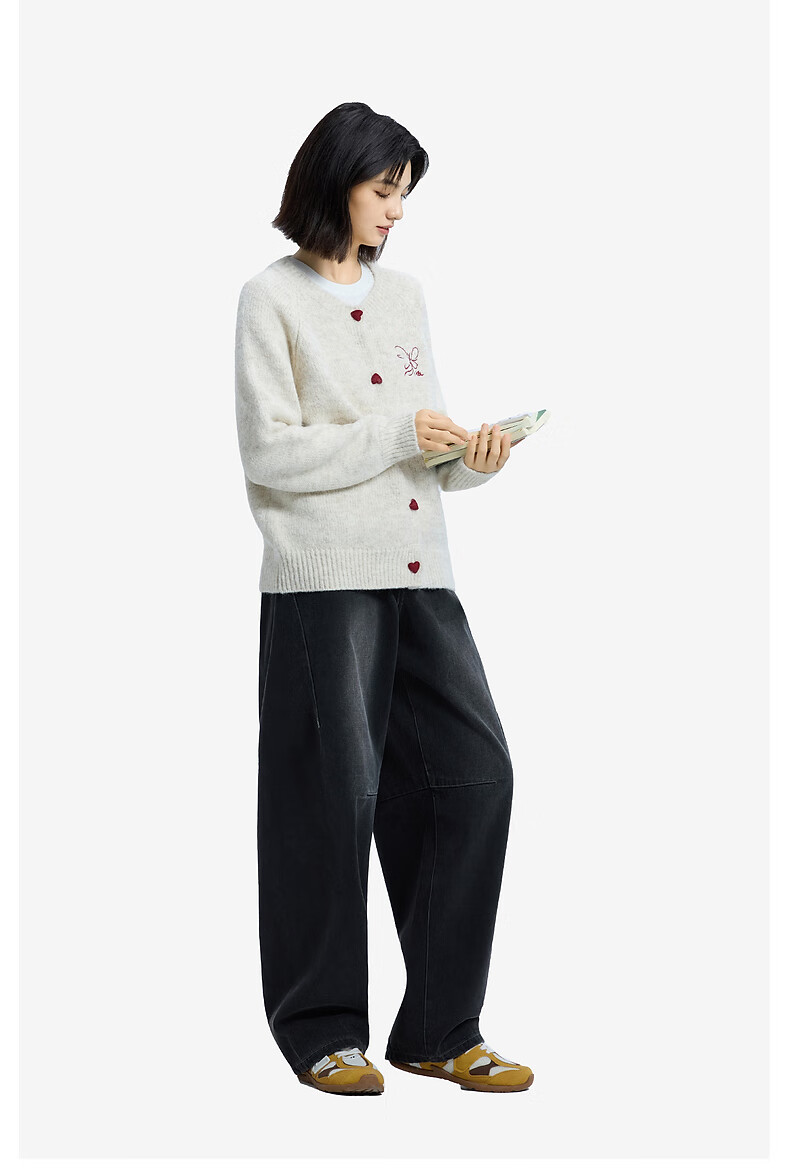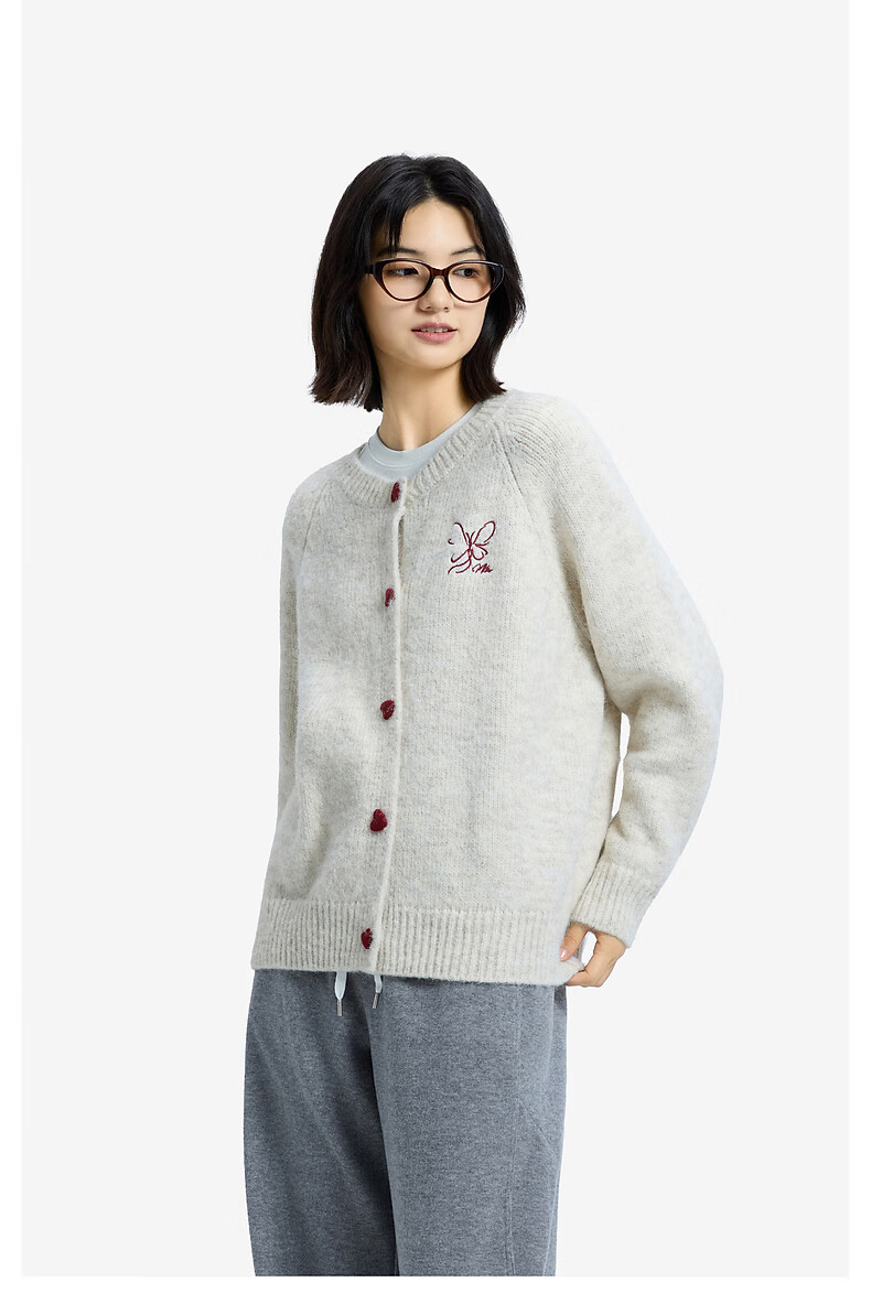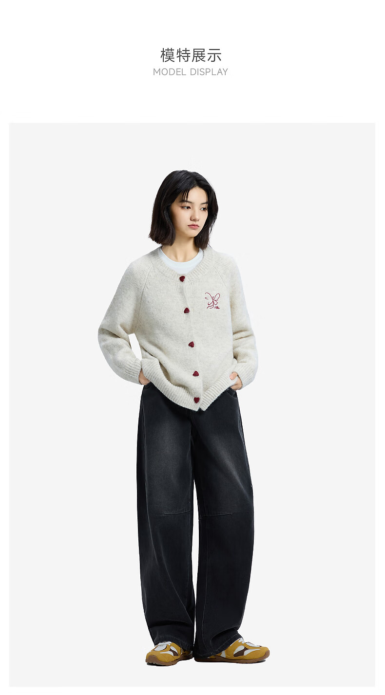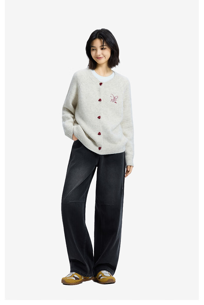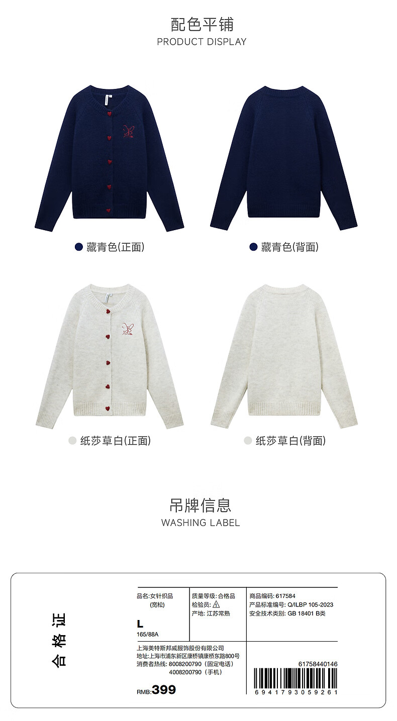 美特斯邦威毛衣女2025冬新款休闲针织毛开衫外套韩系加厚保暖上衣 藏青色 M 160/84A