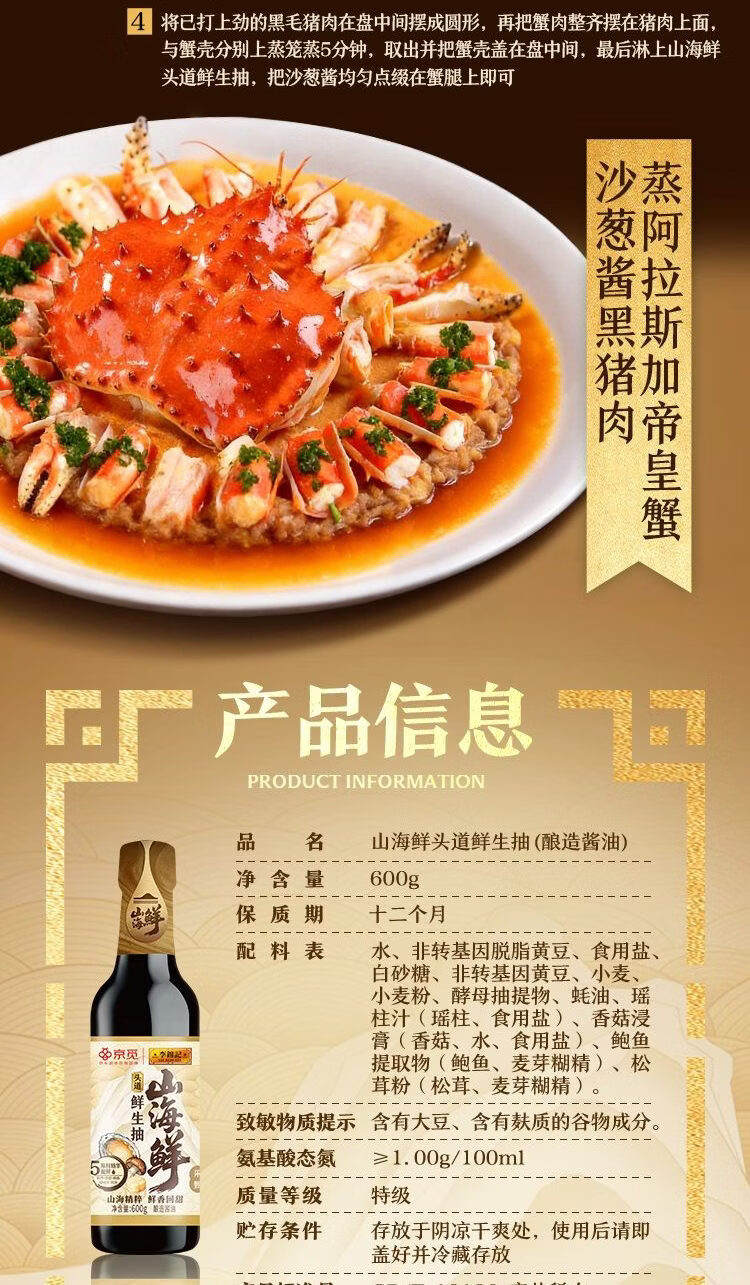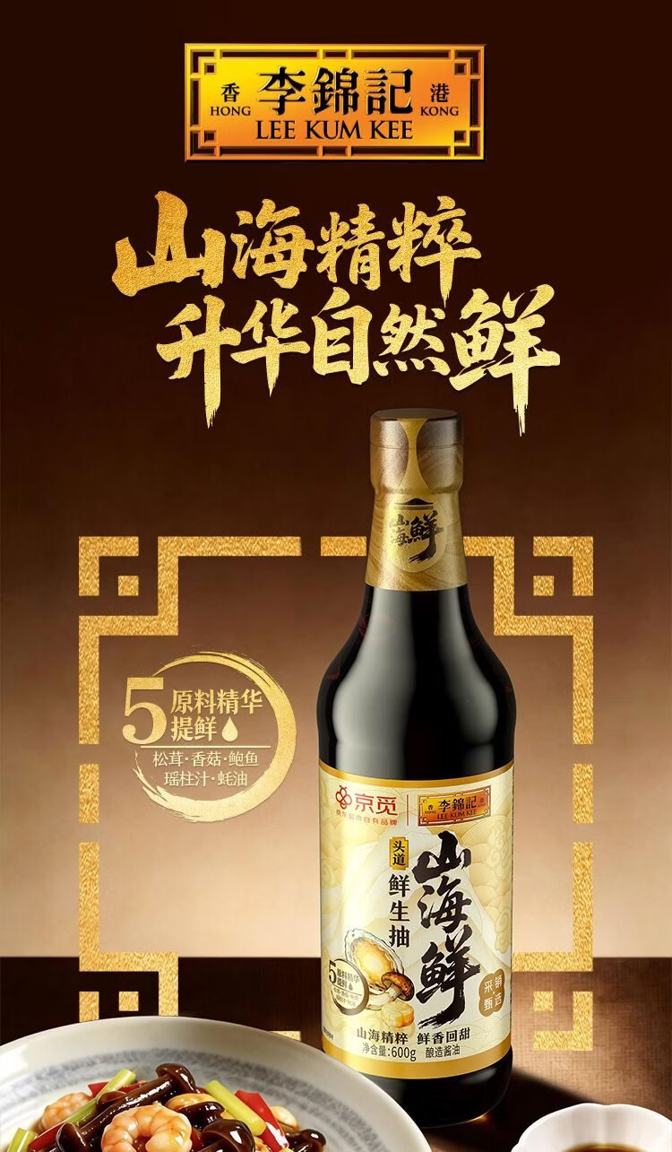李锦记X京觅 山海鲜头道鲜生抽600g 山海精粹 【头道特级】鲜酱油调味
