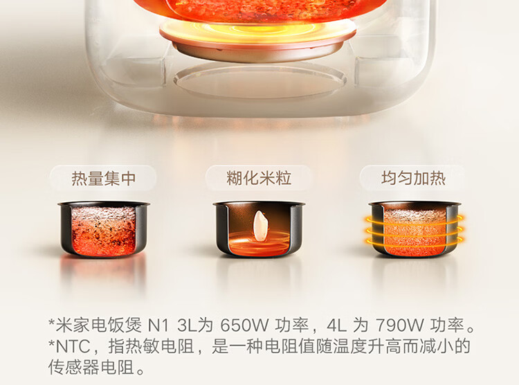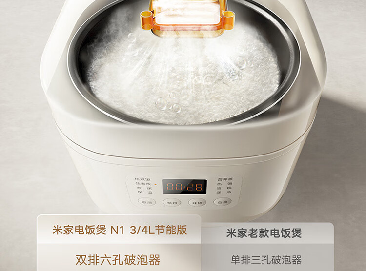 米家小米电饭煲N1 3L/4L 节能版 家用2-3人 多功能电饭锅煮粥锅煮饭 智能预约 不粘内胆 米家电饭煲N1节能版 3L