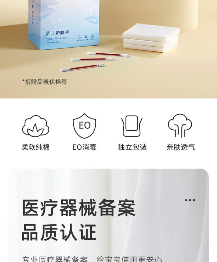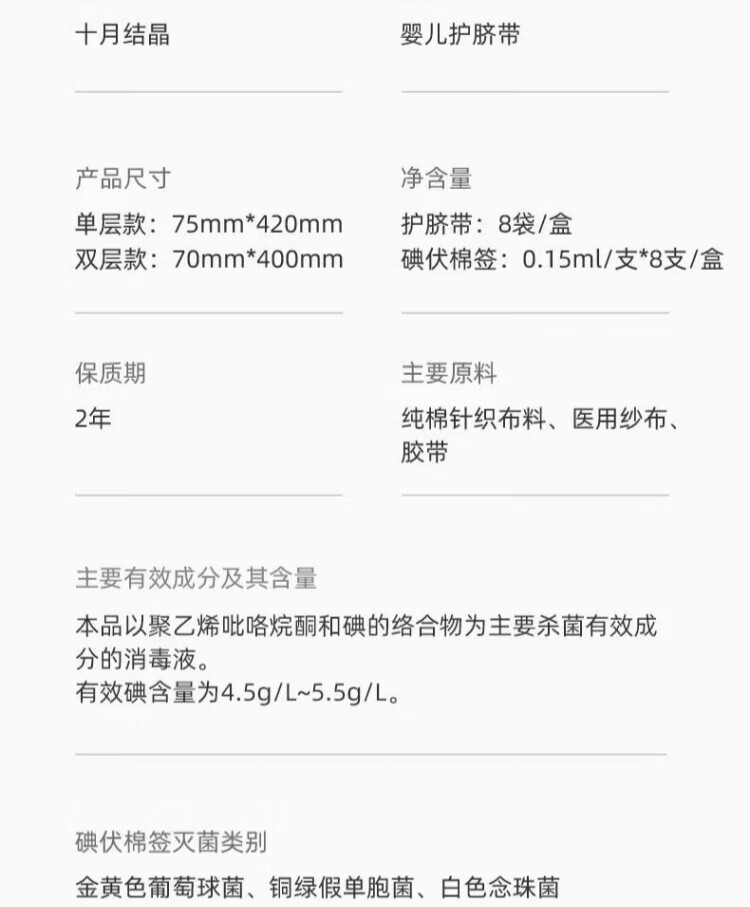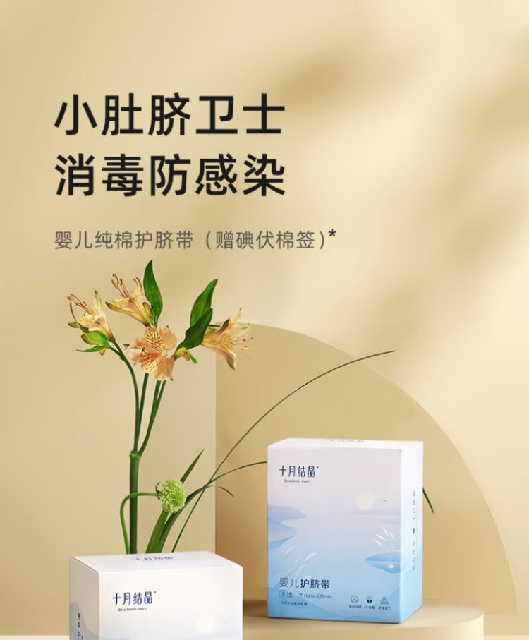 十月结晶婴儿护脐带8条/盒 新生儿宝宝柔软肚脐带独立装新老包装27年9月