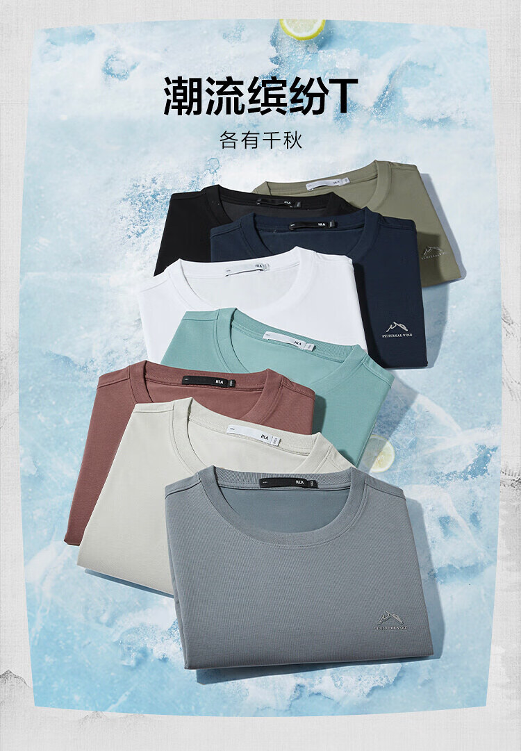 HLA海澜之家短袖T恤男吸湿速干凉感圆领短袖男夏季