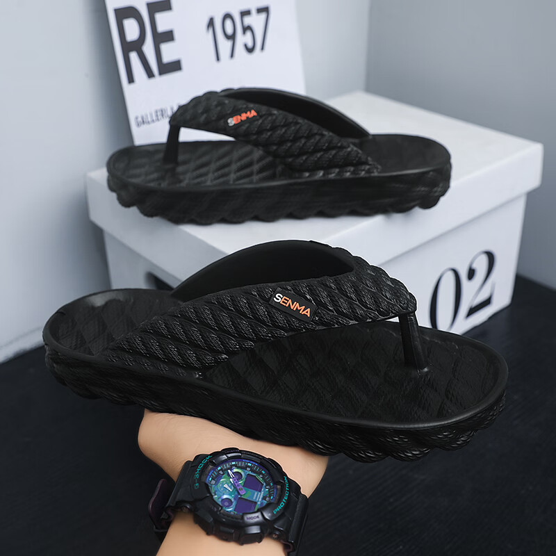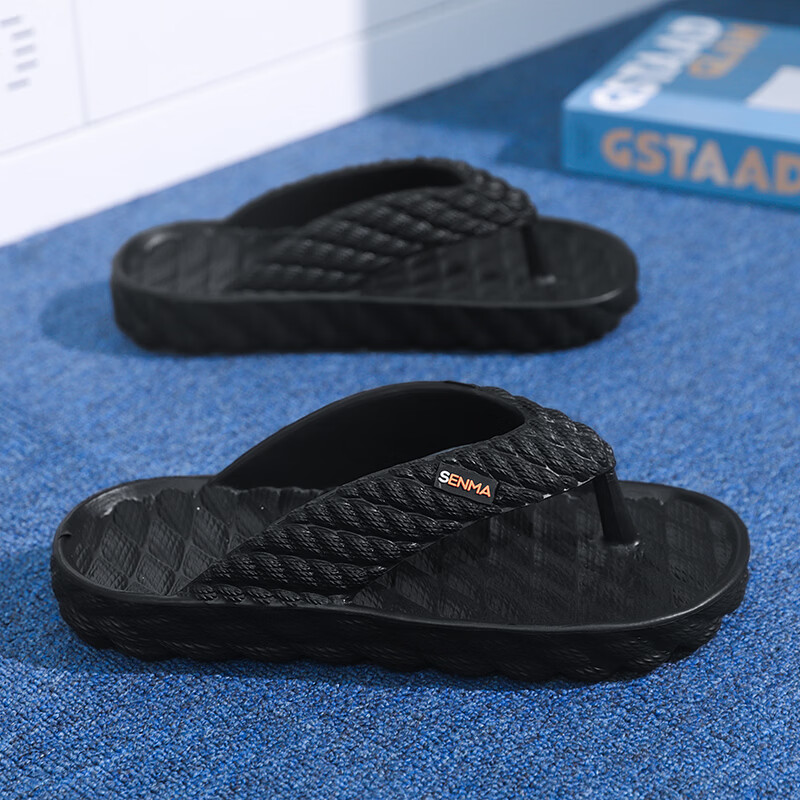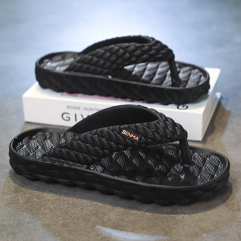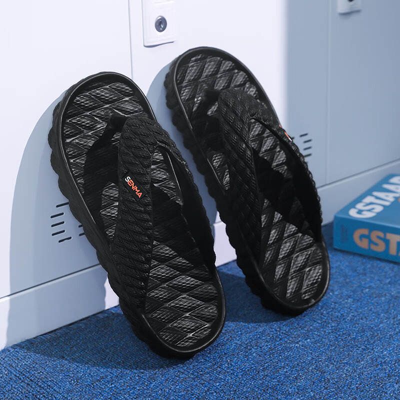 森馬人字拖男款2026夏季外穿耐磨防滑夹脚拖鞋厚底踩屎感运动沙滩凉鞋 黑色【基础款】 38-39 现货秒发