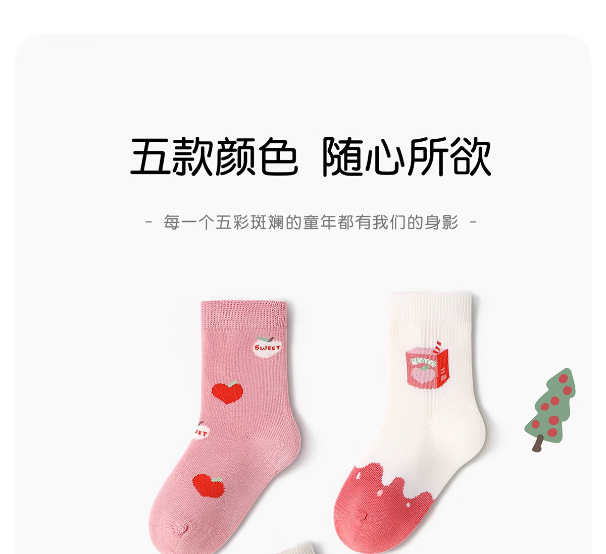 斑比儿童袜子春秋薄款棉袜中大童秋冬季女生宝宝无骨中筒袜 BB2471 秋冬款儿童袜子 5双 0-1岁 建议脚码16码以内【12-14】