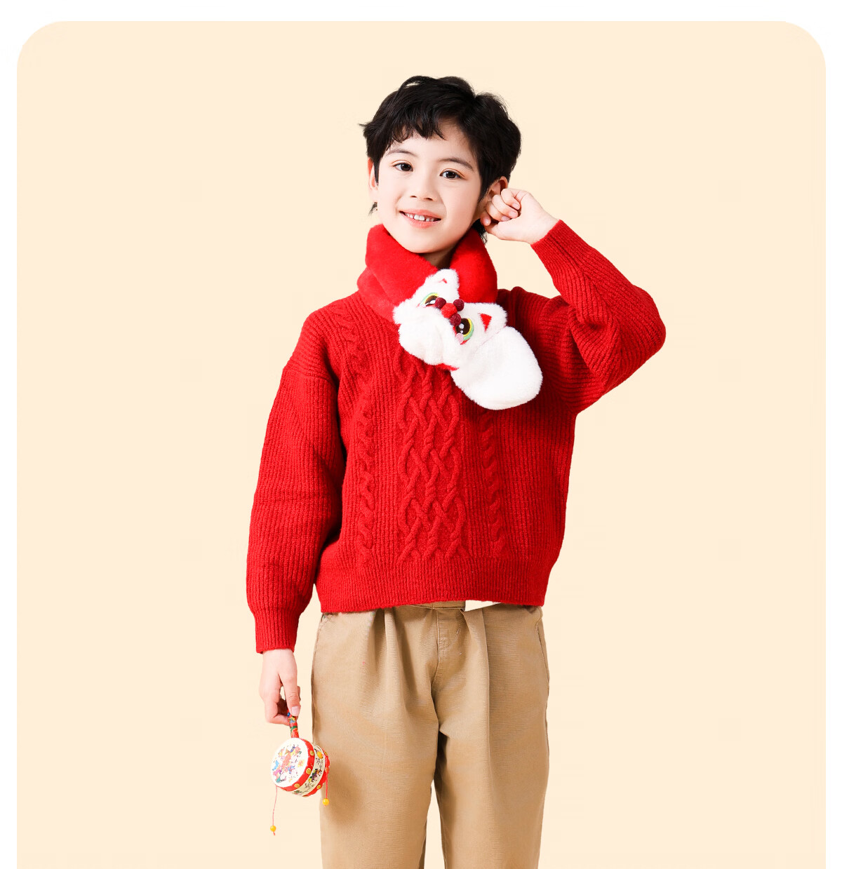 栀了成长记童装女童红色可爱亮片套装2025冬季儿童新年加绒两件套 红色 套装 100 cm