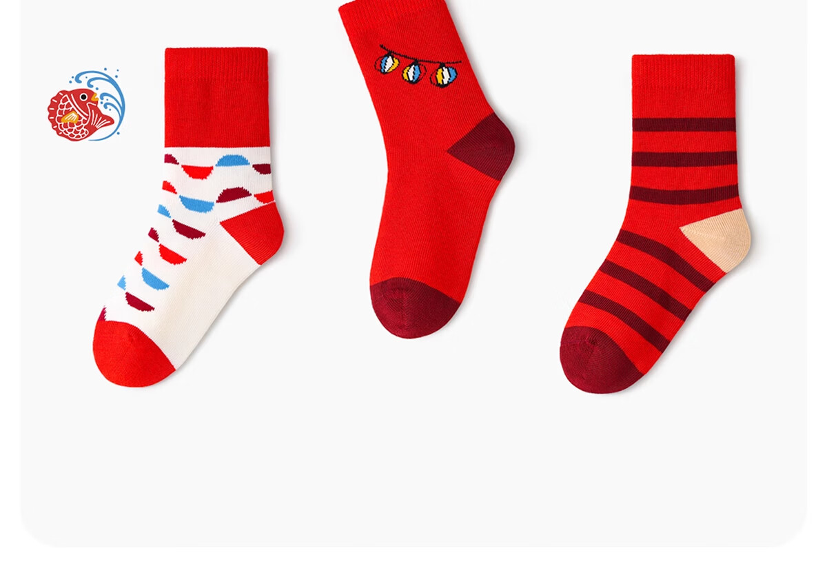 斑比童袜儿童红袜子秋冬季棉袜大童男女童春秋款新年无骨袜 BB2489 新年款儿童红袜子 5双 5-8岁 建议脚码27-32码【18-20】