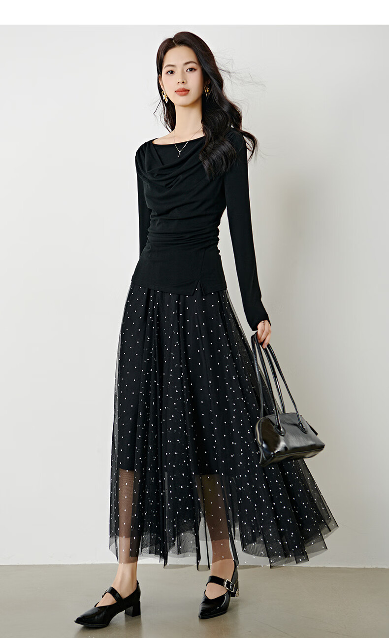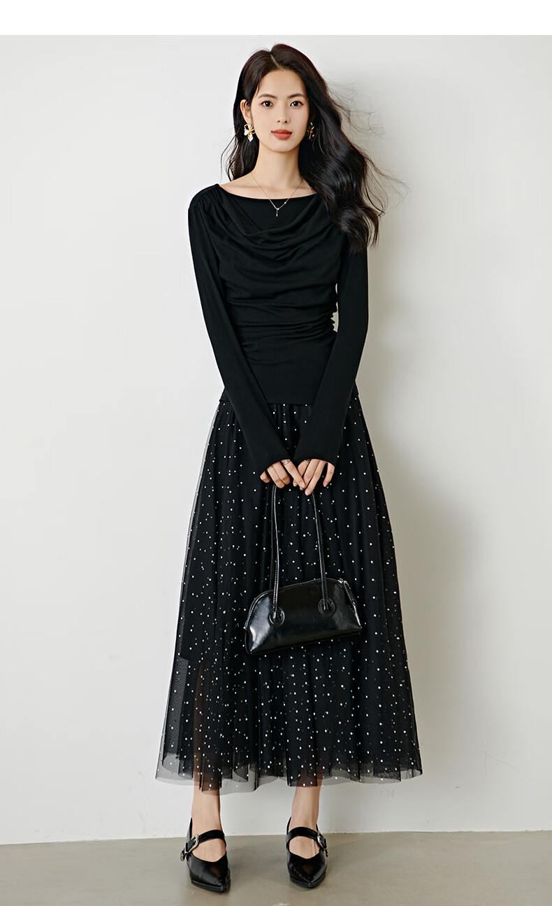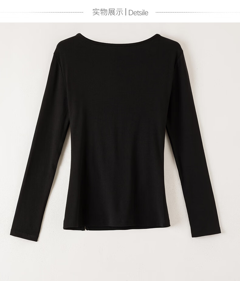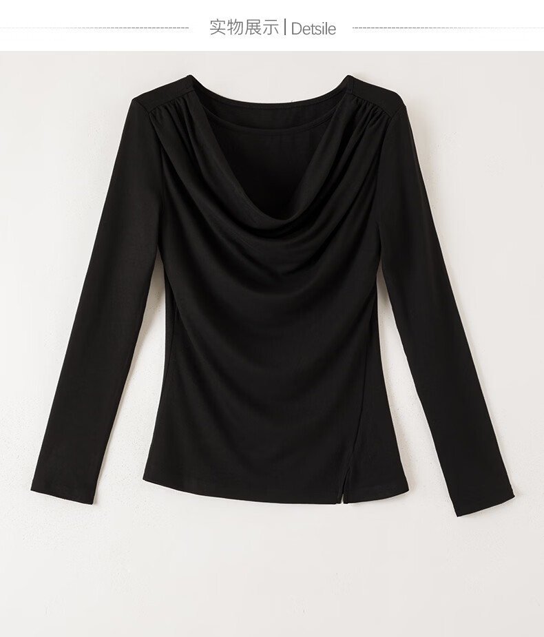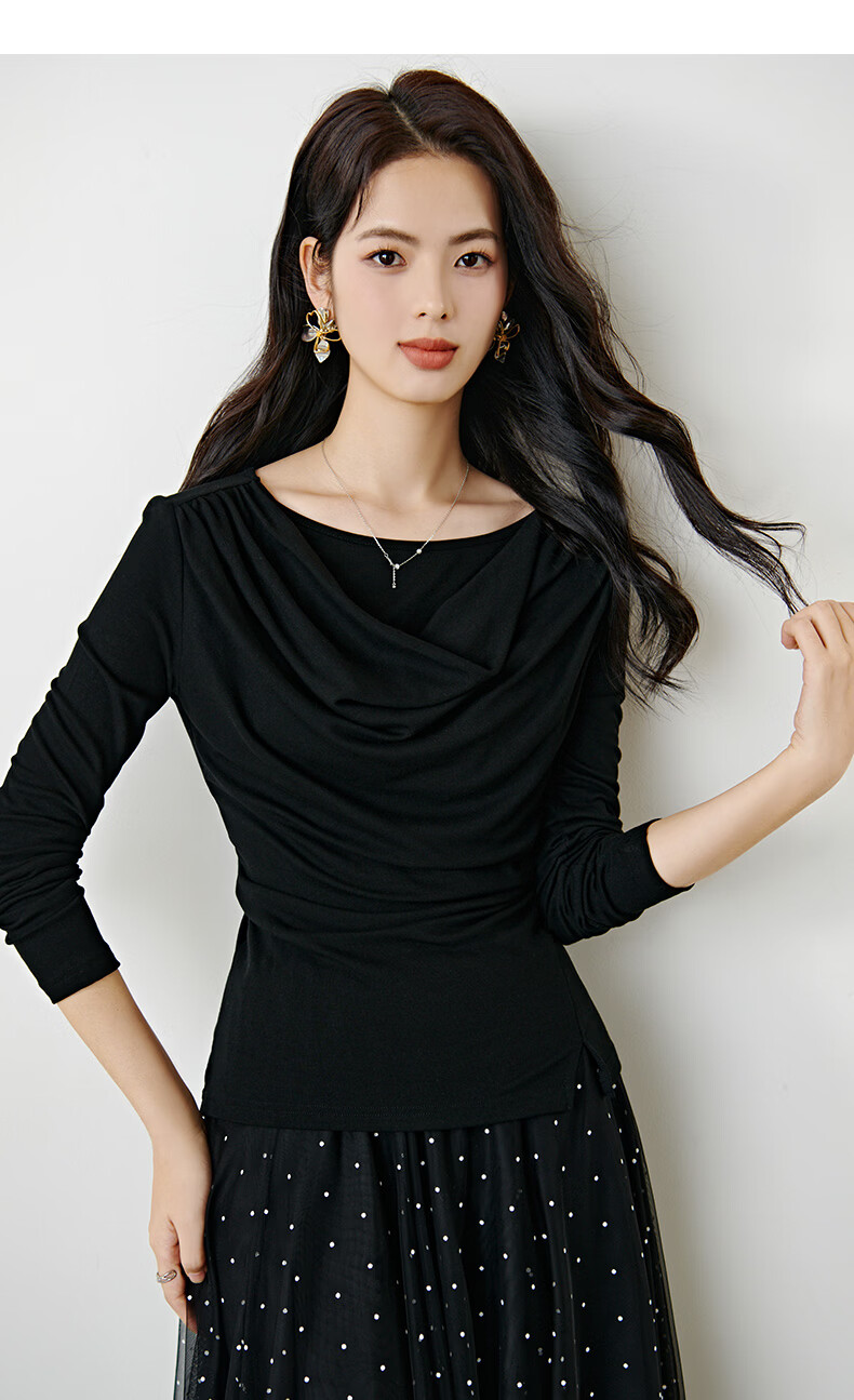 晚白【新品】2026年春款时尚堆堆领上衣亲肤柔软修身舒适T恤衫女 黑色 S