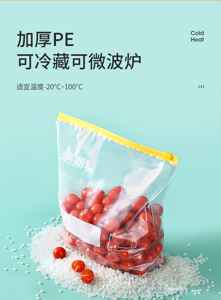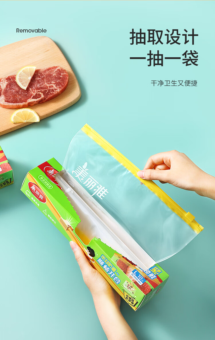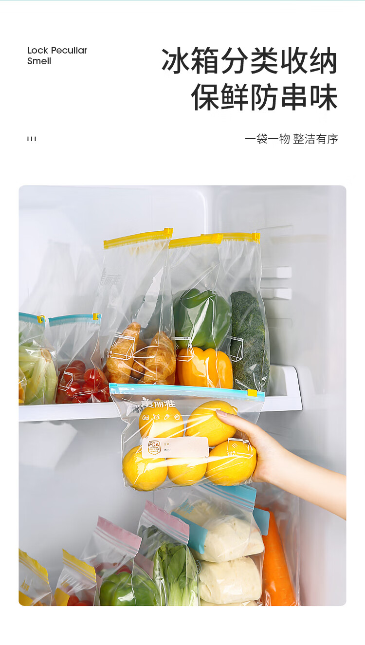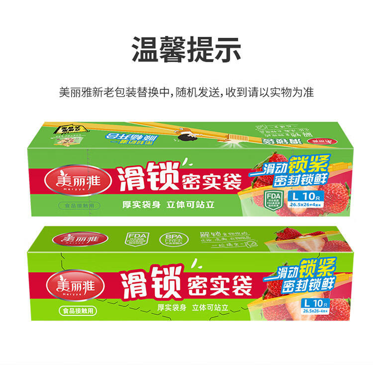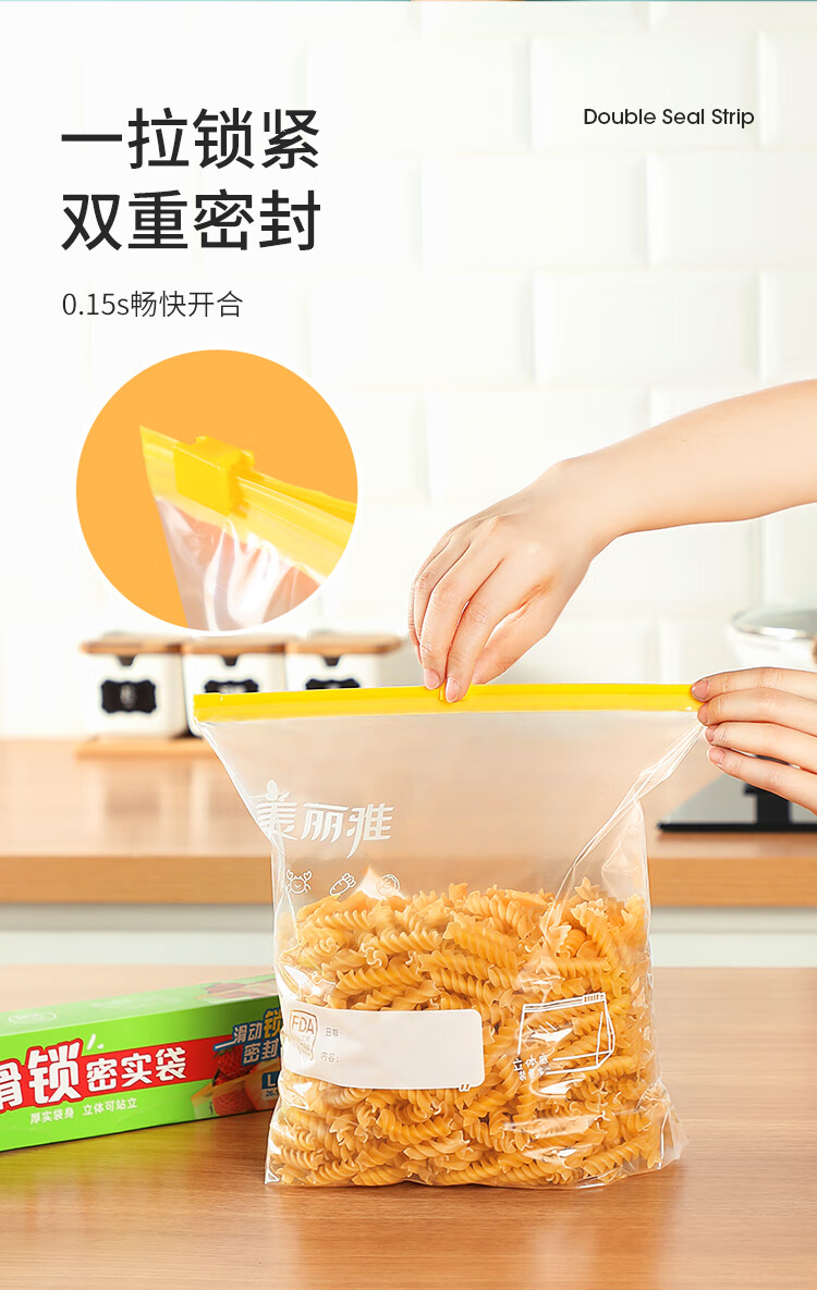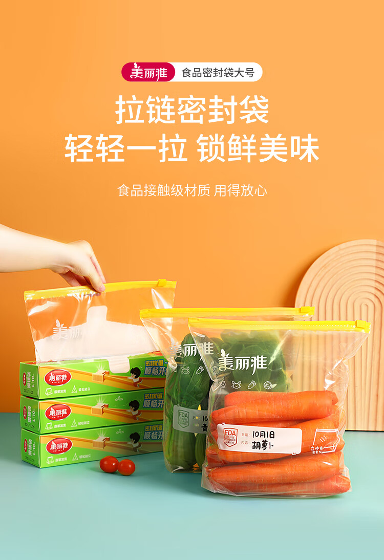 美丽雅食品密封袋拉链大号10只加厚一次性厨房冰箱冷藏保鲜透明自封袋