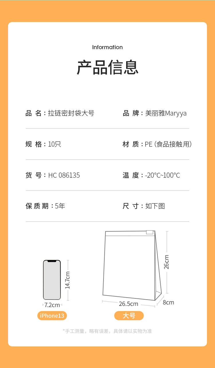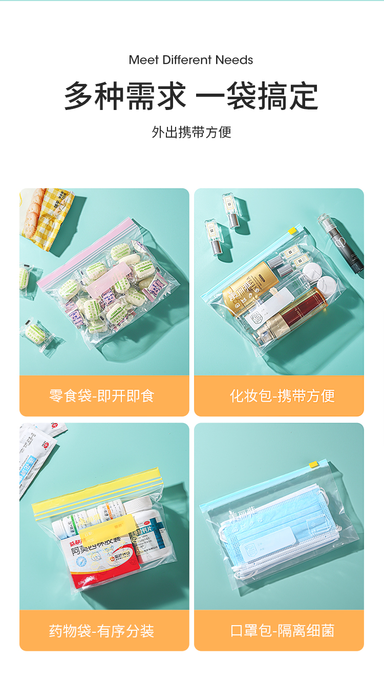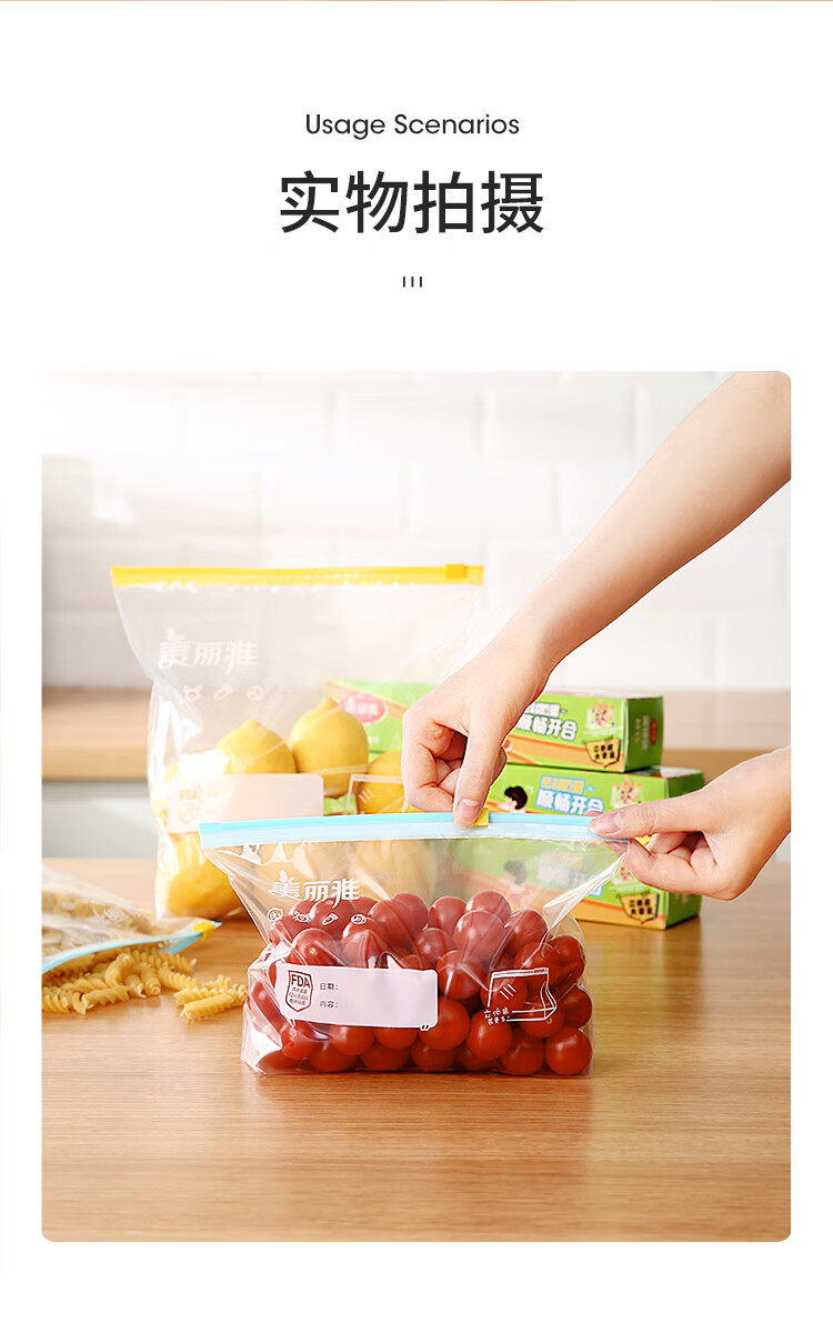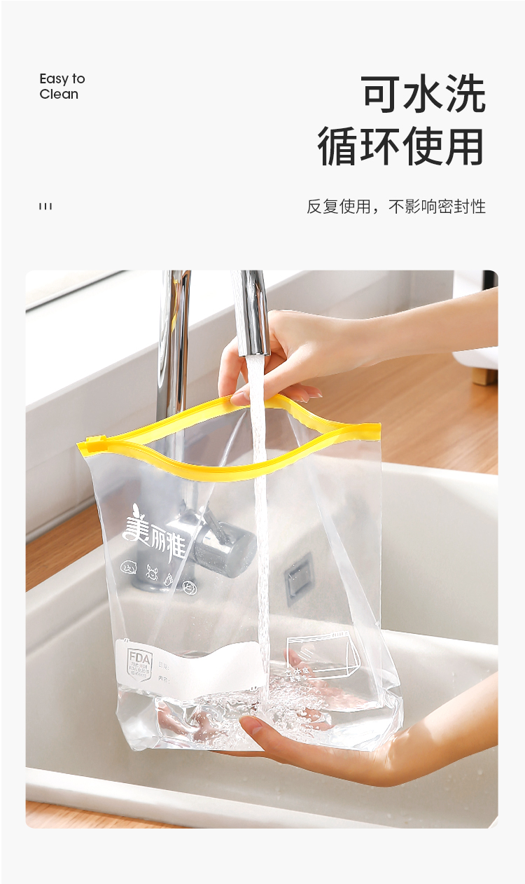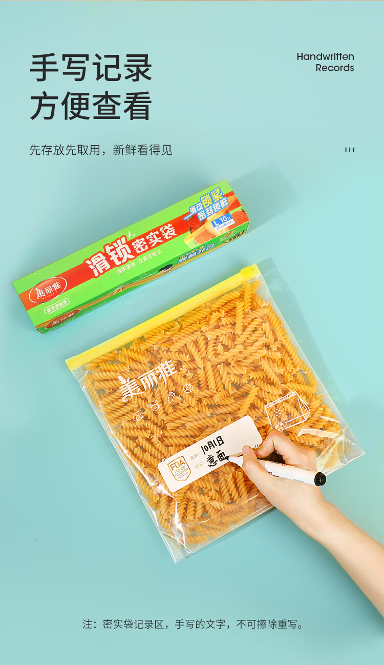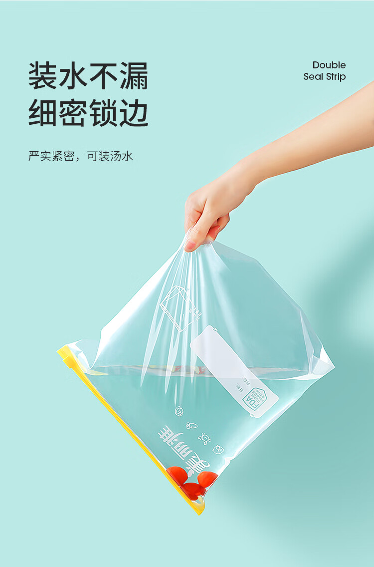 美丽雅食品密封袋拉链大号10只加厚一次性厨房冰箱冷藏保鲜透明自封袋
