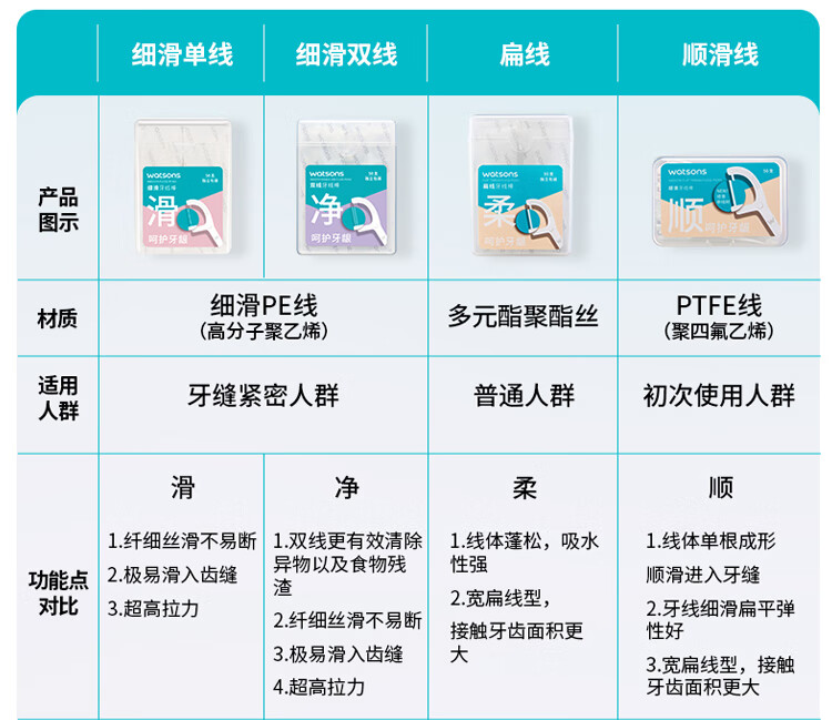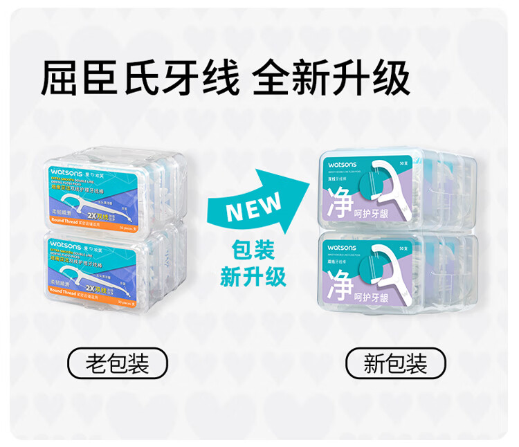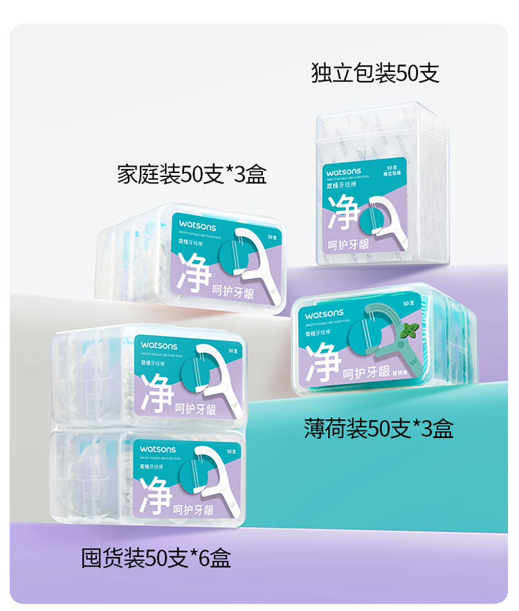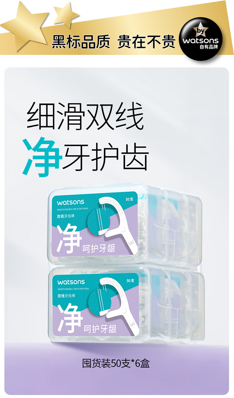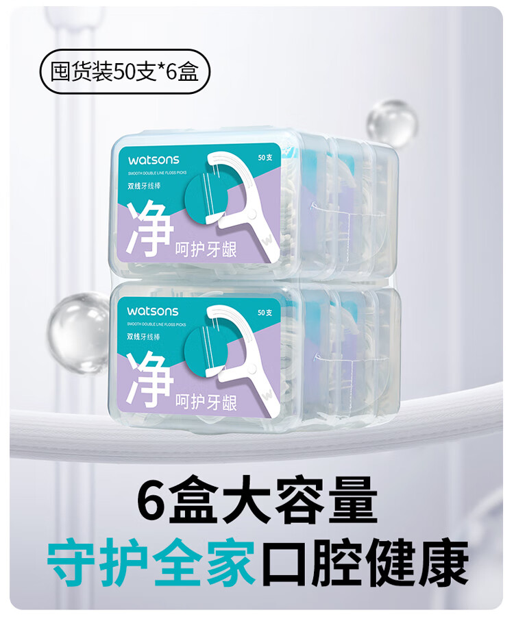 屈臣氏细滑深洁双线护理牙线棒50支x6盒( 双线设计 清洁面更大)