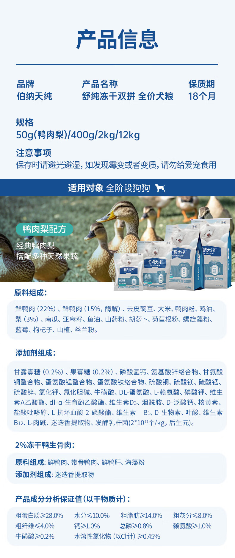 伯纳天纯舒纯鸭肉梨冻干双拼狗粮2kg