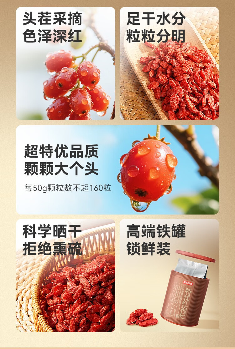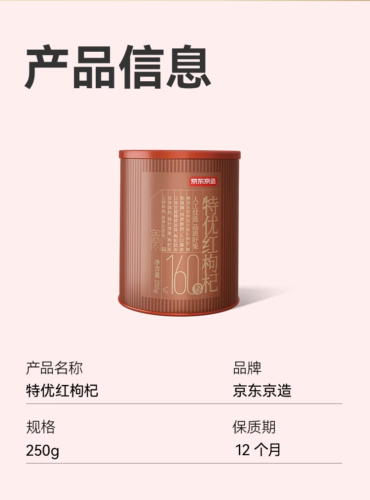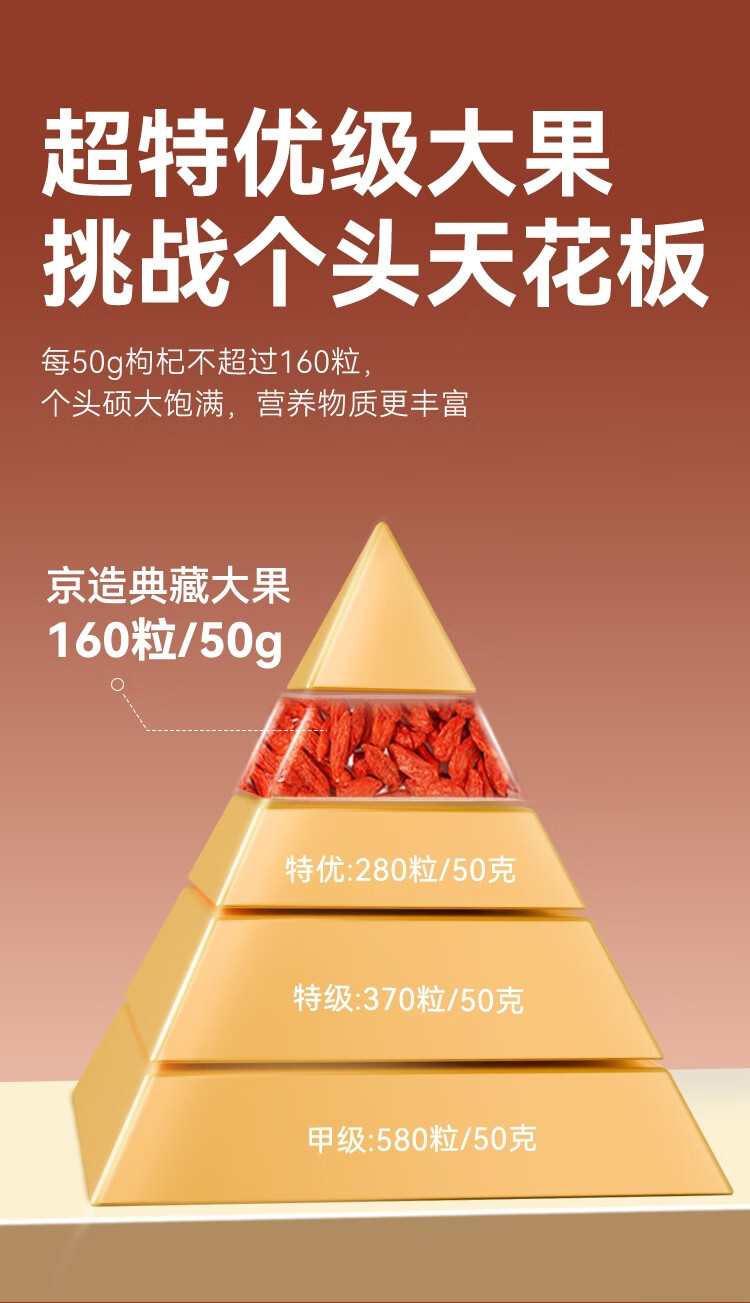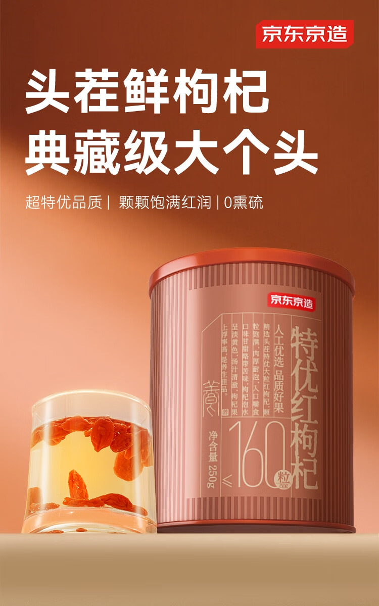 京东京造特优贡果红枸杞500g 新货宁夏中宁头茬枸杞茶160粒节日礼品