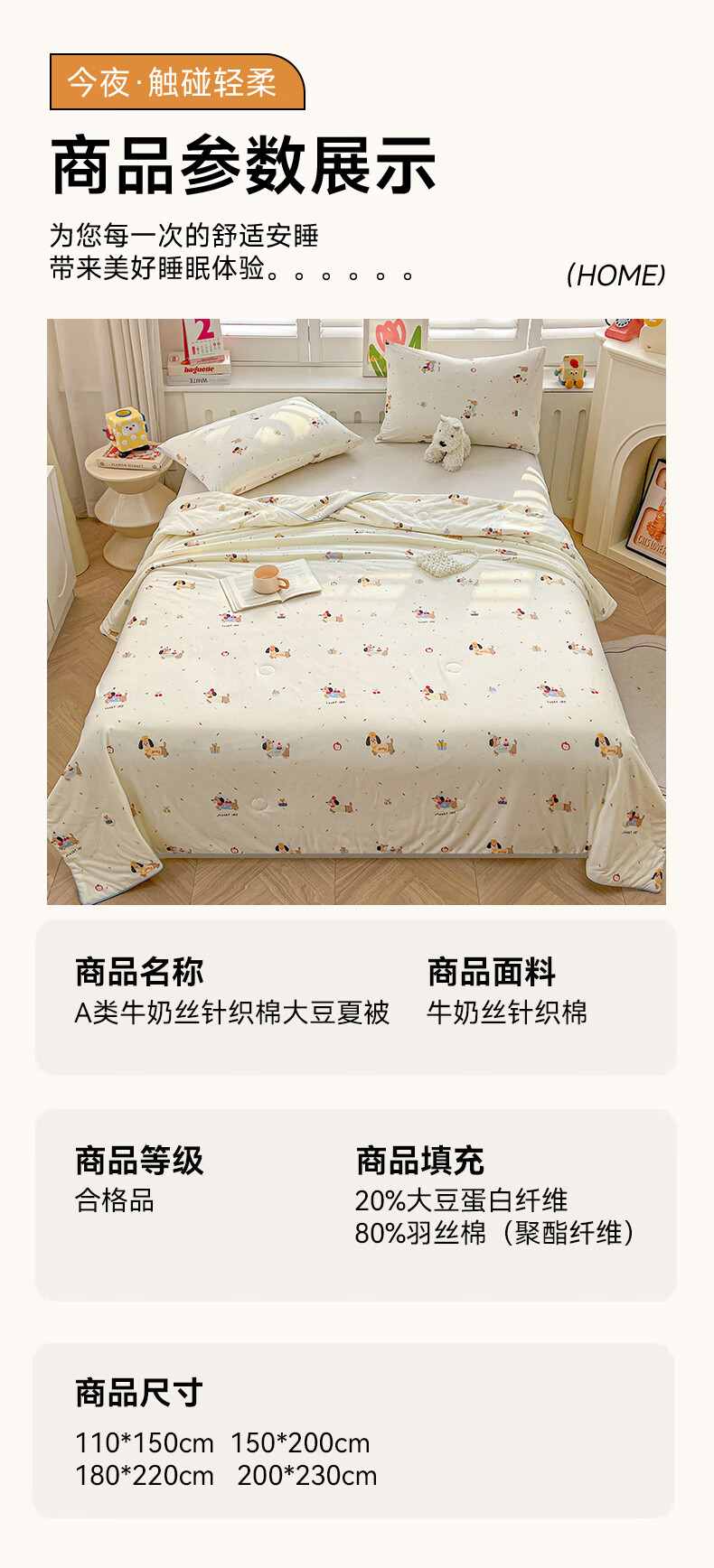 浪莎(LangSha)A类牛奶丝大豆夏凉被空调被春秋季儿童薄款被子学生宿舍单人盖被 萌宠 150x200cm【单人被】