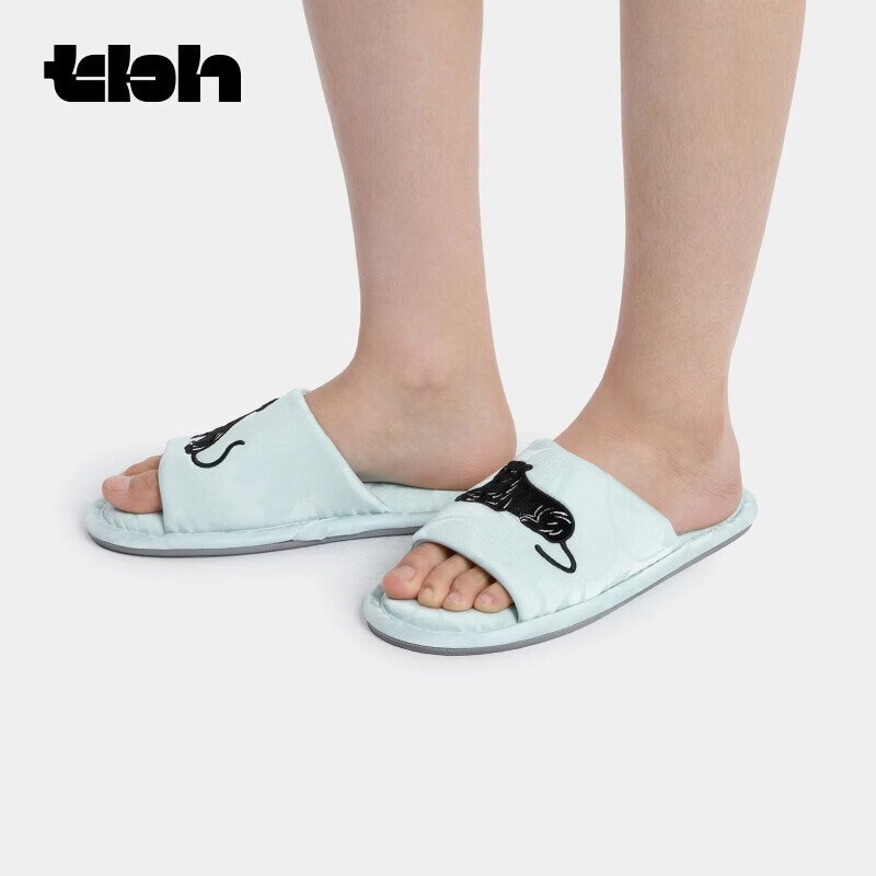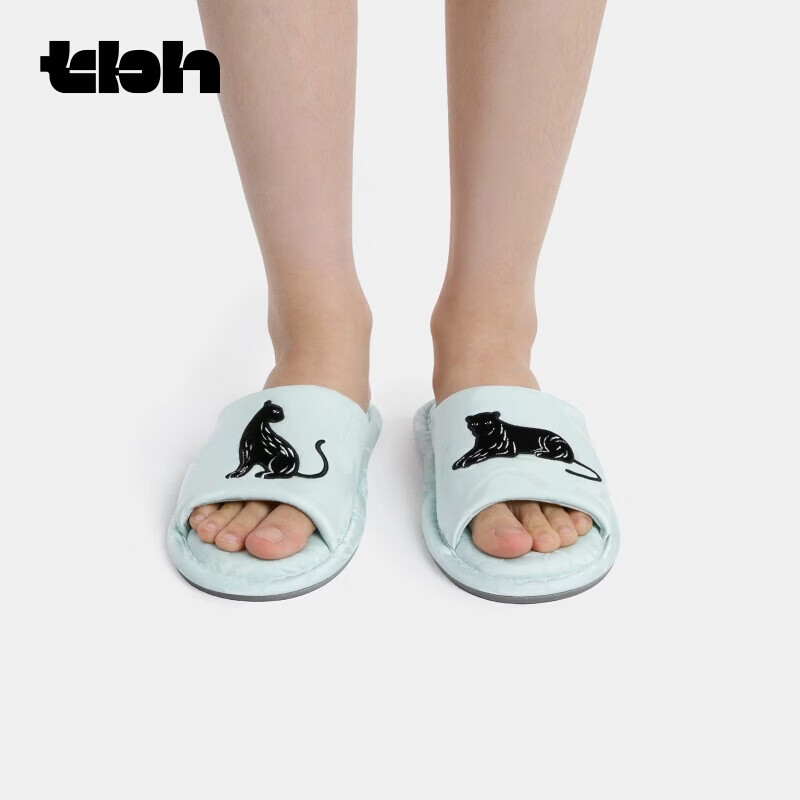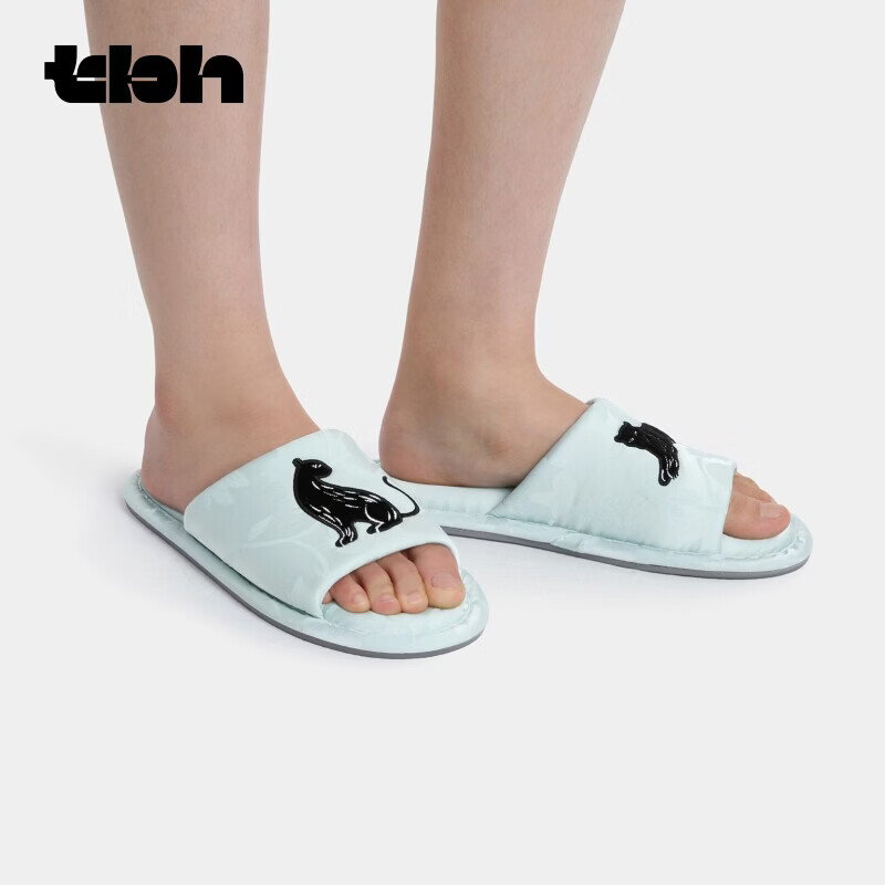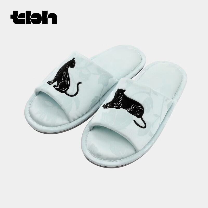 野兽派家居(tbh)都市野兽黑豹提花开口拖可外穿室内家居鞋夏季拖鞋 黑豹提花开口拖鞋 雾蓝 38-39