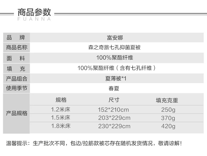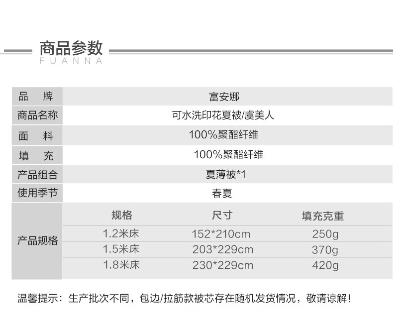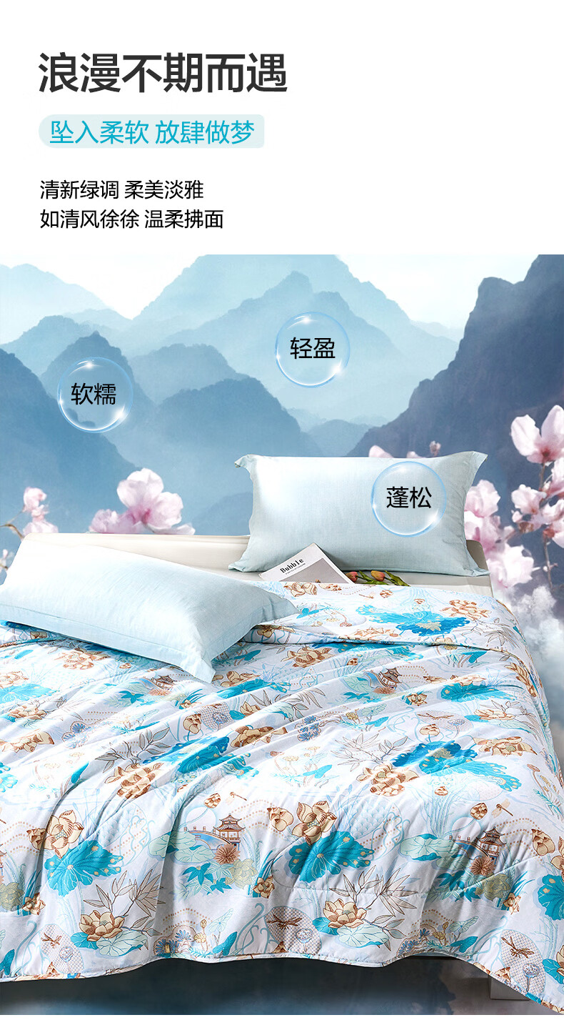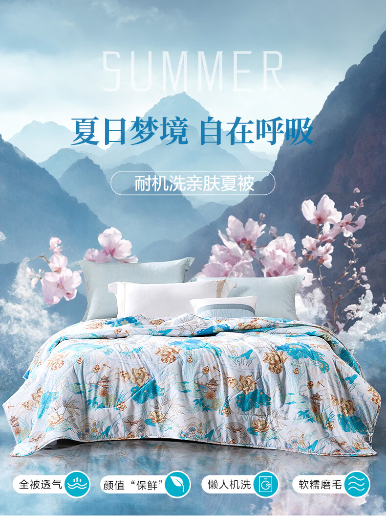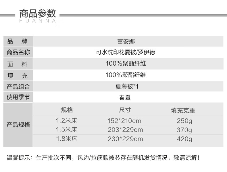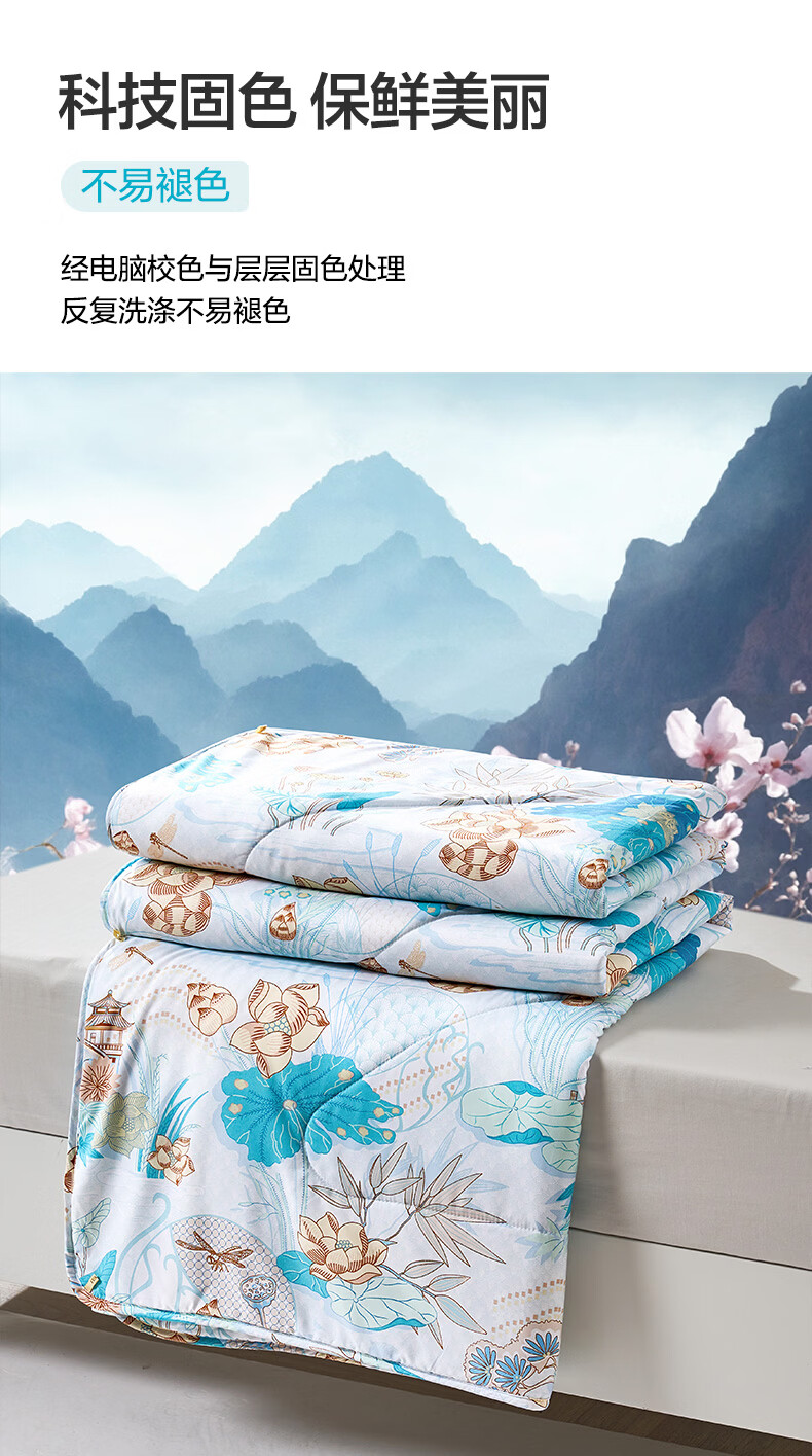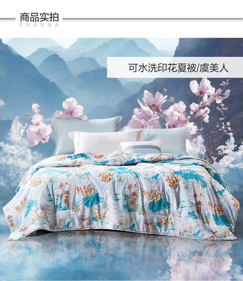 富安娜 夏凉被空调被抑菌可机洗印花纤维单人双人夏天薄被子 【抑菌可机洗】罗伊德 203cm*229cm