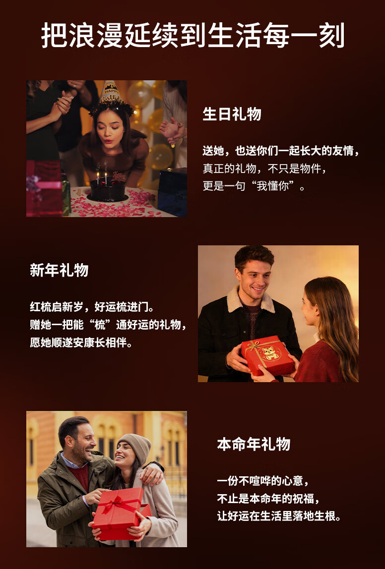 KRRAMEL生日礼物女士梳子礼物女生实用高级感闺蜜梳子礼盒新婚礼物 马到梳成