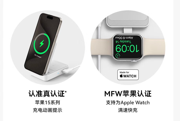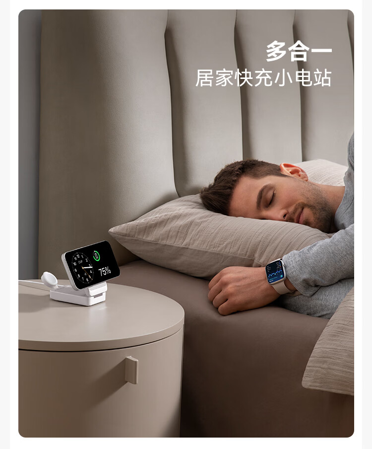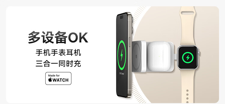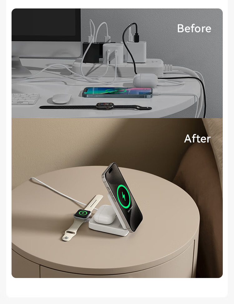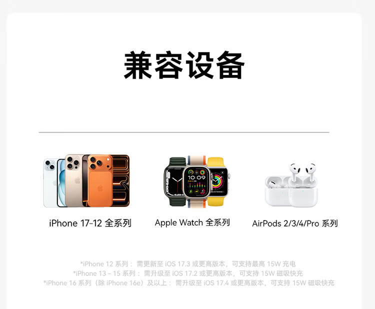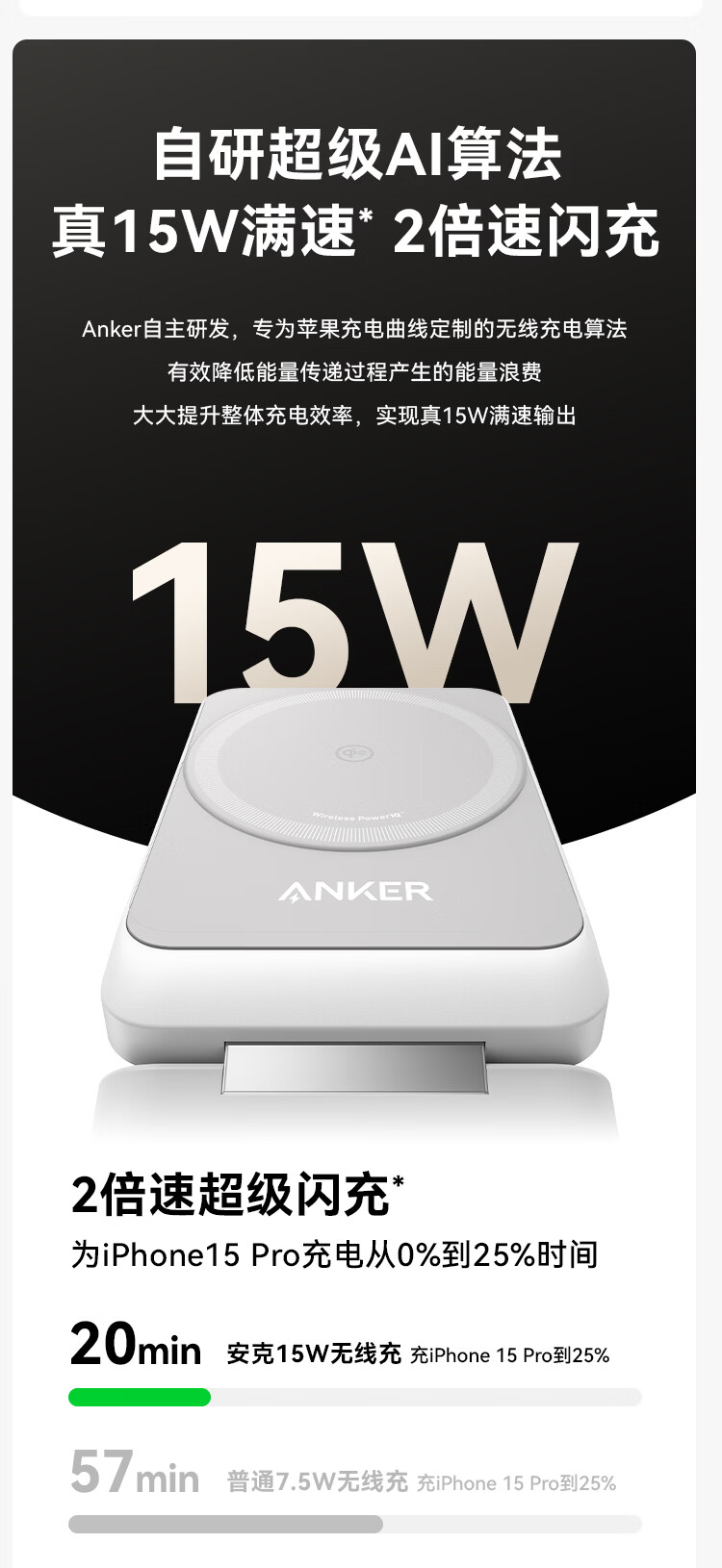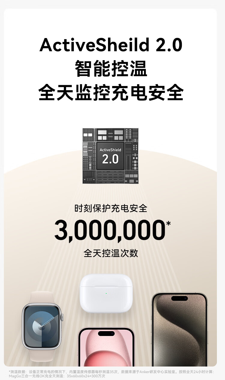 ANKER安克MagGo15W磁吸三合一无线充电器可折叠苹果手机快充同时充iPhone17Apple WatchAirPods耳机手表 【黑色】三合一|15W无线快充|可折叠