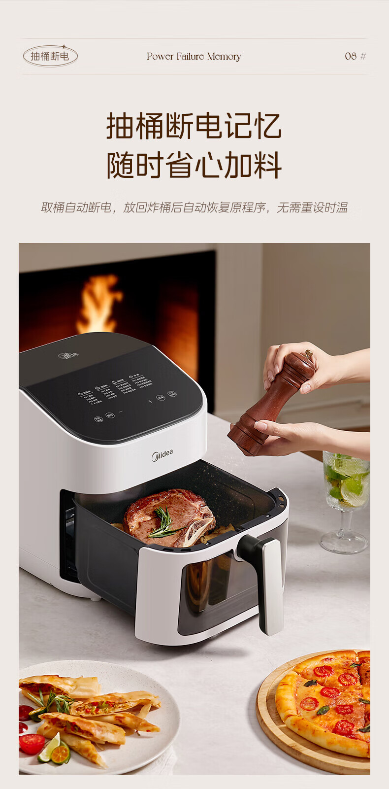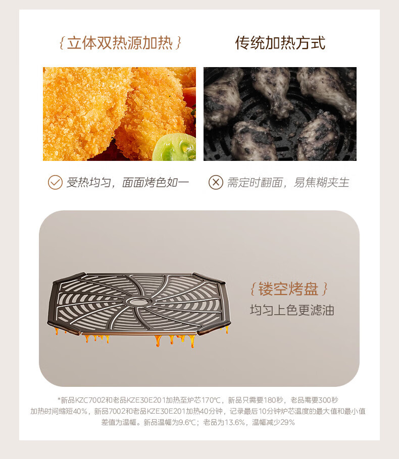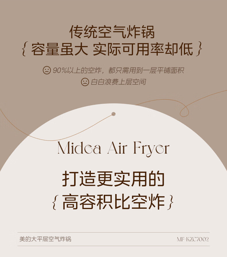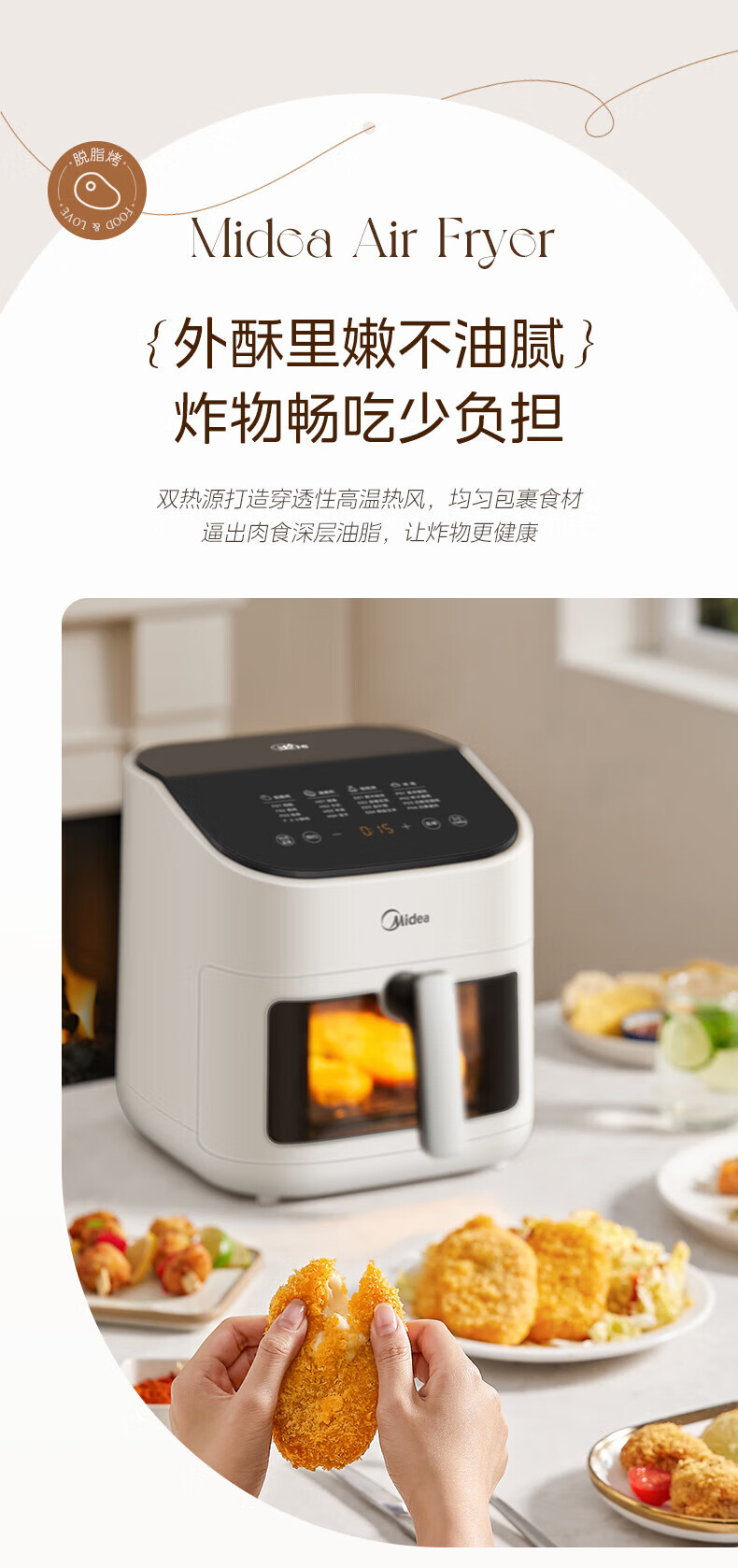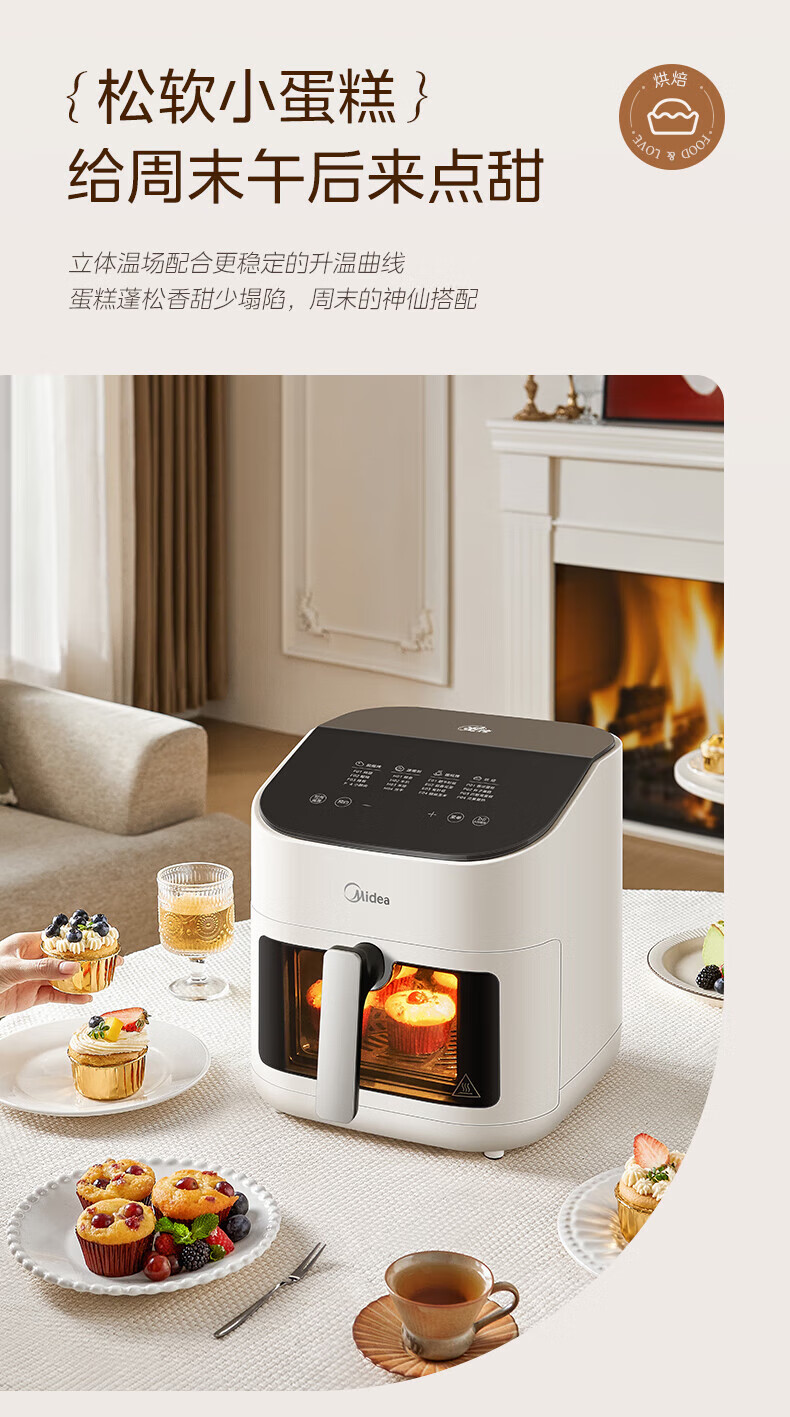 美的(Midea)空气炸锅家用 25年新款 实用大容量 电子菜单 双热源 不用翻面透明可视窗口烤箱一体机7L 免翻面 KZC7002【平层空炸】 7L