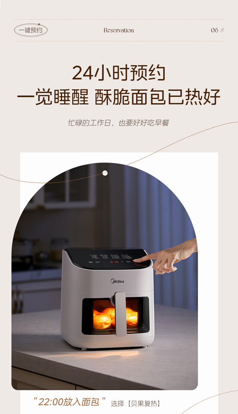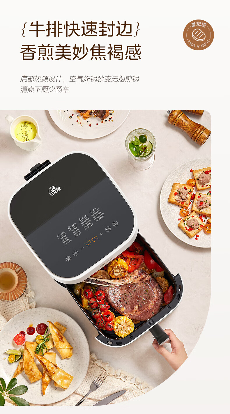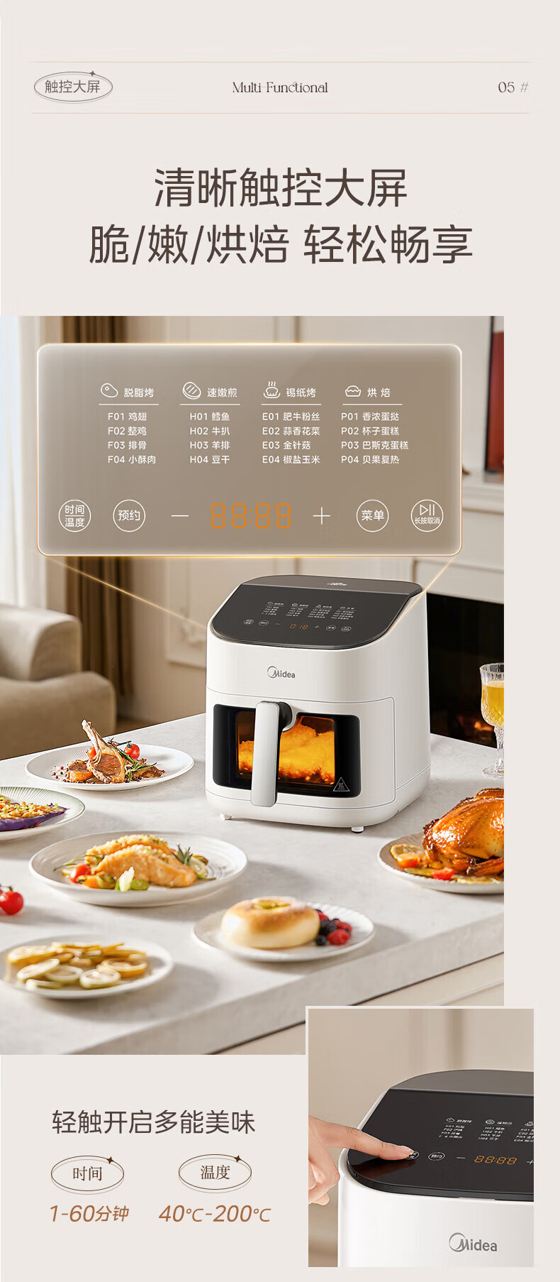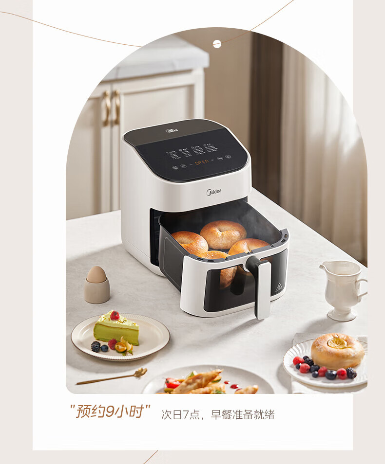 美的(Midea)空气炸锅家用 25年新款 实用大容量 电子菜单 双热源 不用翻面透明可视窗口烤箱一体机7L 免翻面 KZC7002【平层空炸】 7L