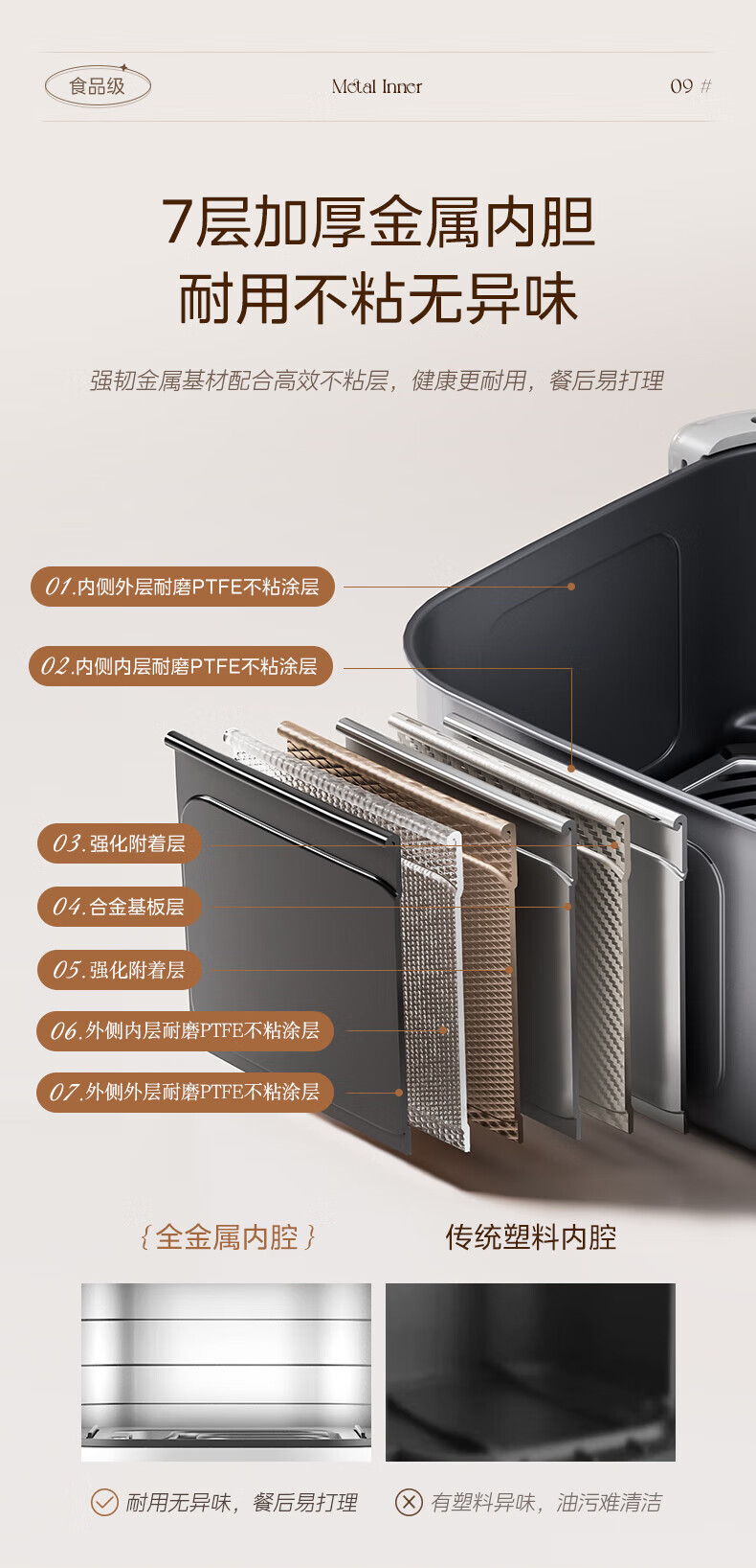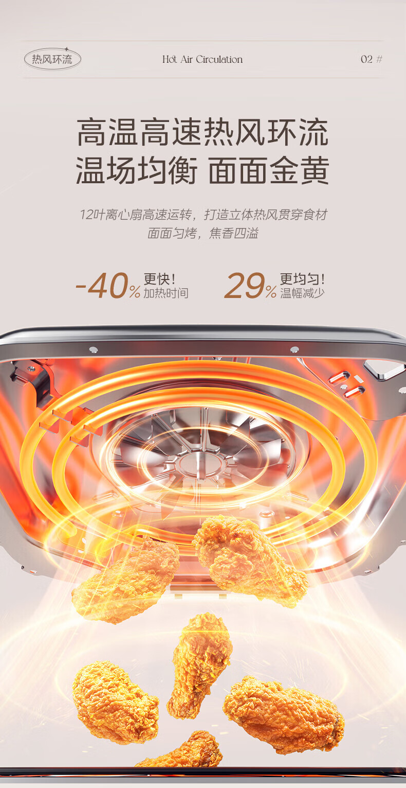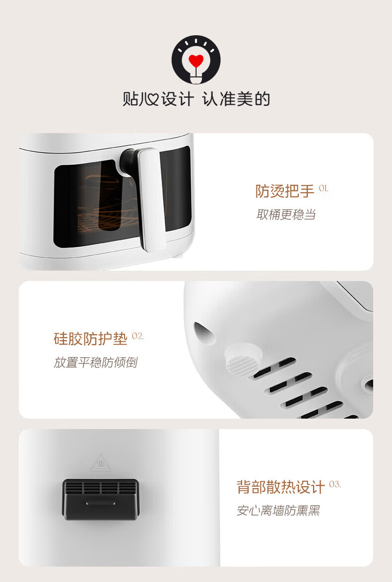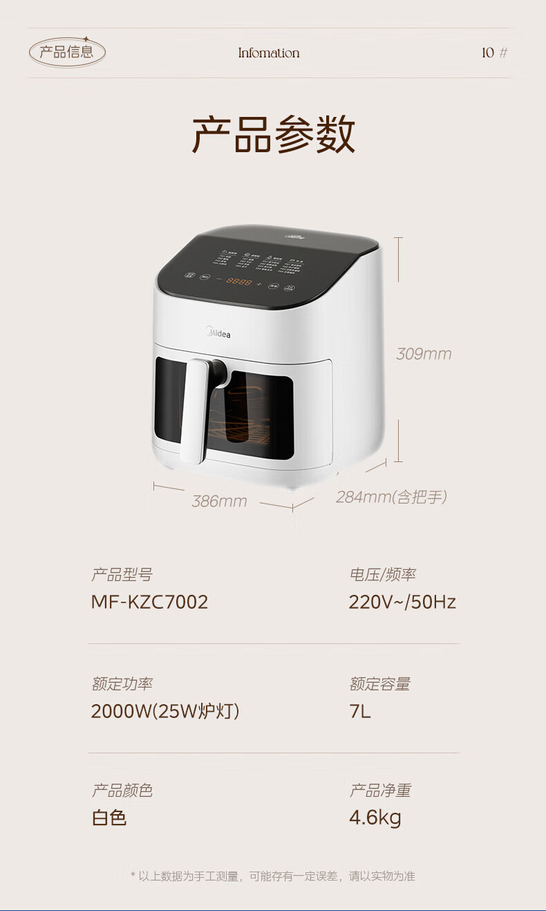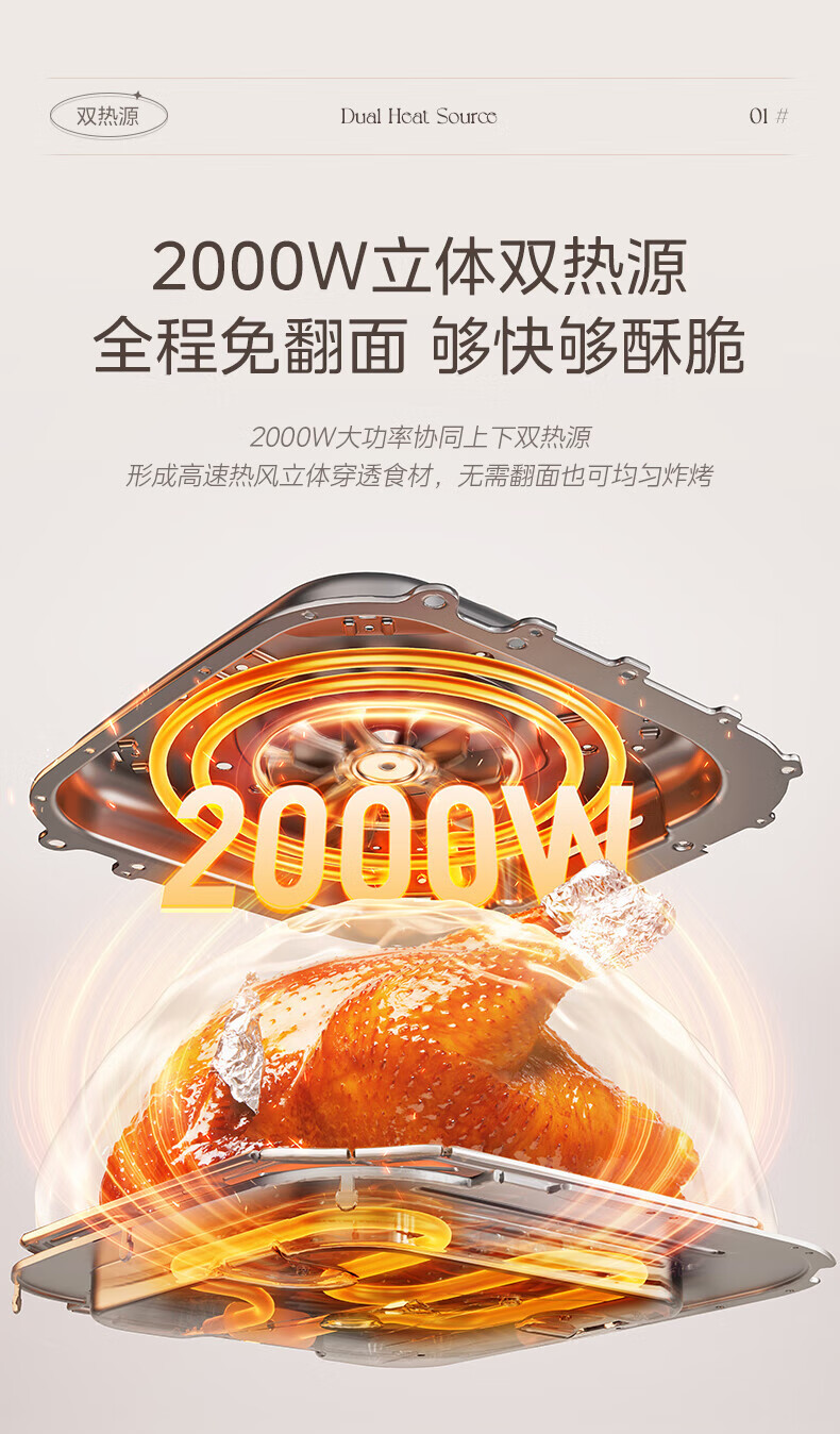 美的(Midea)空气炸锅家用 25年新款 实用大容量 电子菜单 双热源 不用翻面透明可视窗口烤箱一体机7L 免翻面 KZC7002【平层空炸】 7L