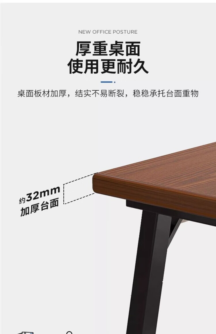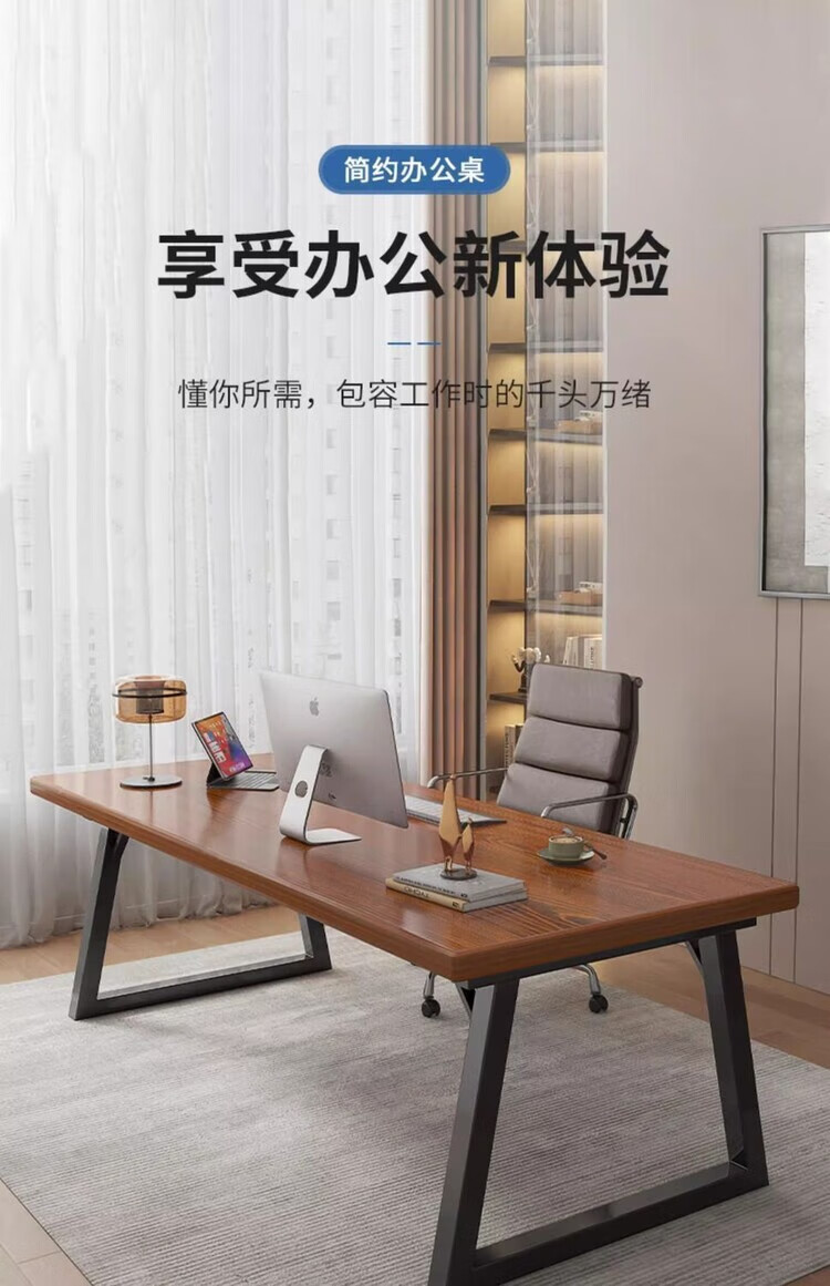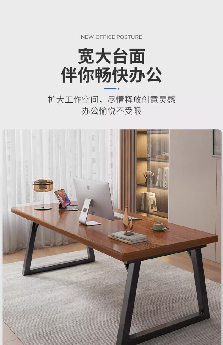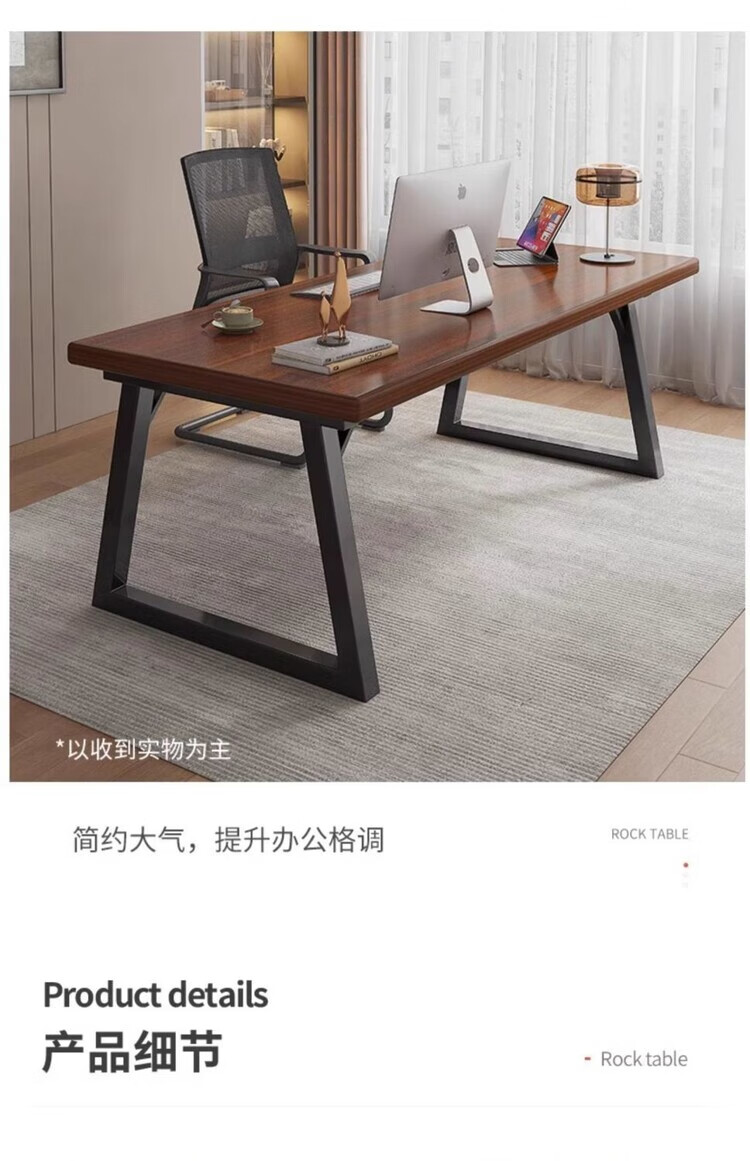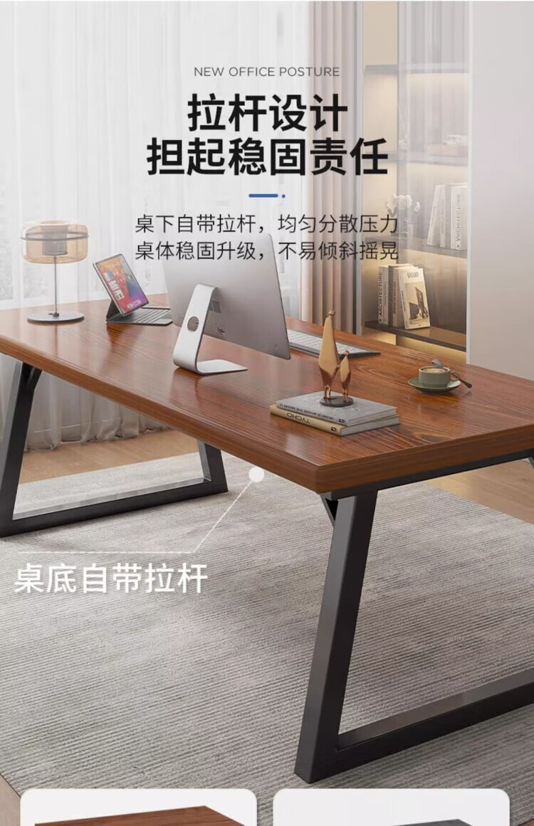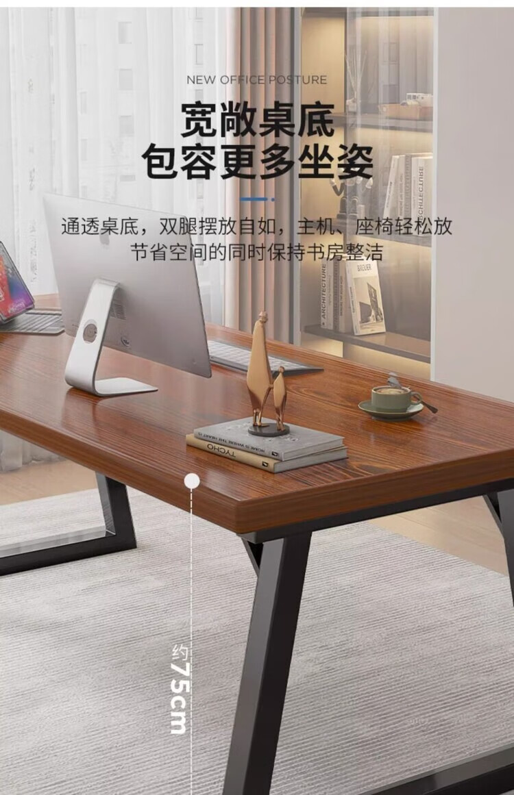 弘星隆办公桌现代电脑桌家用台式双人长书桌学生家用简易写字桌子工作台 胡桃色 100cm*60cm
