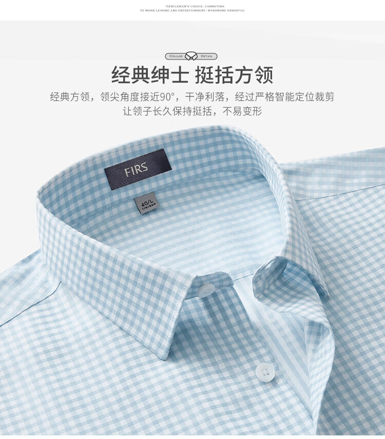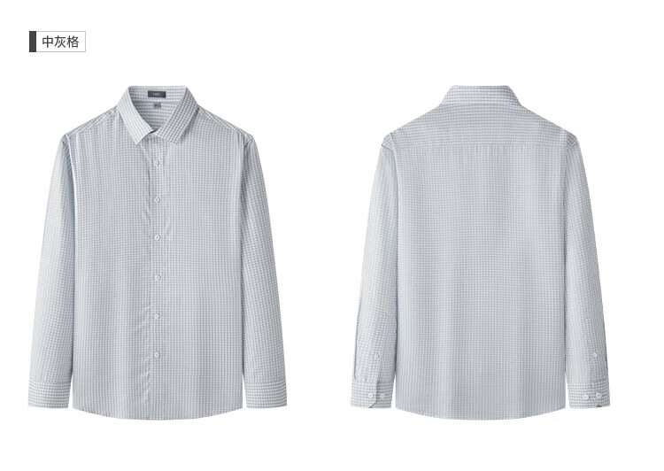 杉杉(FIRS)【免烫抗菌】长袖衬衫男舒适亲肤柔软衬衣垂顺抗皱可机洗商务上衣 中灰格 S 165/84A(38)