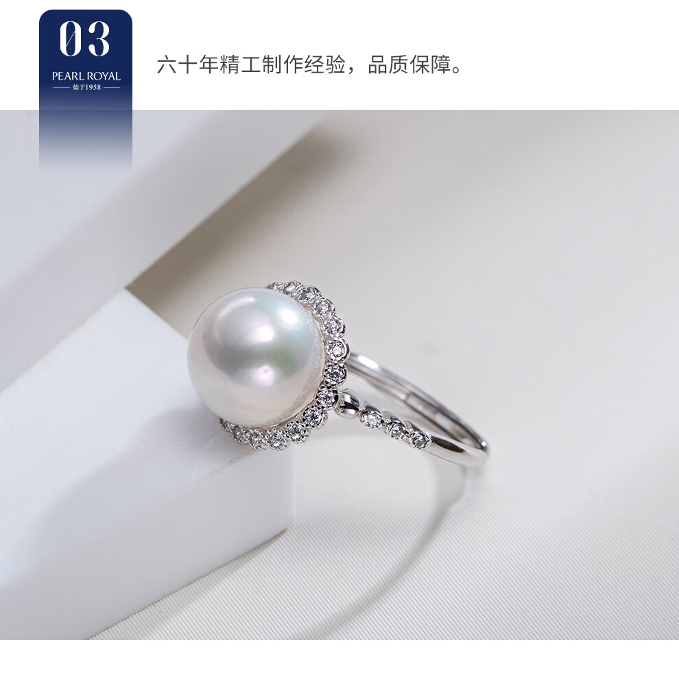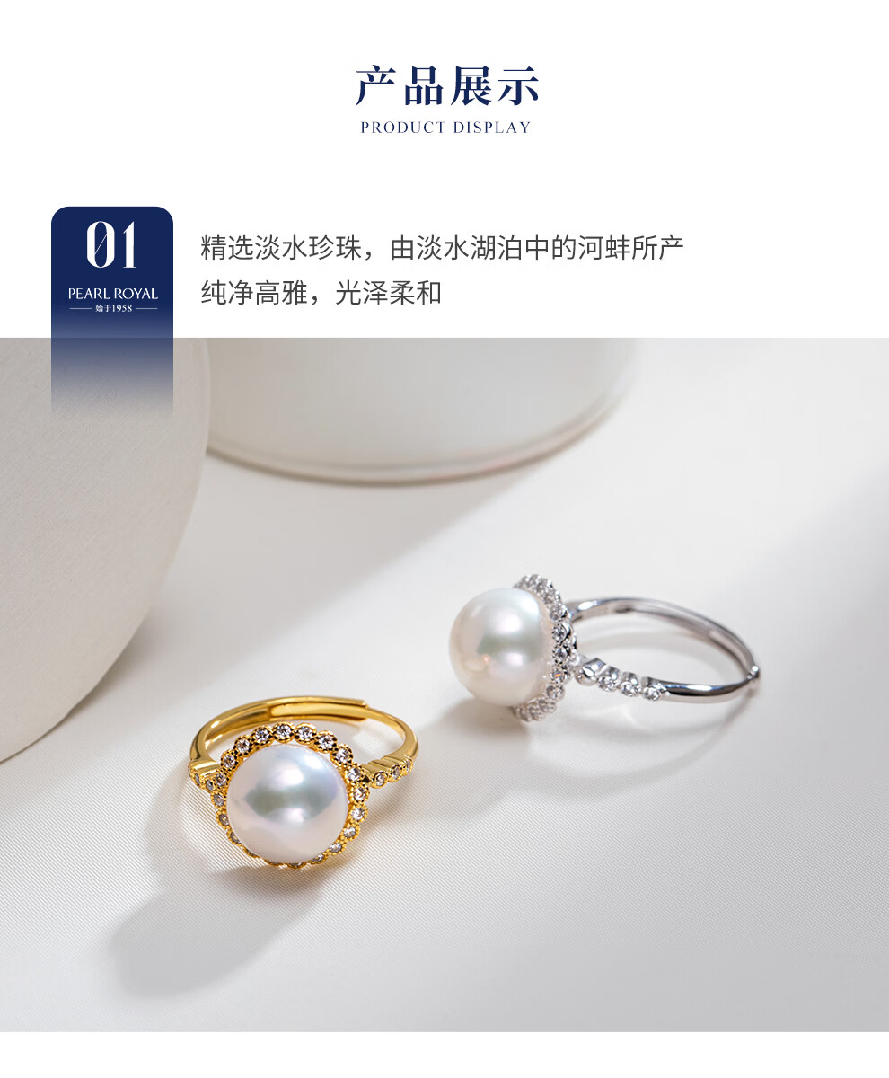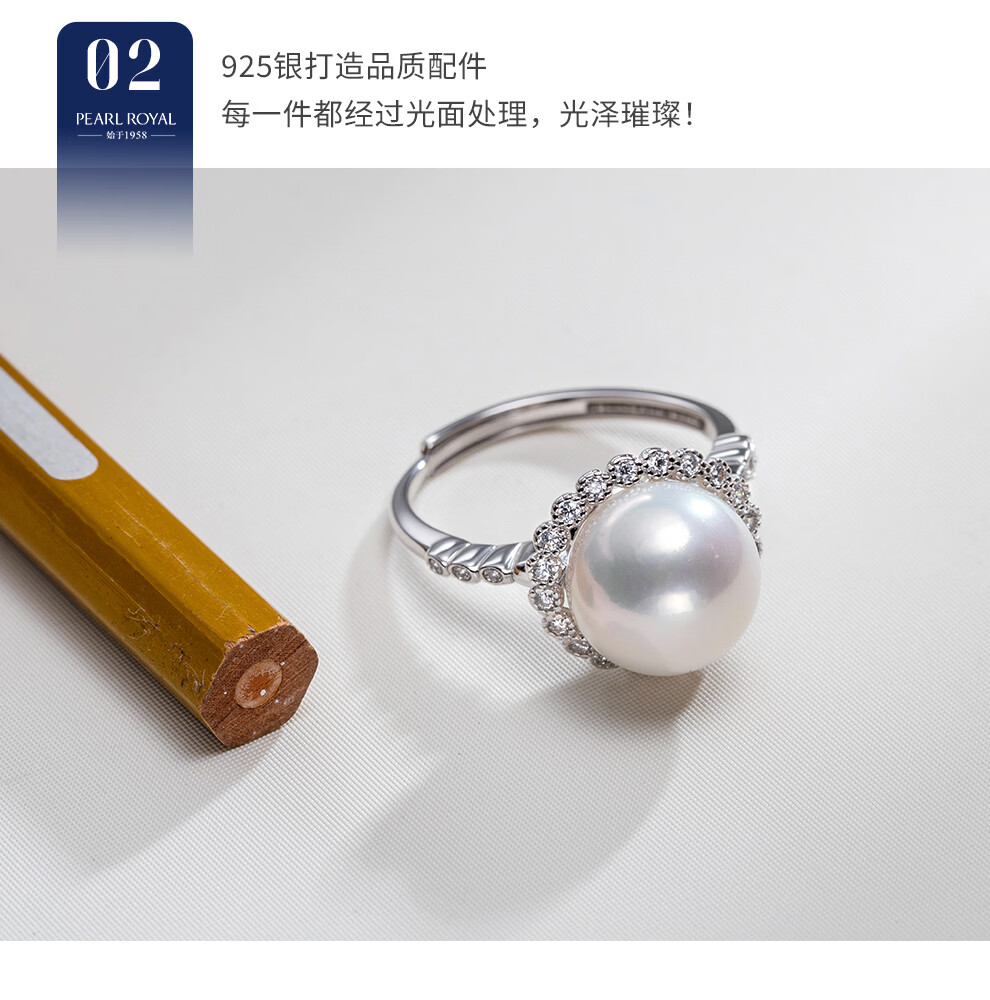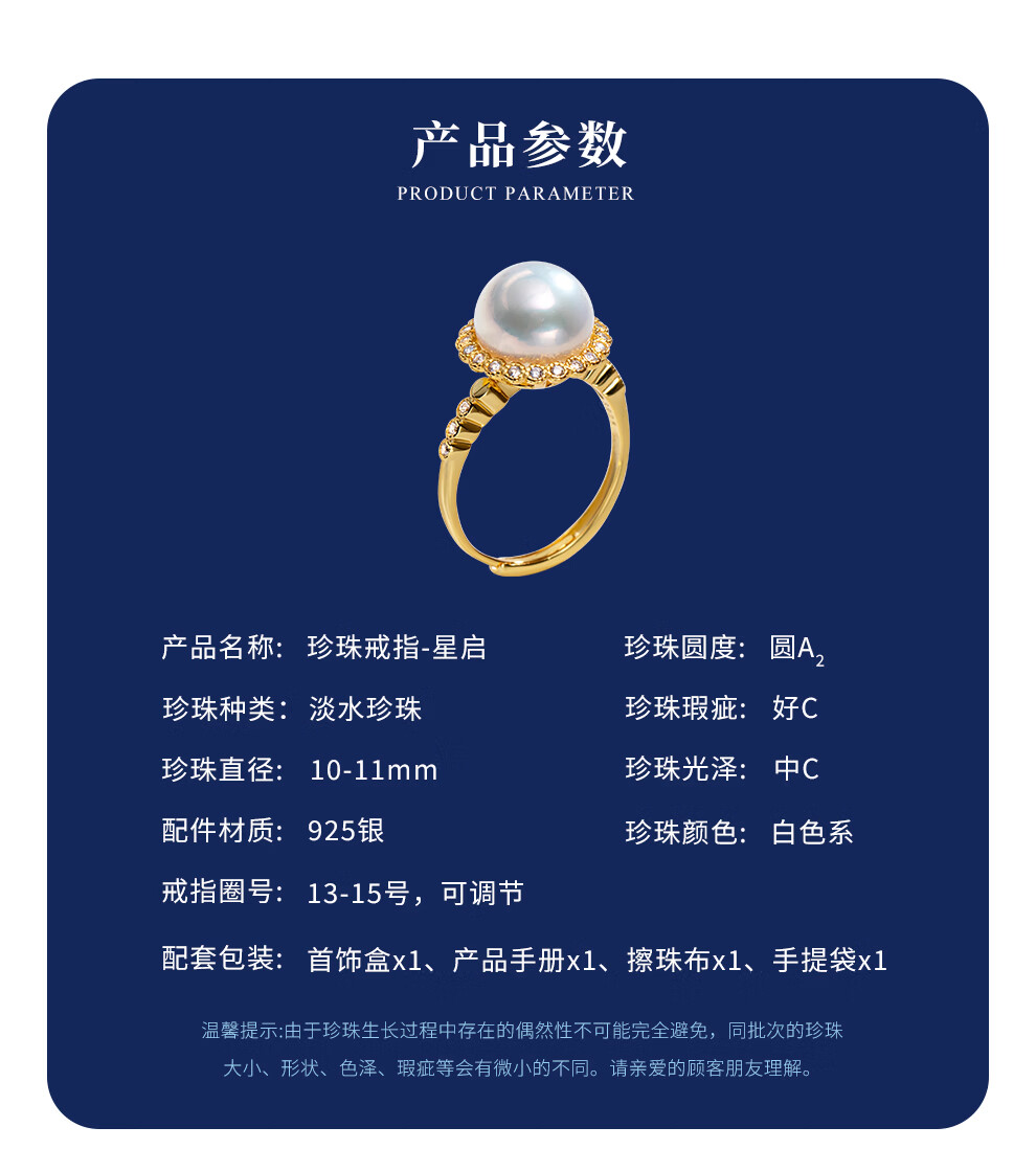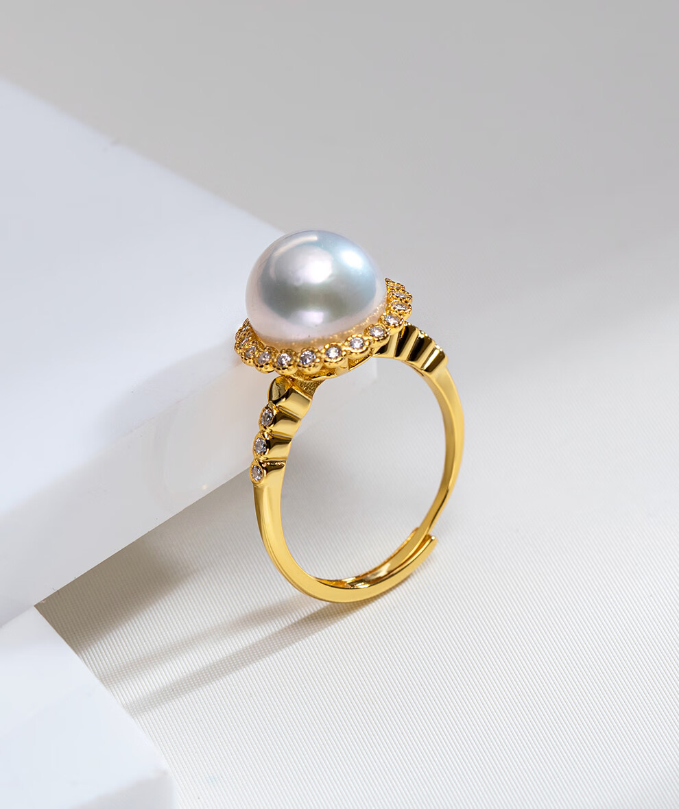 南珠宫星启925银淡水珍珠戒指强光圆形新年礼物送老婆 金色款 10.0-11.0mm戒圈13-15号