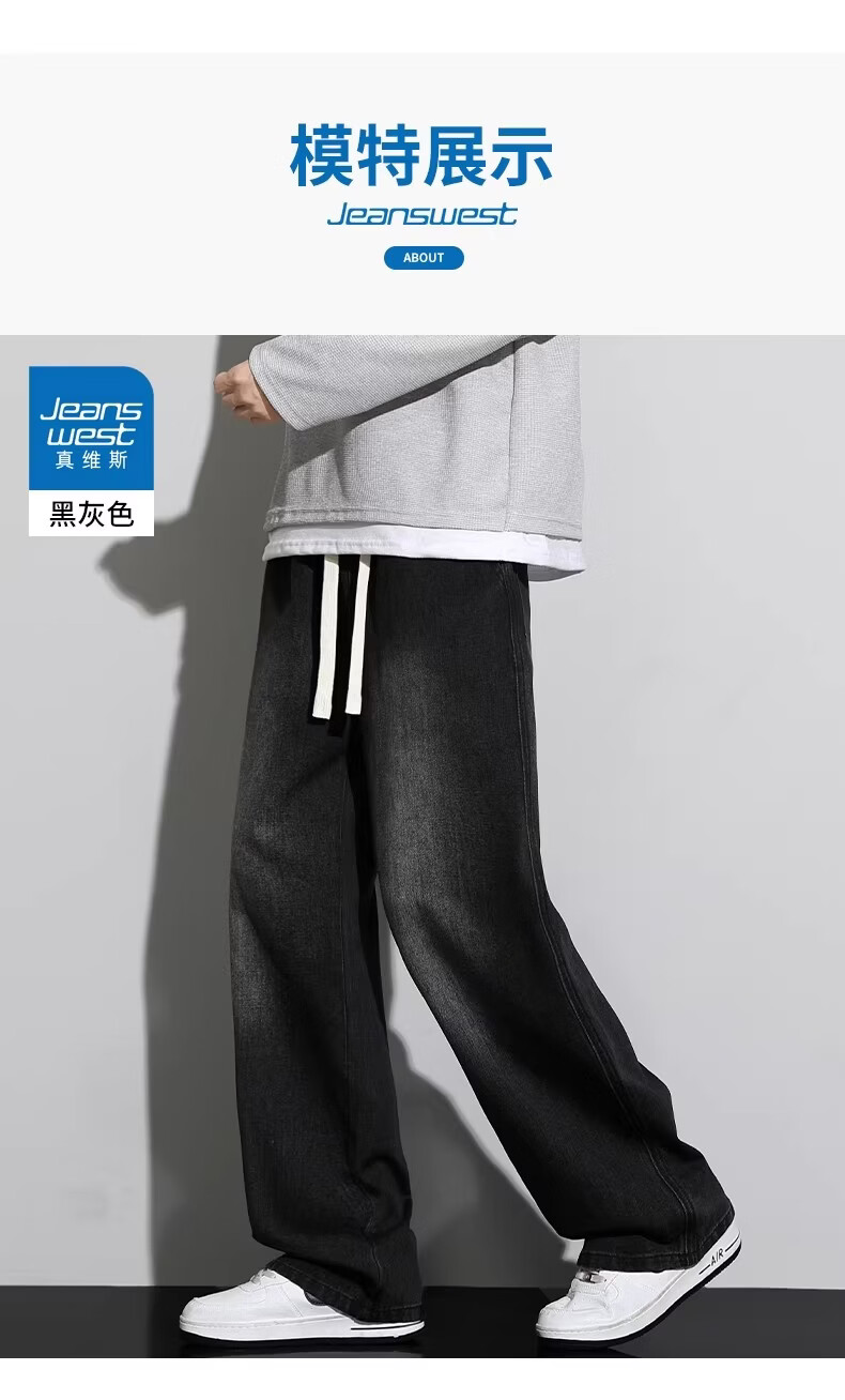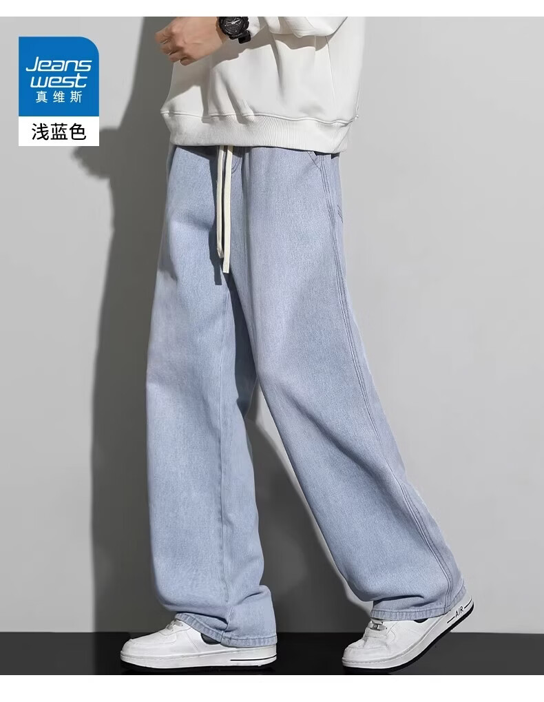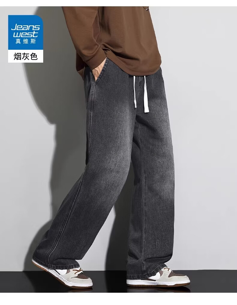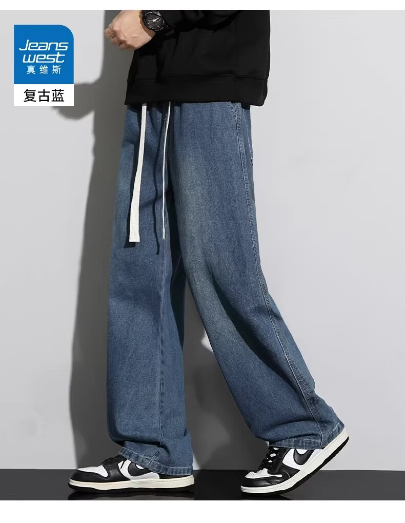 真维斯(Jeanswest)真维斯美式复古水洗牛仔裤男春季宽松直筒百搭潮流松紧腰休闲长裤 复古蓝【四季款】 S 【建议100-110斤】