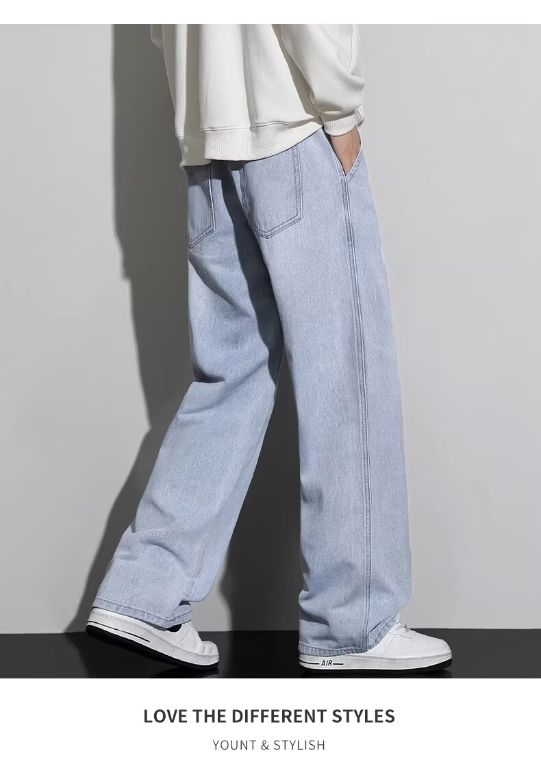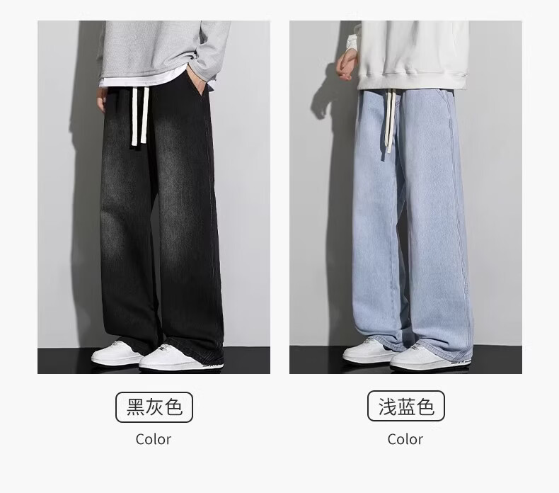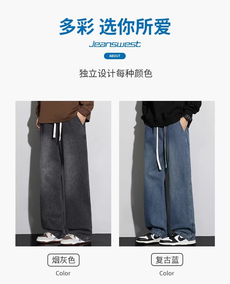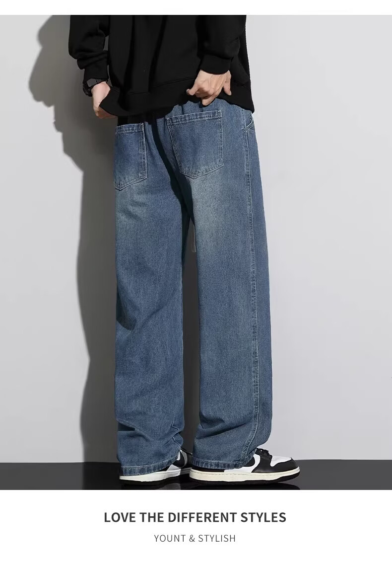 真维斯(Jeanswest)真维斯美式复古水洗牛仔裤男春季宽松直筒百搭潮流松紧腰休闲长裤 复古蓝【四季款】 S 【建议100-110斤】