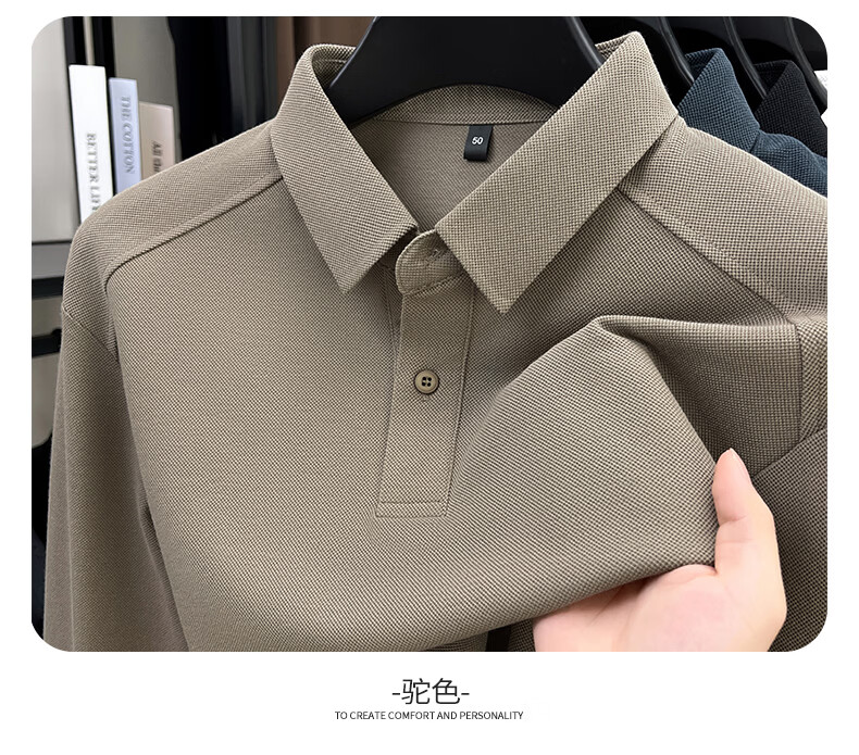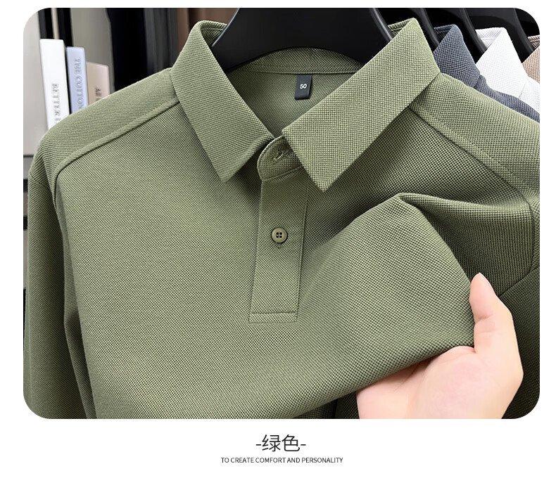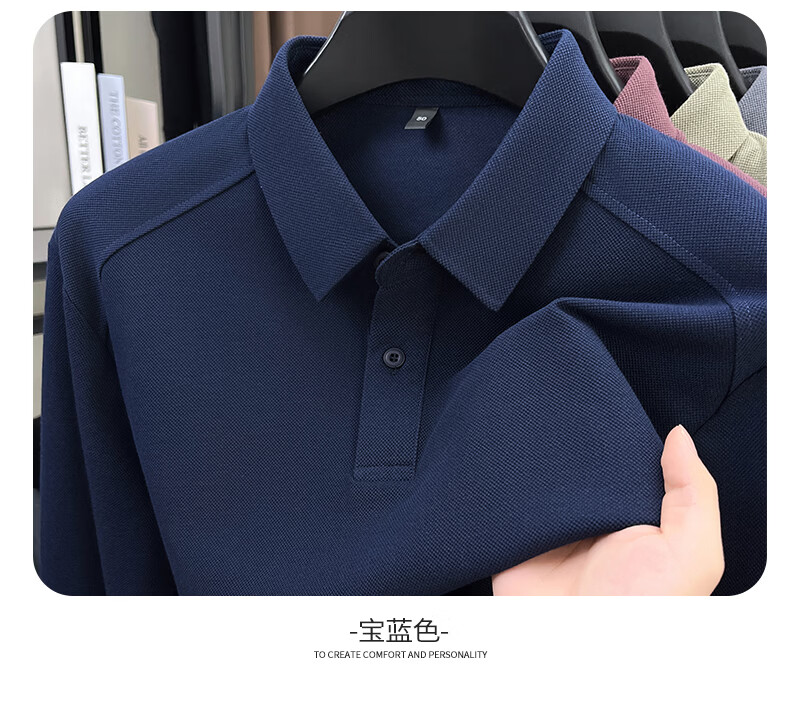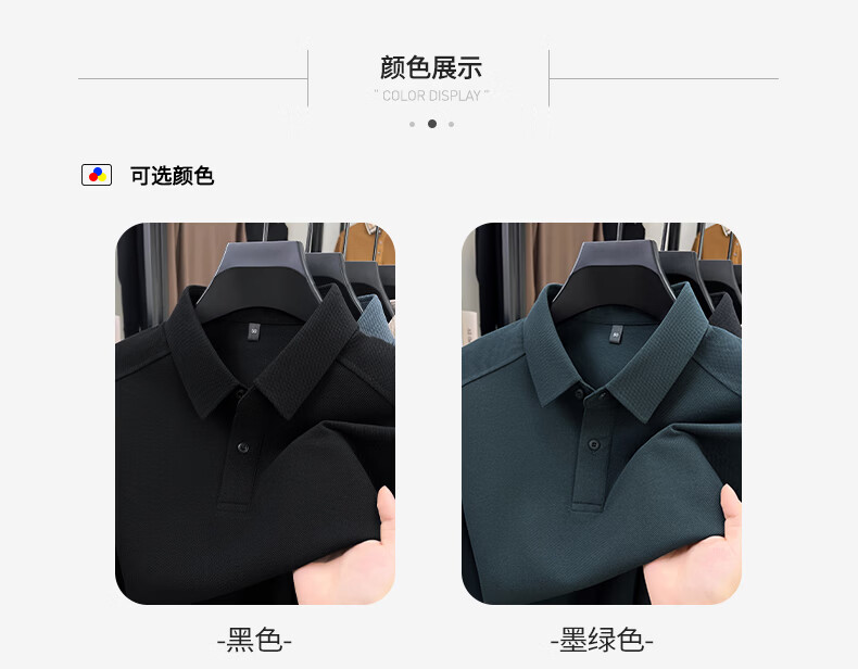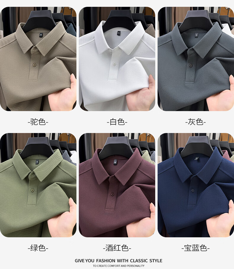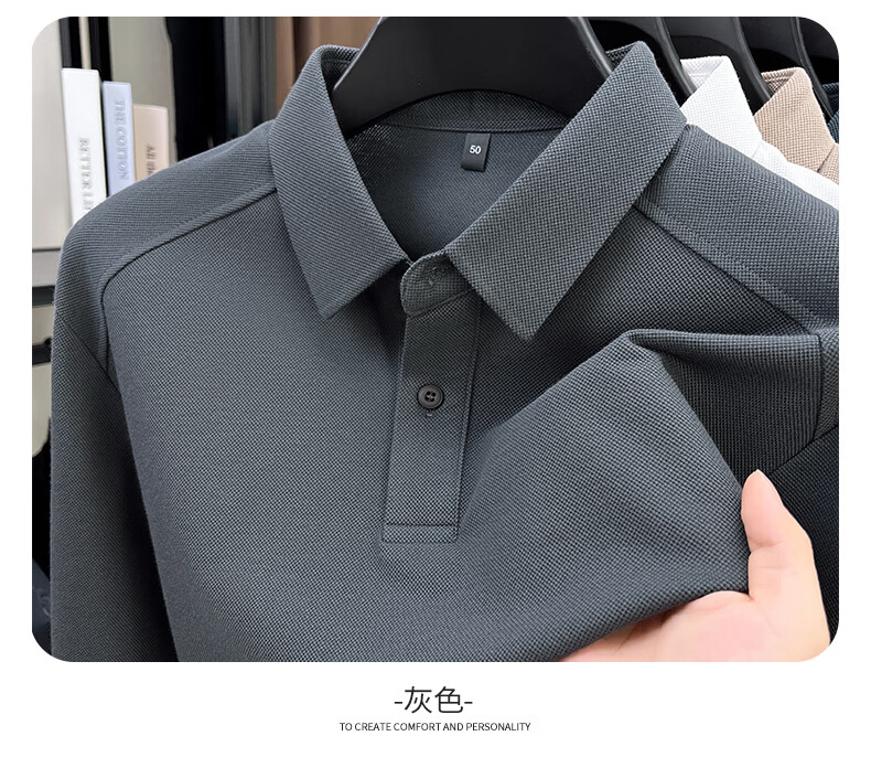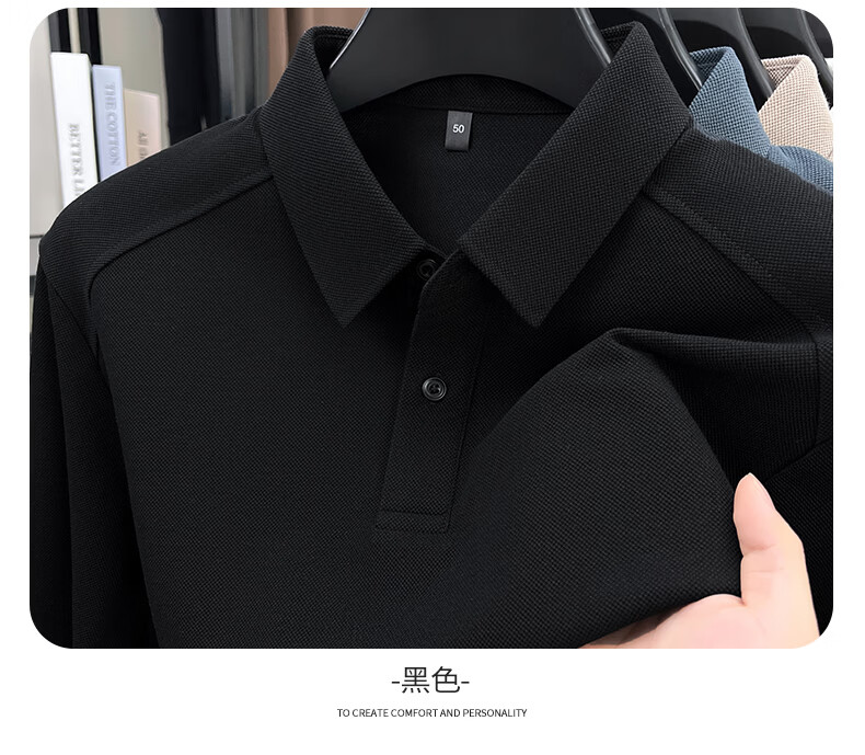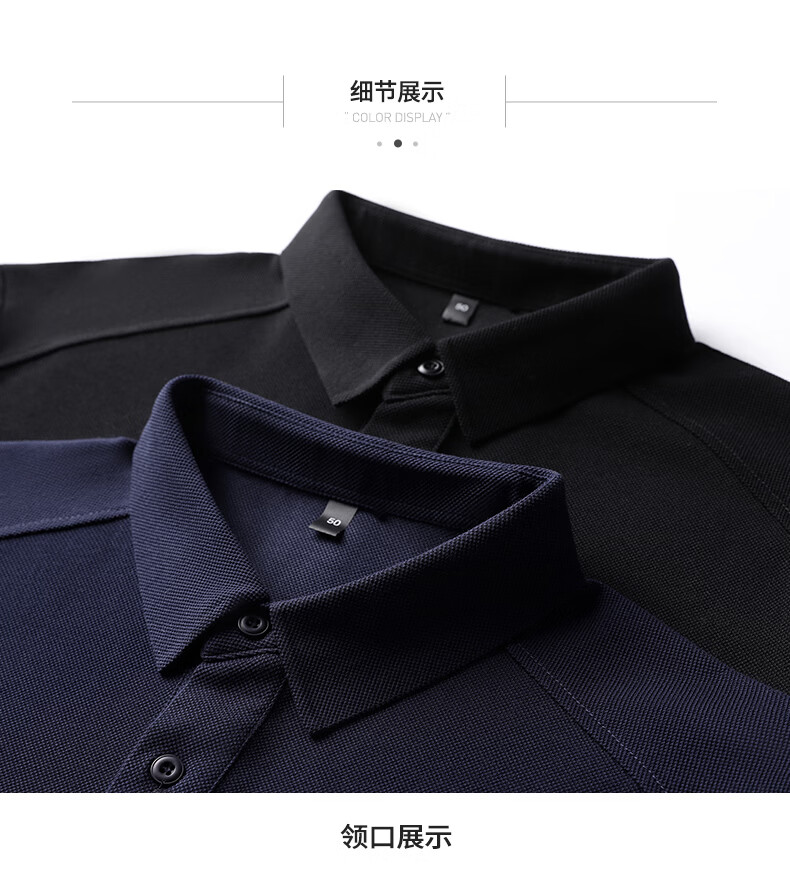 SHANSHAN杉杉长袖T恤男2026春季新款纯色系扣Polo衫含棉透气男士通勤上衣 黑色 M /170