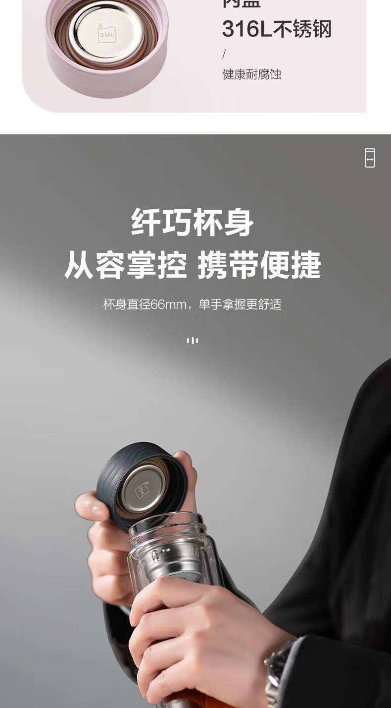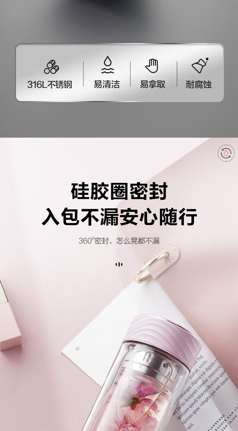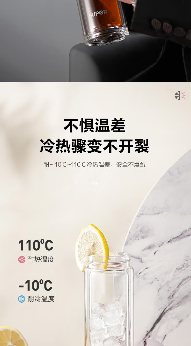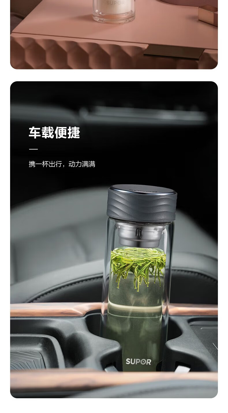 苏泊尔(SUPOR)双层玻璃杯耐高温女高颜值茶水分离泡茶大容量水杯新款2026 粉紫【316茶漏+杯刷】230ml