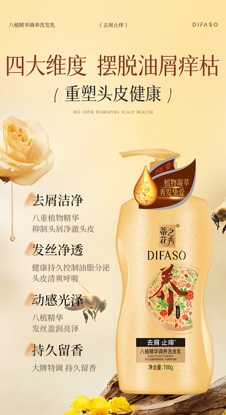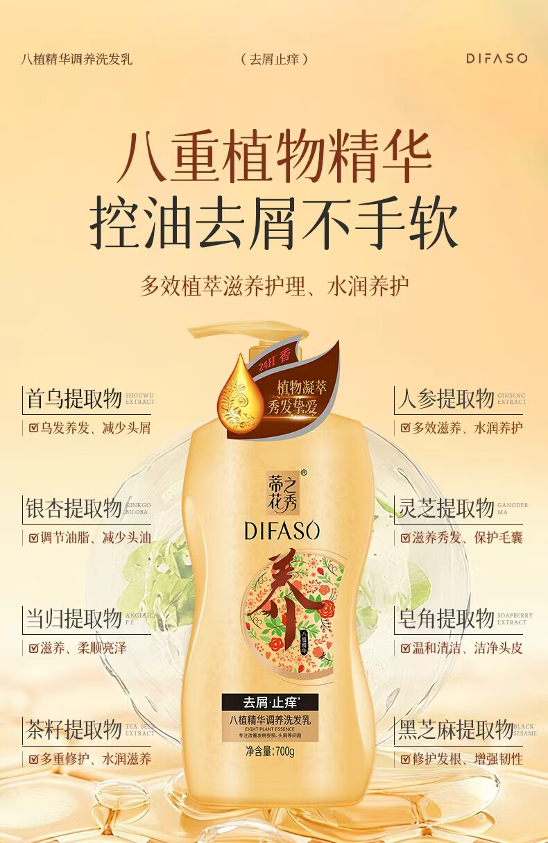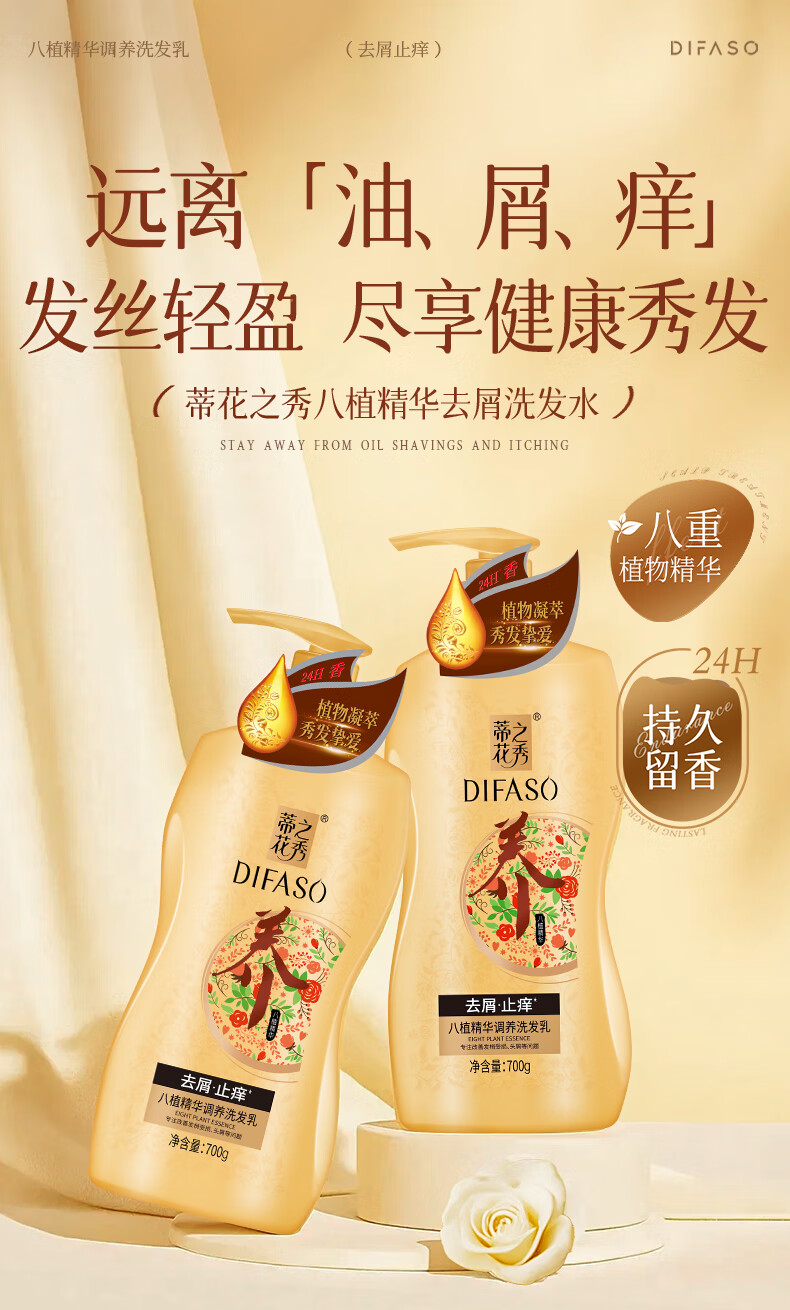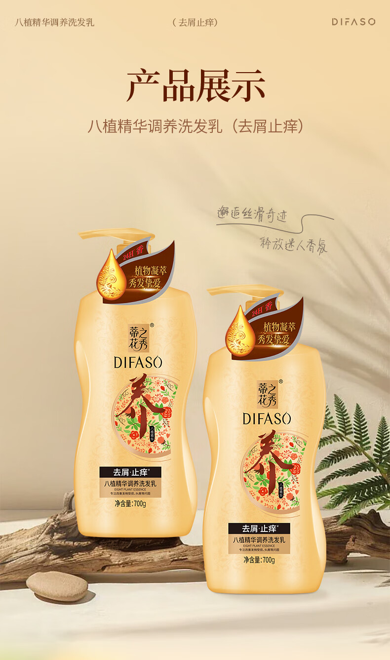 蒂花之秀洗发水八植精华调养洗发乳700g去屑止痒蓬松控油持久留香洗发露