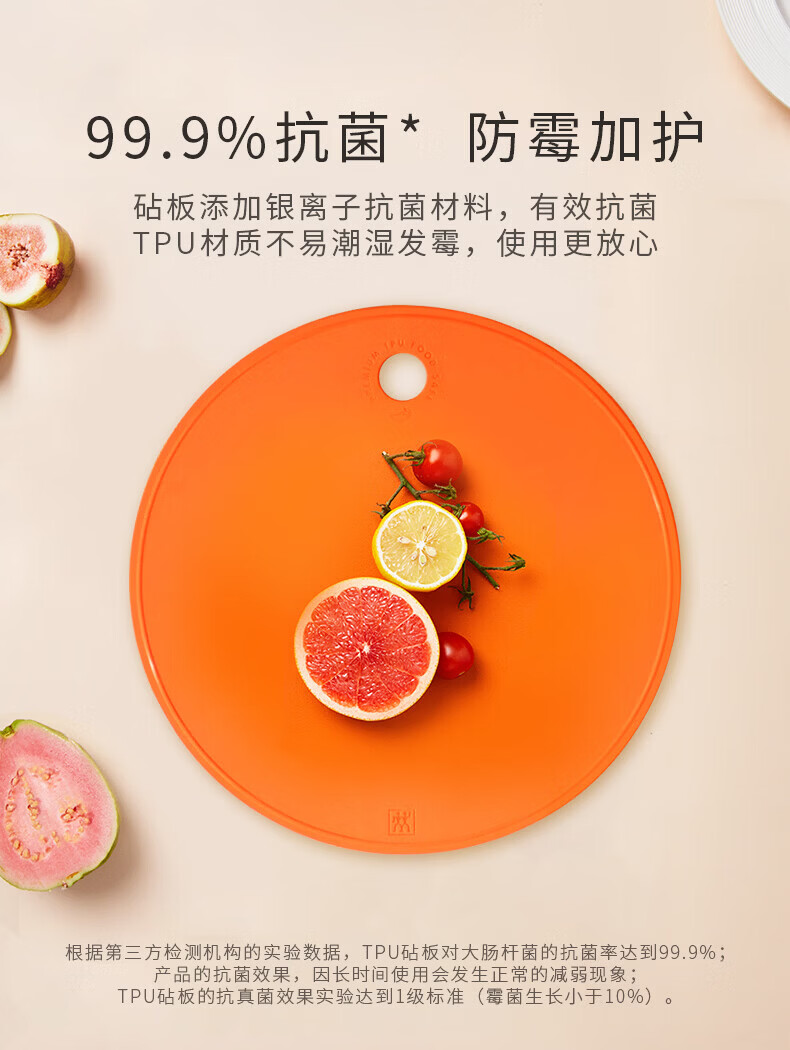 双立人(ZWILLING)抗菌砧板防霉TPU切菜板案板家用双面切水果辅食菜板 抗菌款-青柠色【99.9%抗菌率】