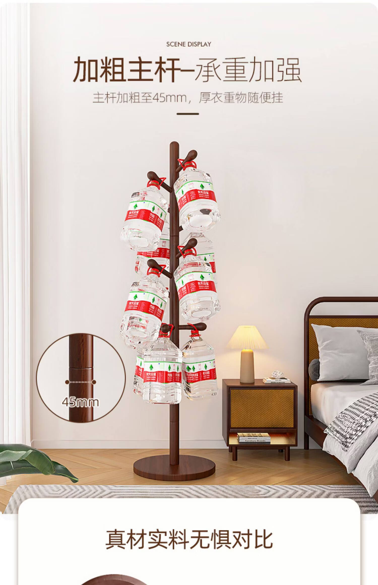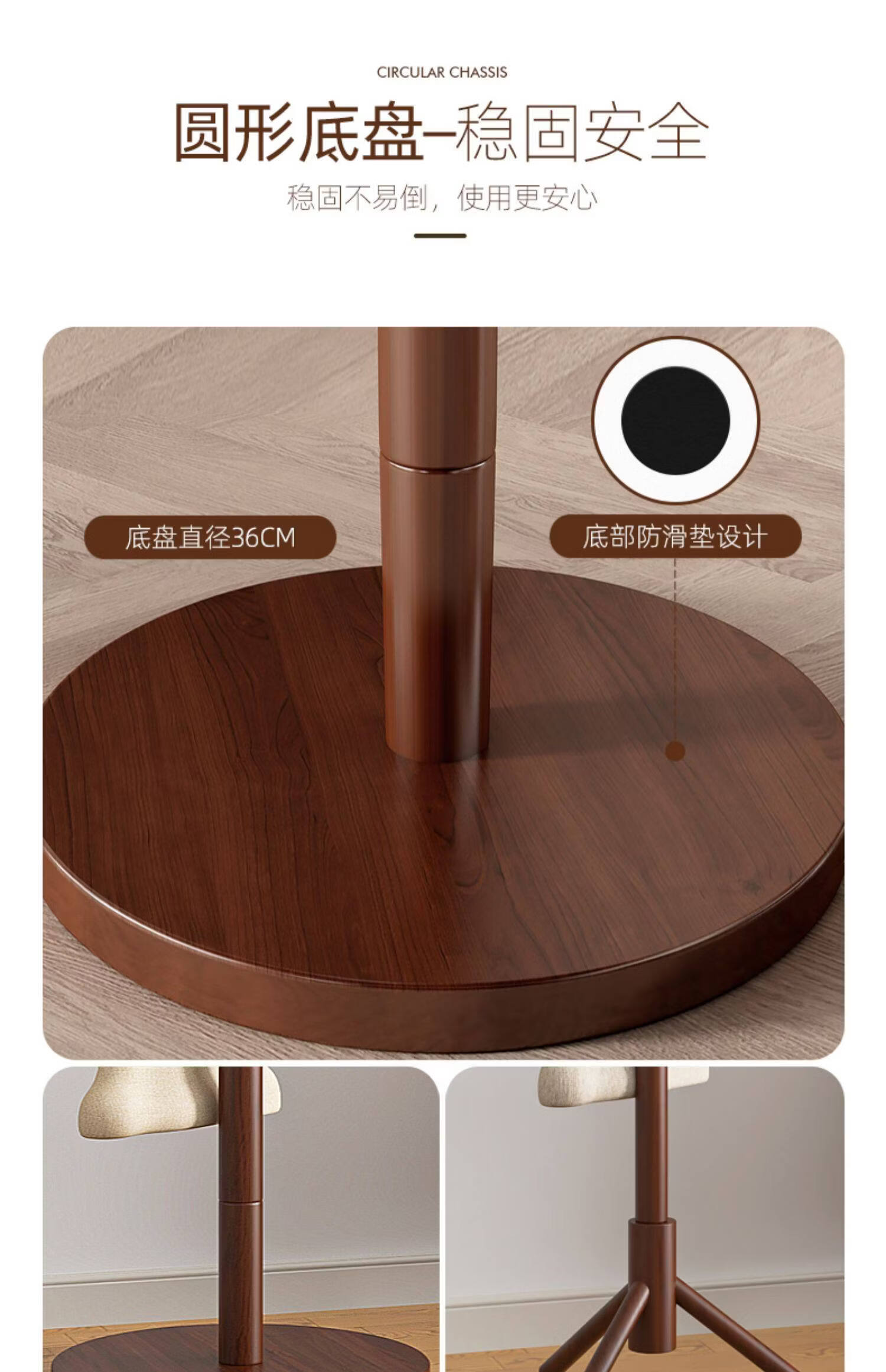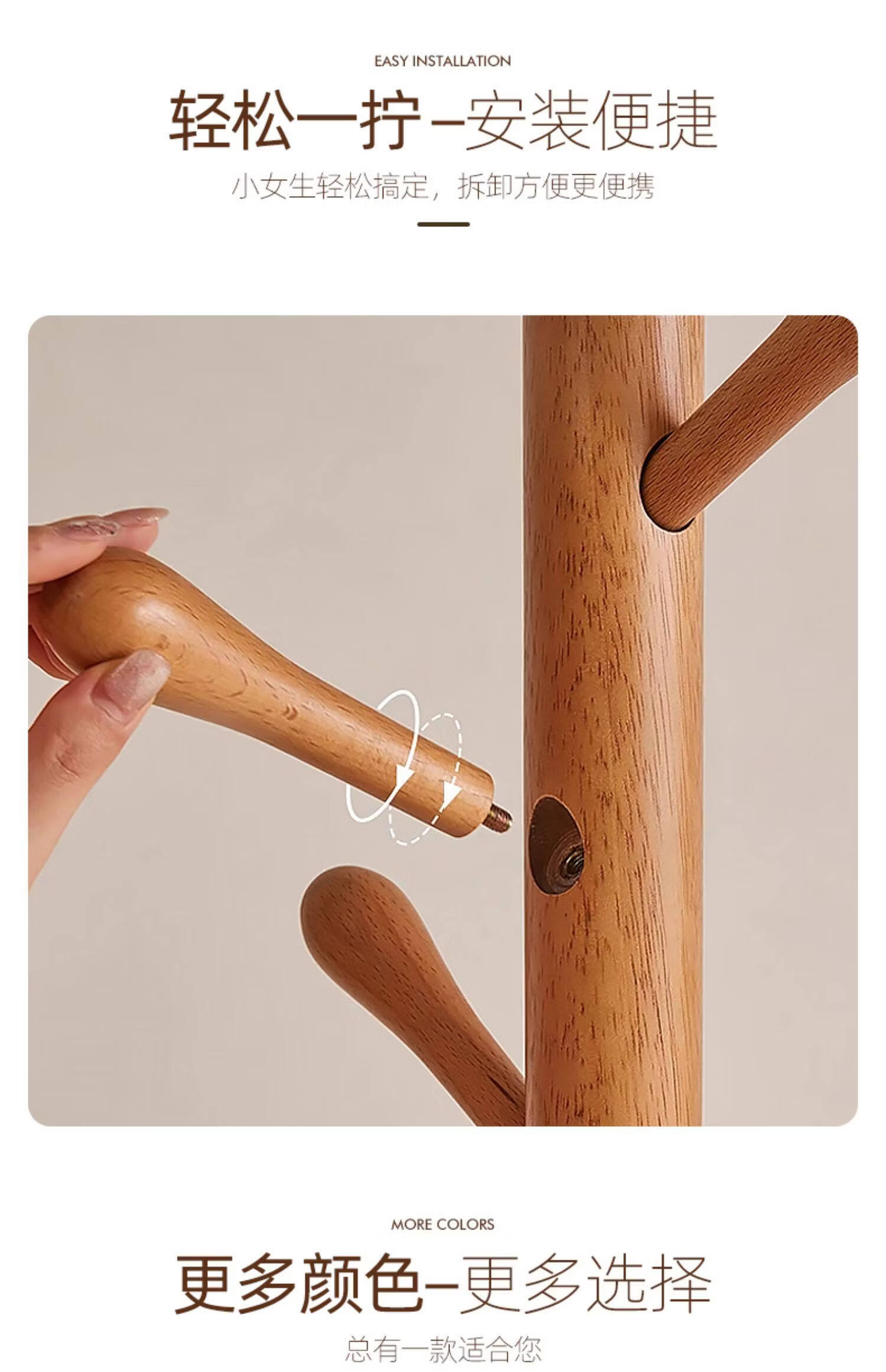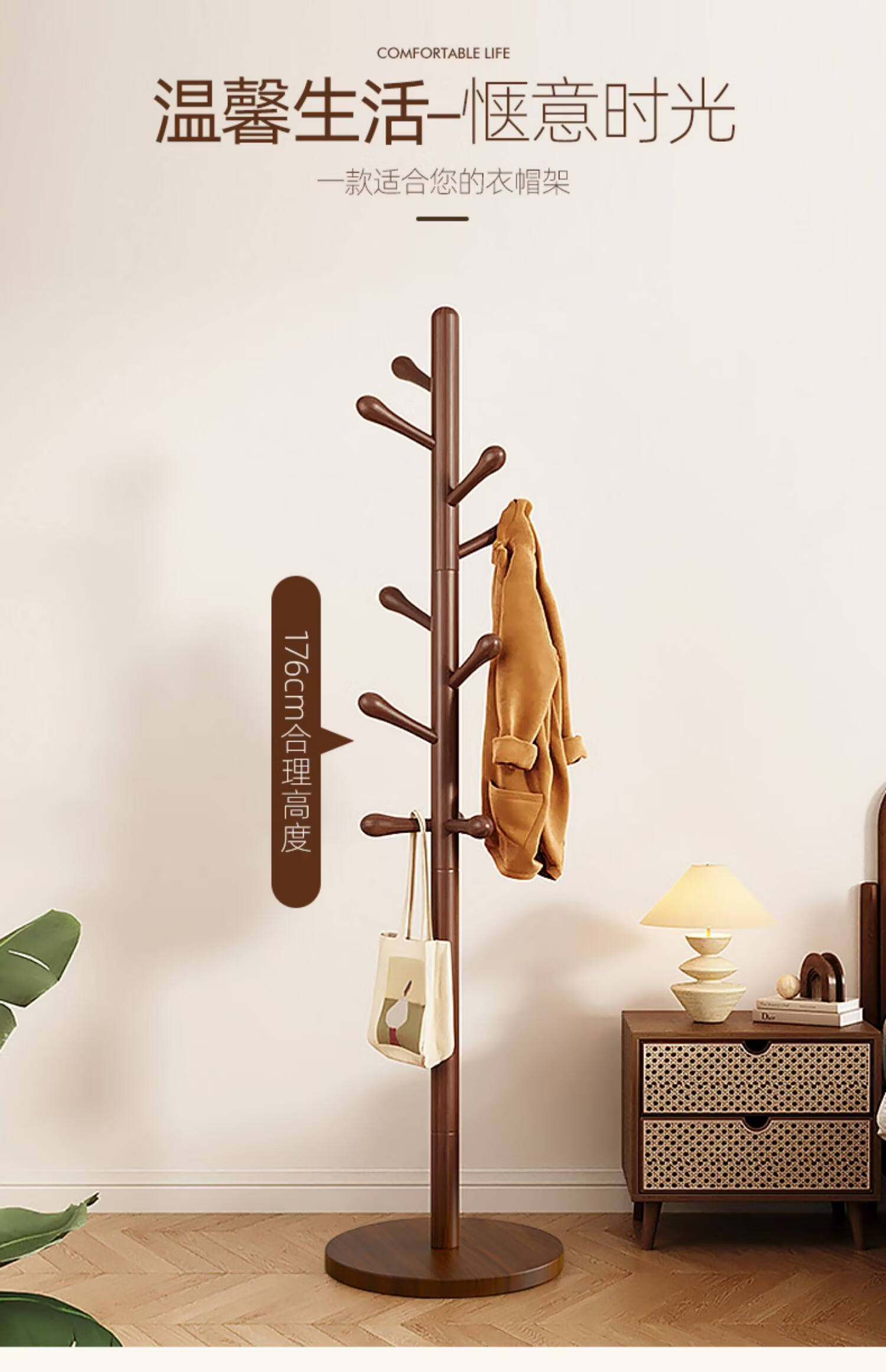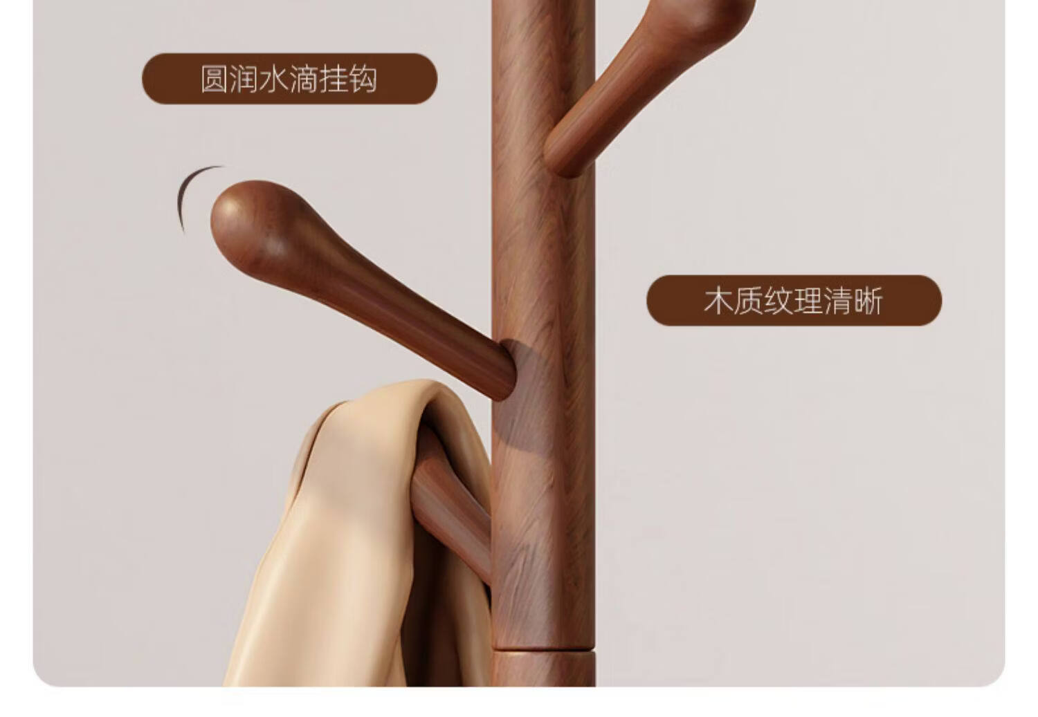 诗元实木旋转衣帽架落地立式挂衣架2026新款家用卧室榉木置物衣服架子 升级旋转款-胡桃色【加厚榉木 稳固耐用】