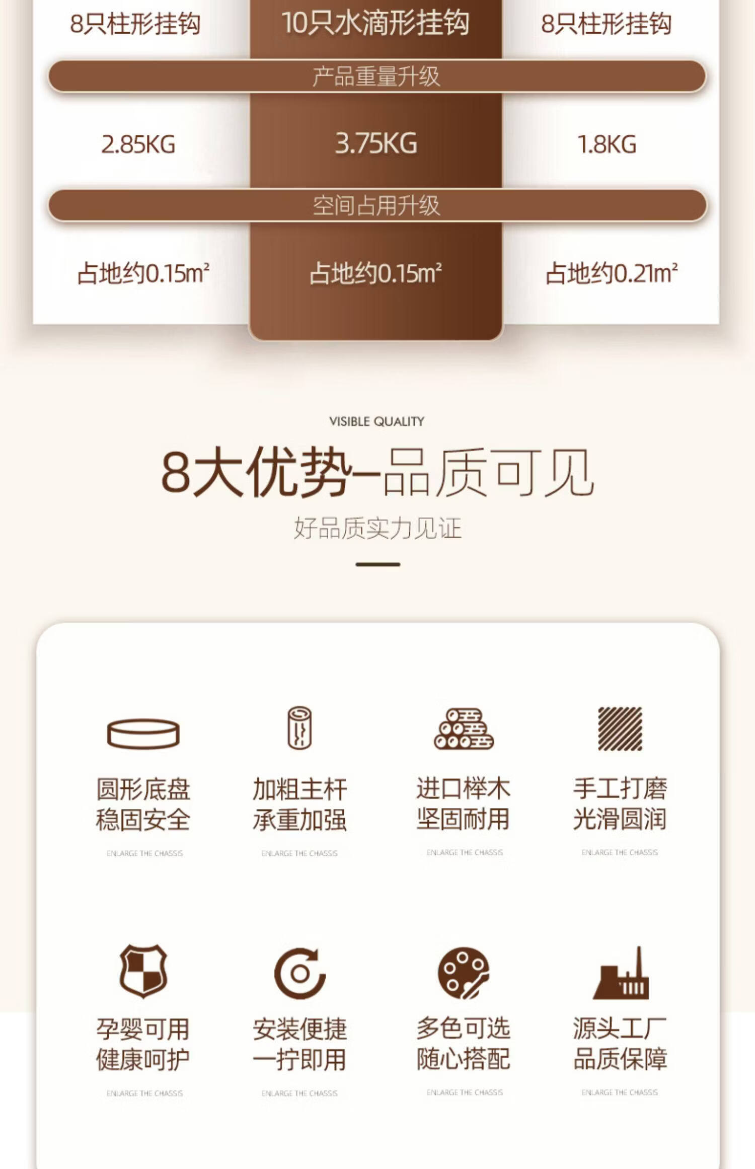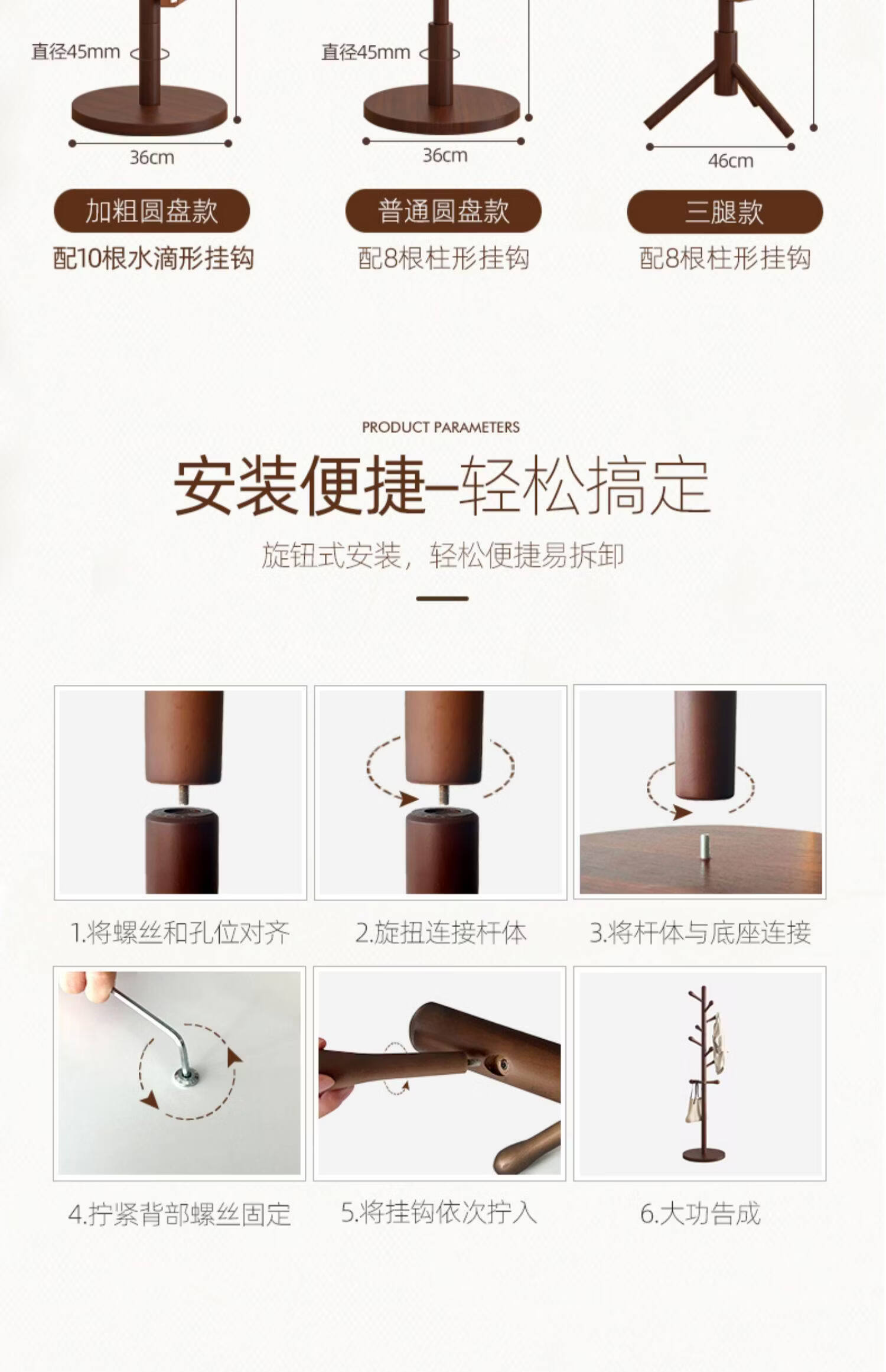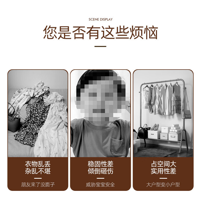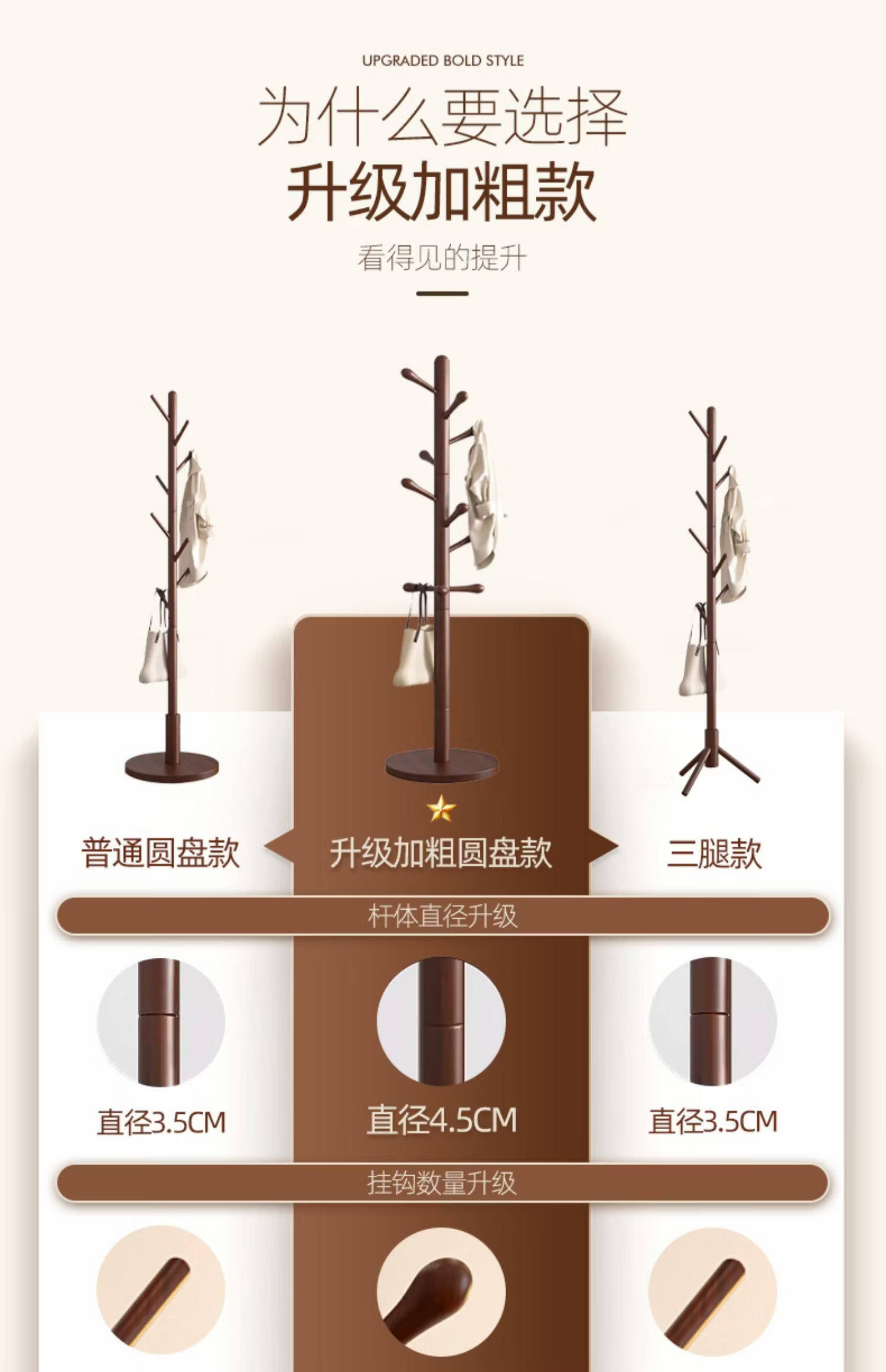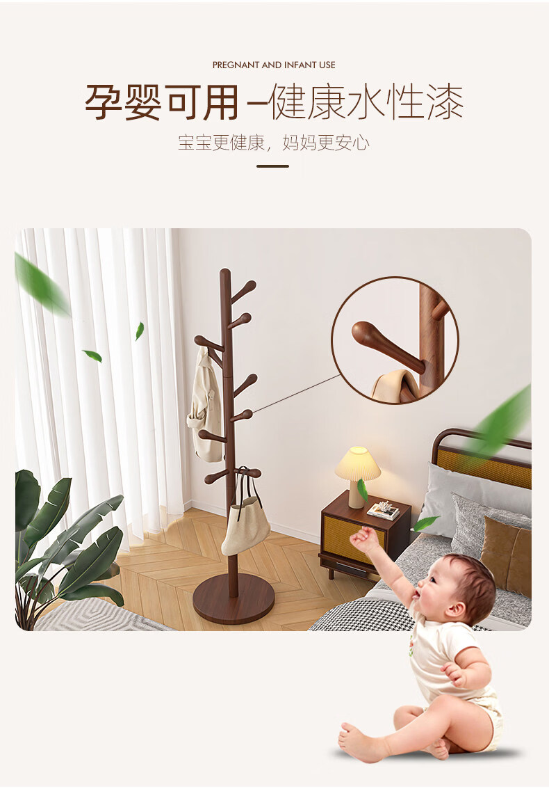 诗元儿童衣帽架落地多功能实木可爱迷你家用房间挂衣架子小孩书包挂架 【可调三挡儿童款】全榉木三腿-胡桃色-8挂支
