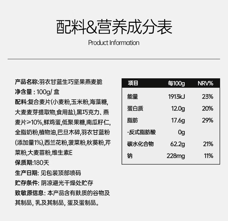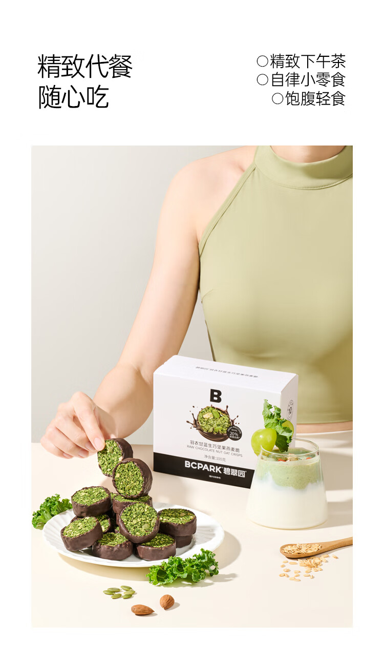碧翠园羽衣甘蓝生巧坚果燕麦脆饼干100g高蛋白早餐代餐巧克力轻食零食