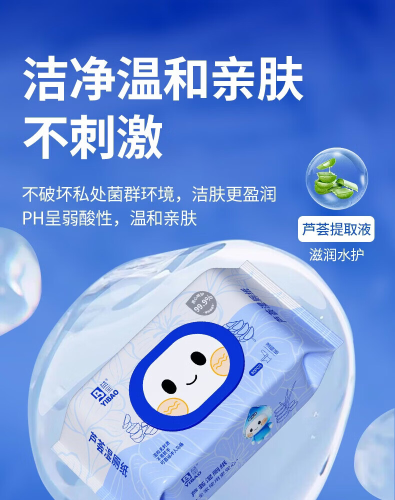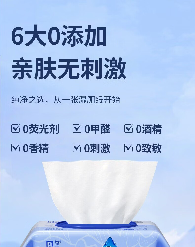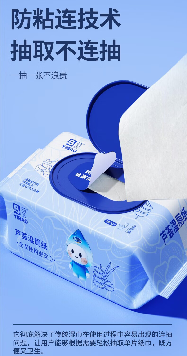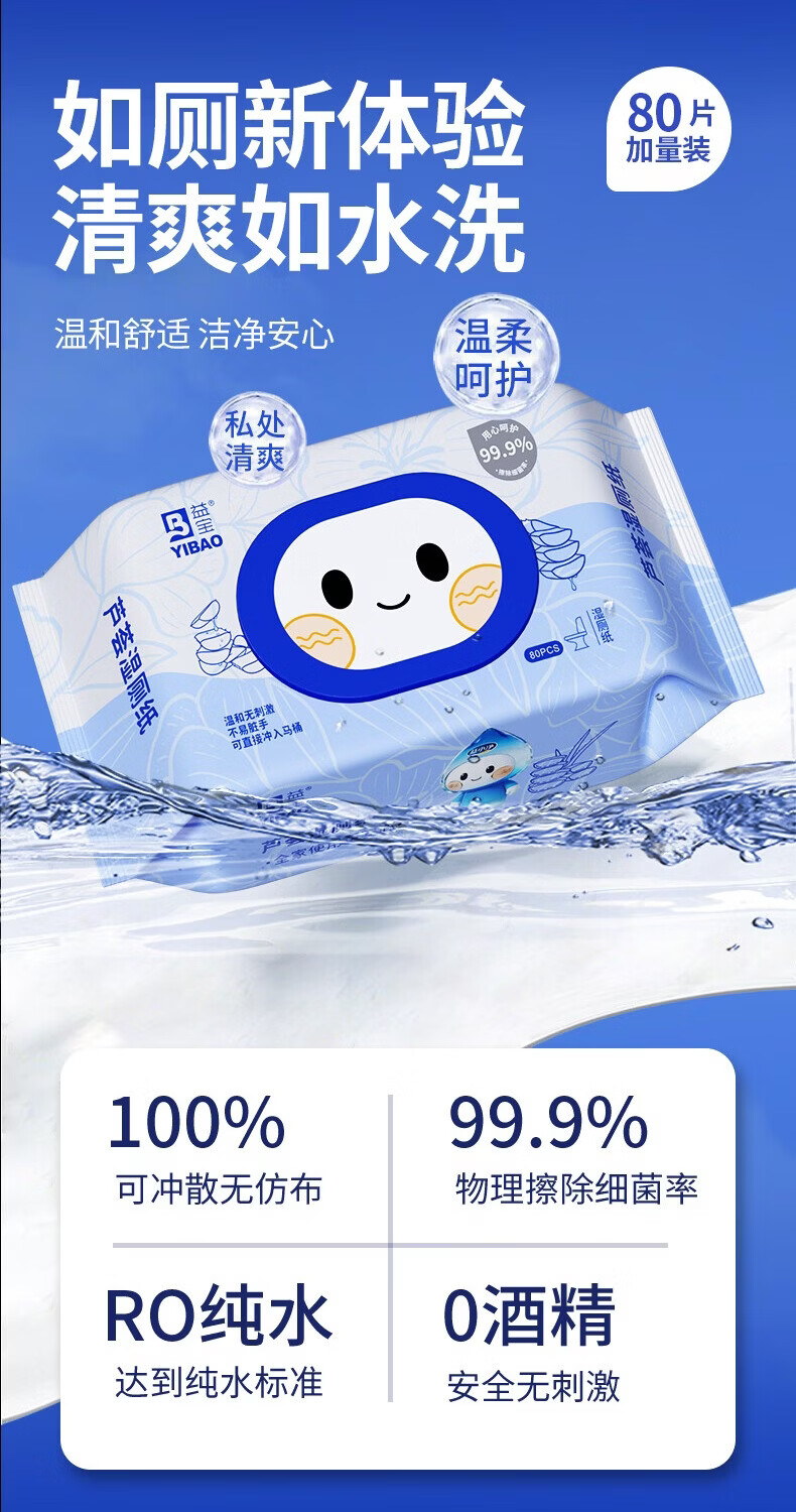 益宝纯水湿厕纸巾用纸可冲散洁厕用纸湿厕卫生纸湿手纸湿巾擦屁股纸 王牌爆款【母婴可用】 80抽*4包