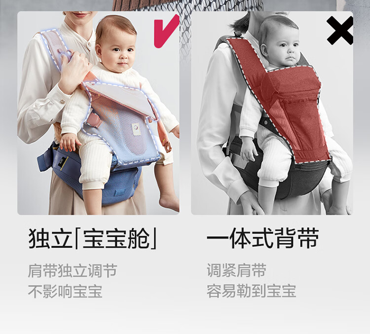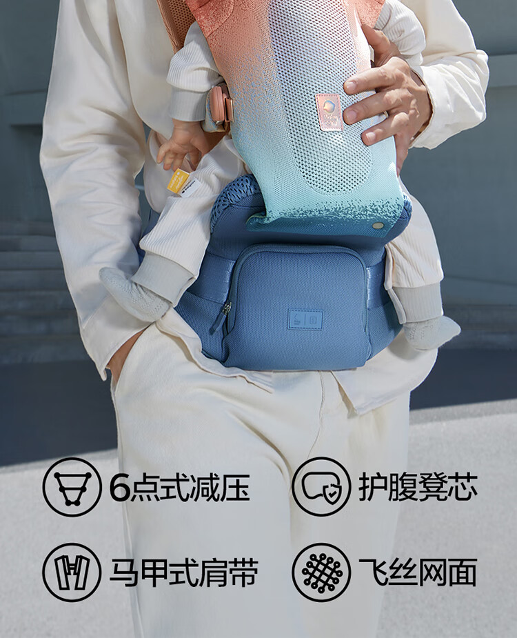 babycare腰凳婴儿背带减压宝宝外出抱娃神器飞织款蒙因渐变凳芯不可折叠