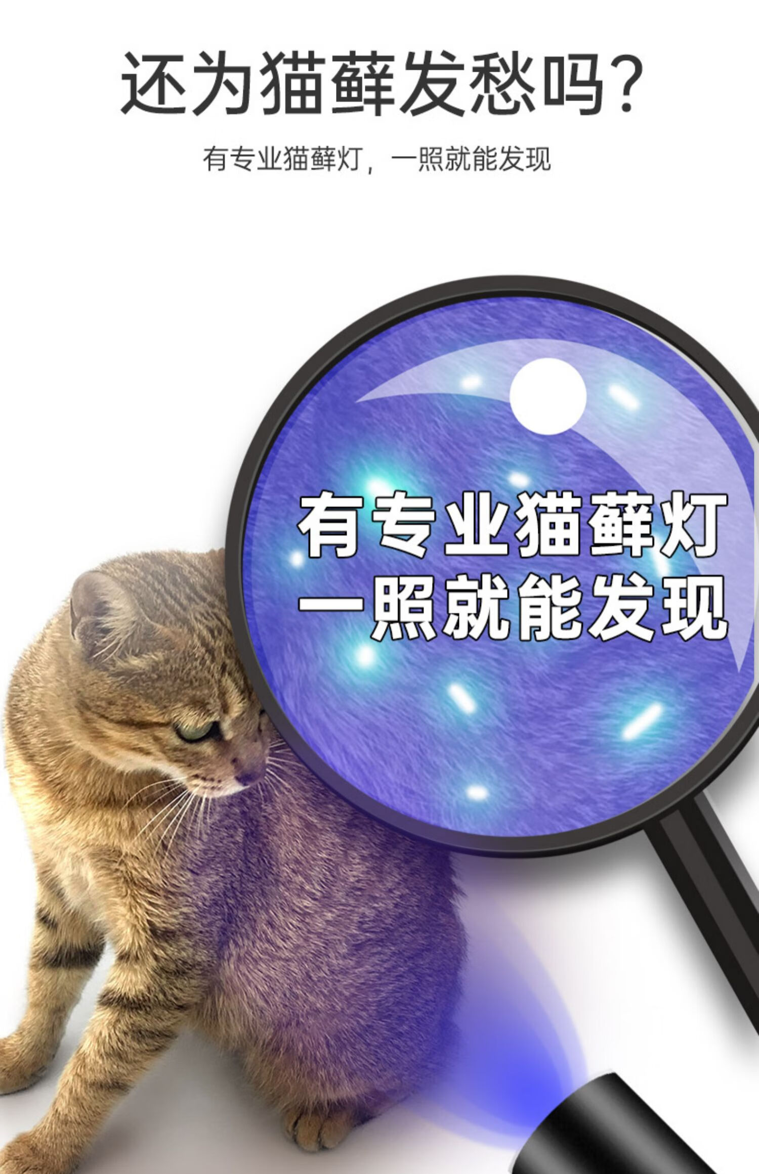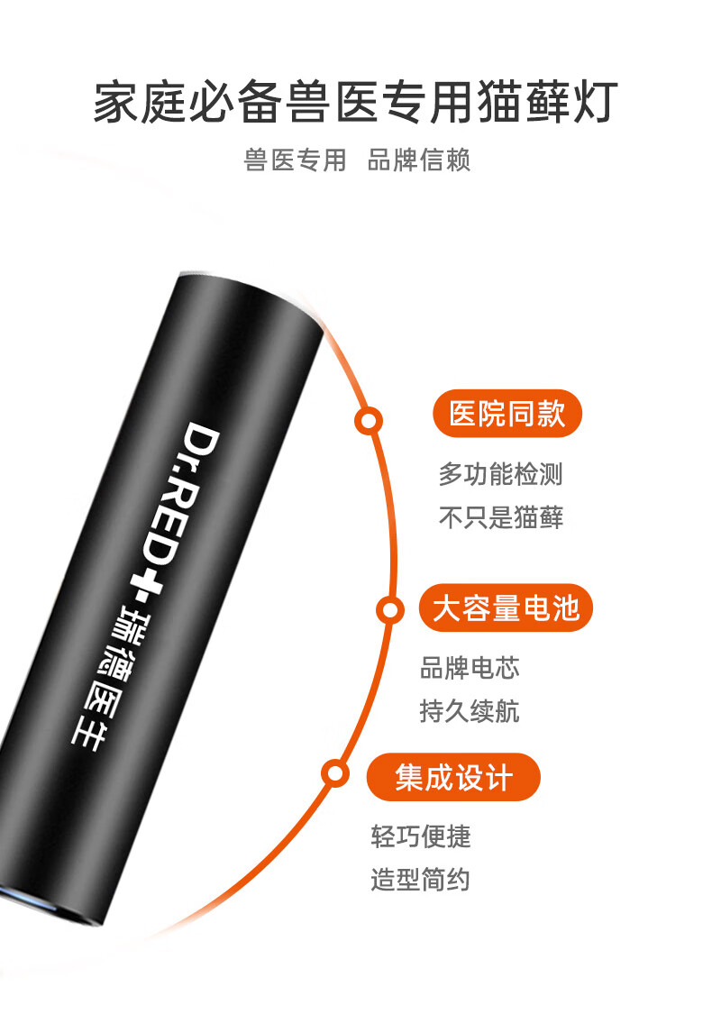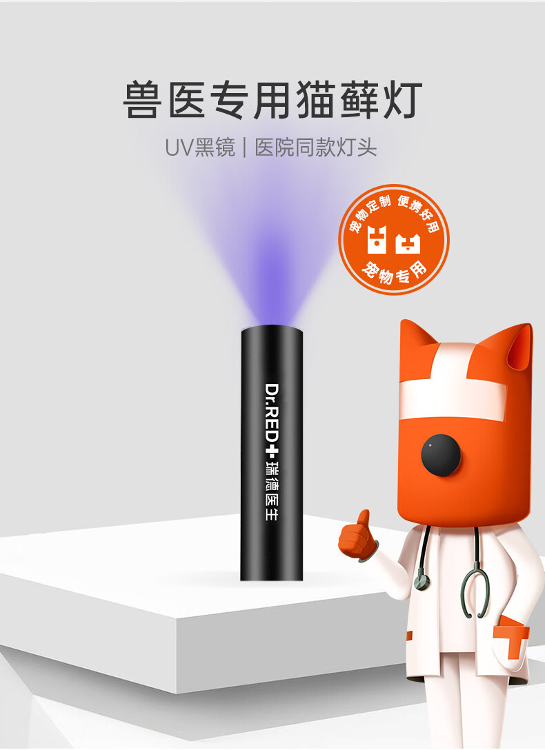瑞德医生伍德氏灯狗藓猫藓尿渍真菌检测365nm紫光灯紫外线荧光防伪鉴定验钞医用手电筒