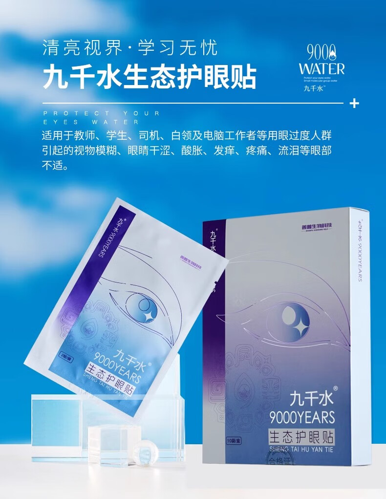 九千水眼贴上班族手机党工作熬夜学生儿童通用成人辅助清凉无激素 九千水护眼贴1盒(10贴)